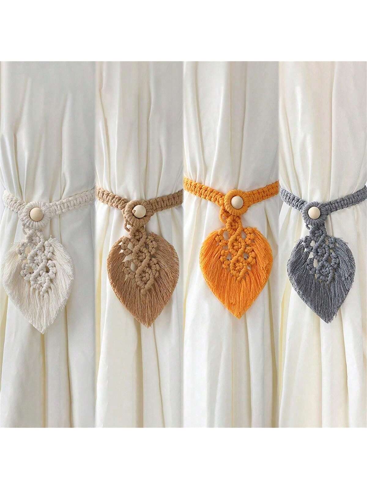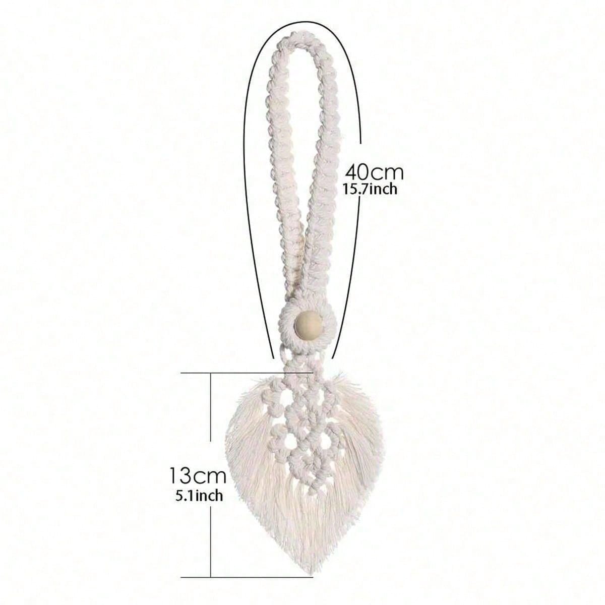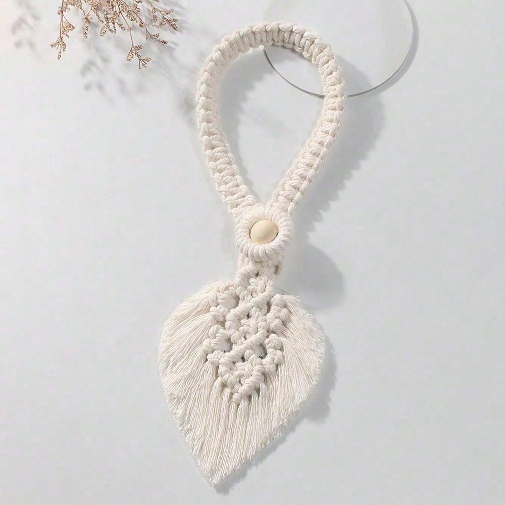 حبل الدانتيل المضفور اليدوي البوهيمي الذي يحتوي على شرائط من الأوراق وحبيبات خشبية ويستخدم لديكور الستائر والأبواب, قطعة واحدة