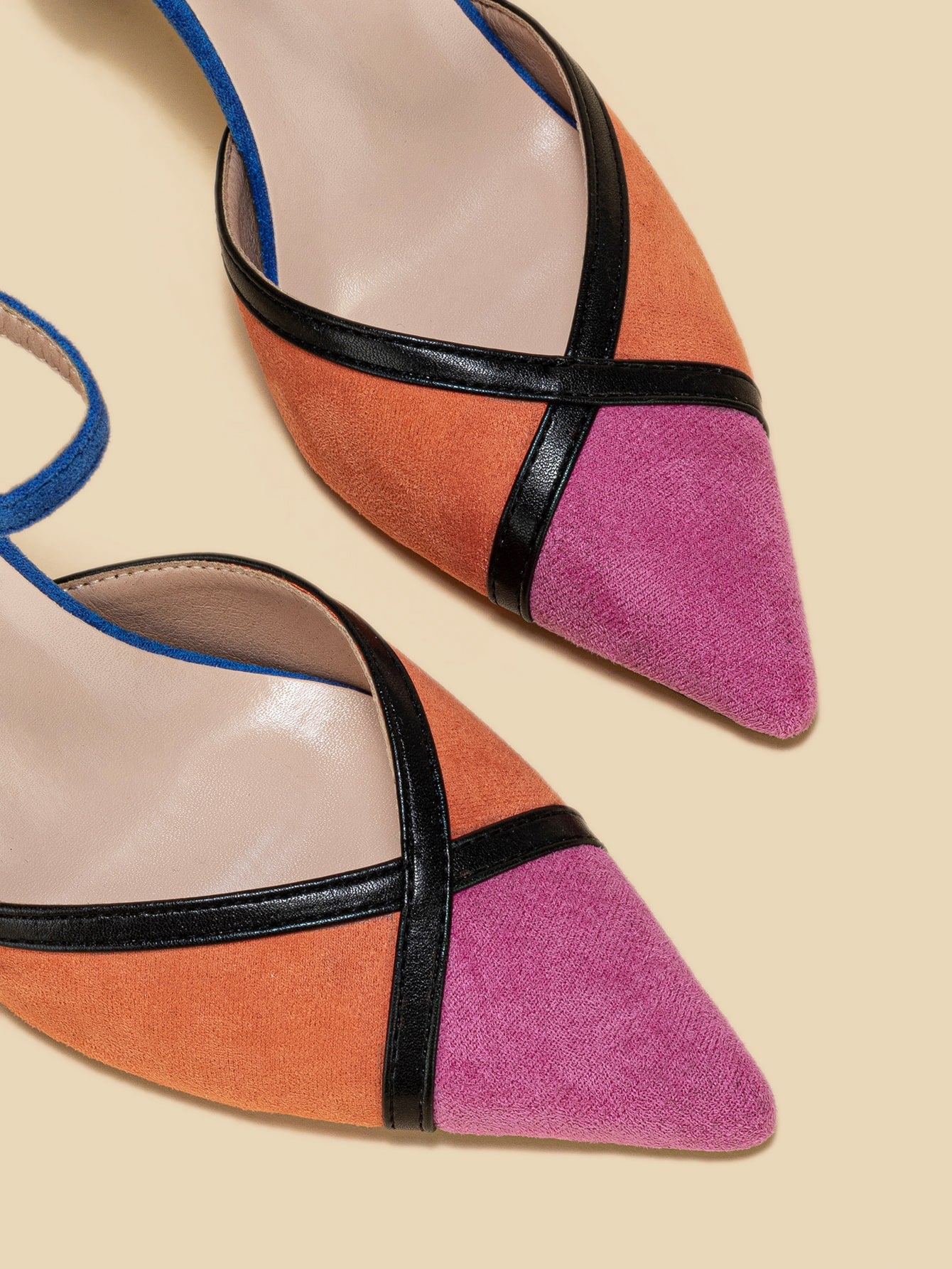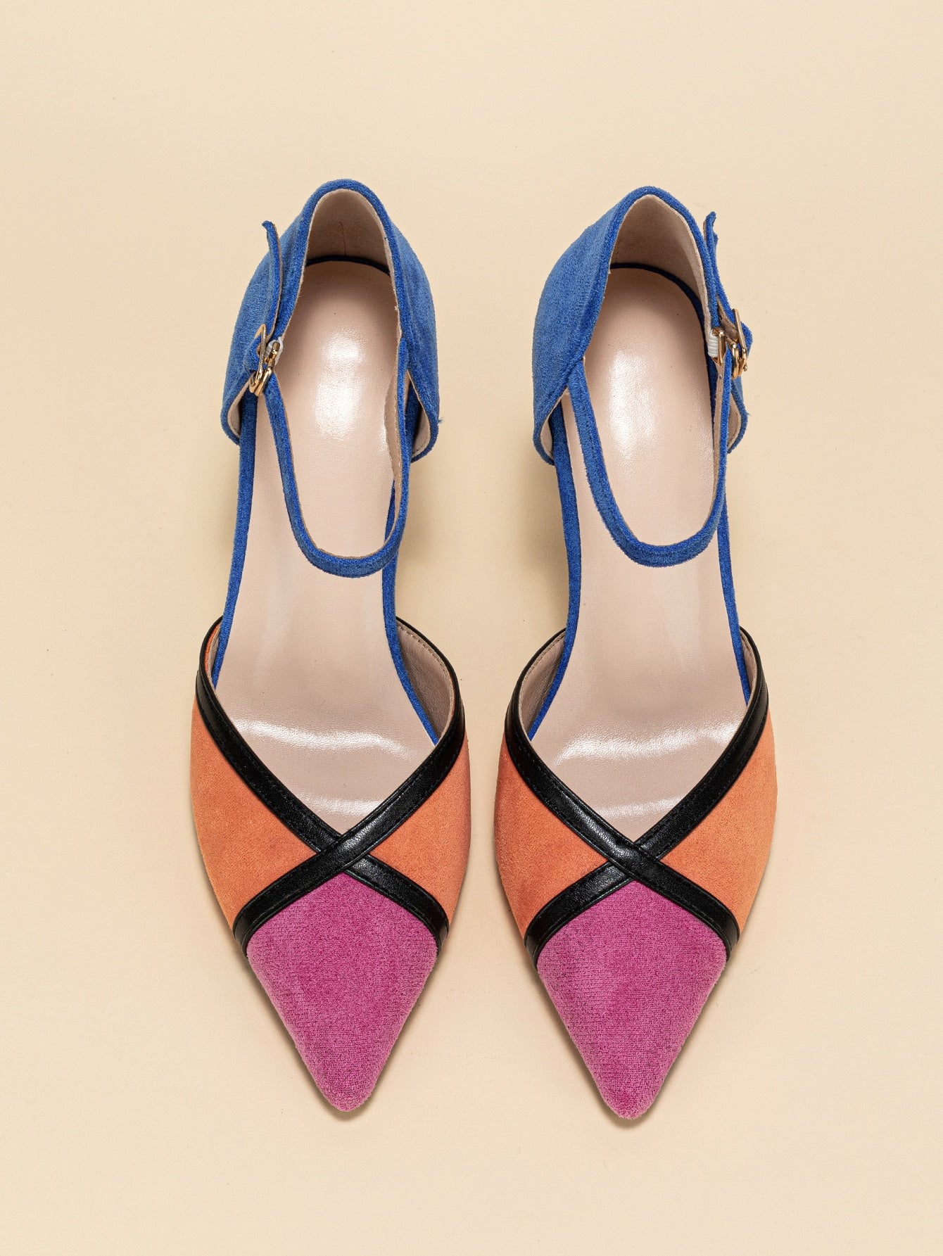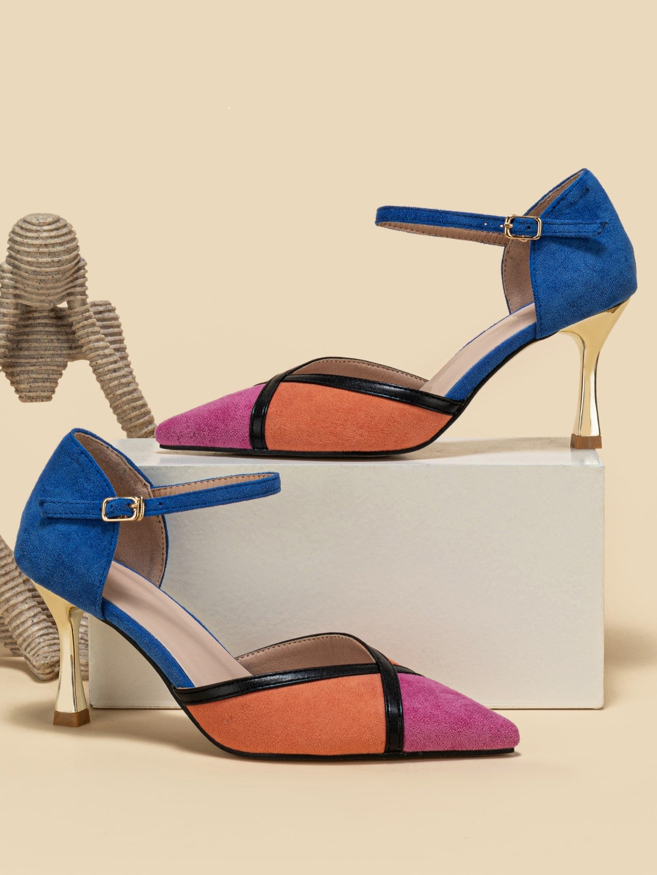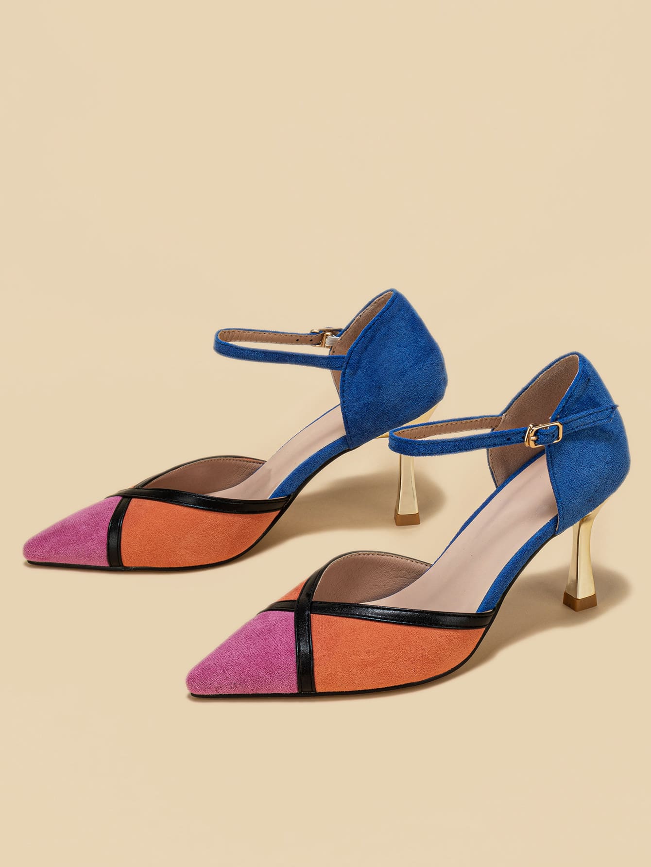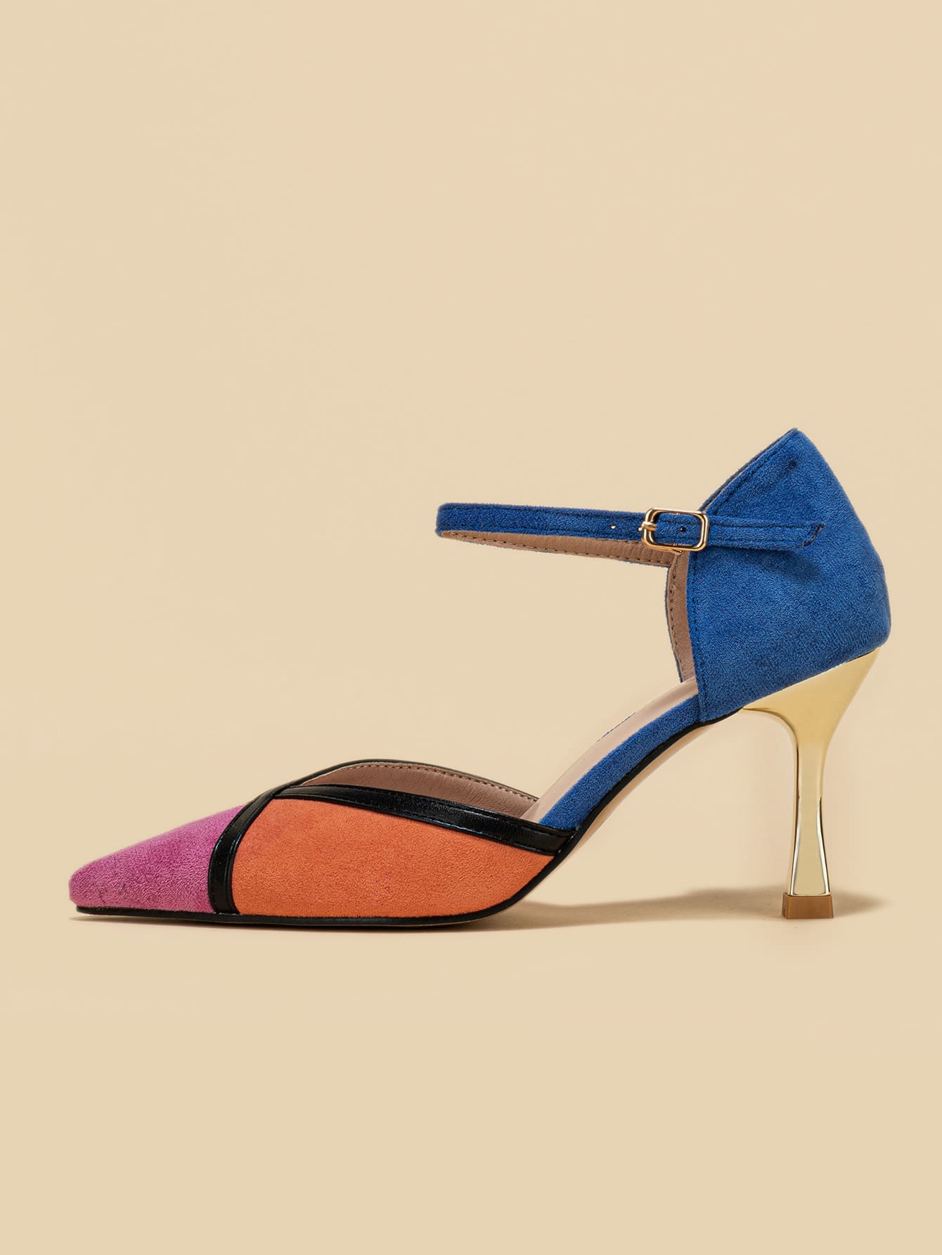 حذء كعب عالي ألوان متجانسة جلد سويدي الاصطناعي باصابع قدم مدبب كعب عالي هرم حزام كاحل