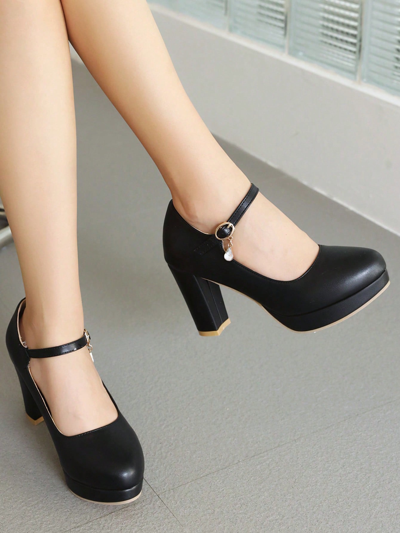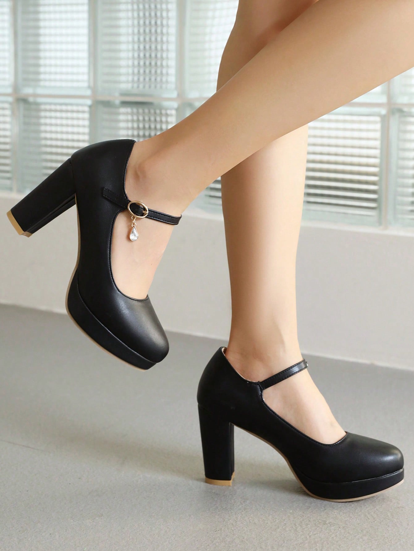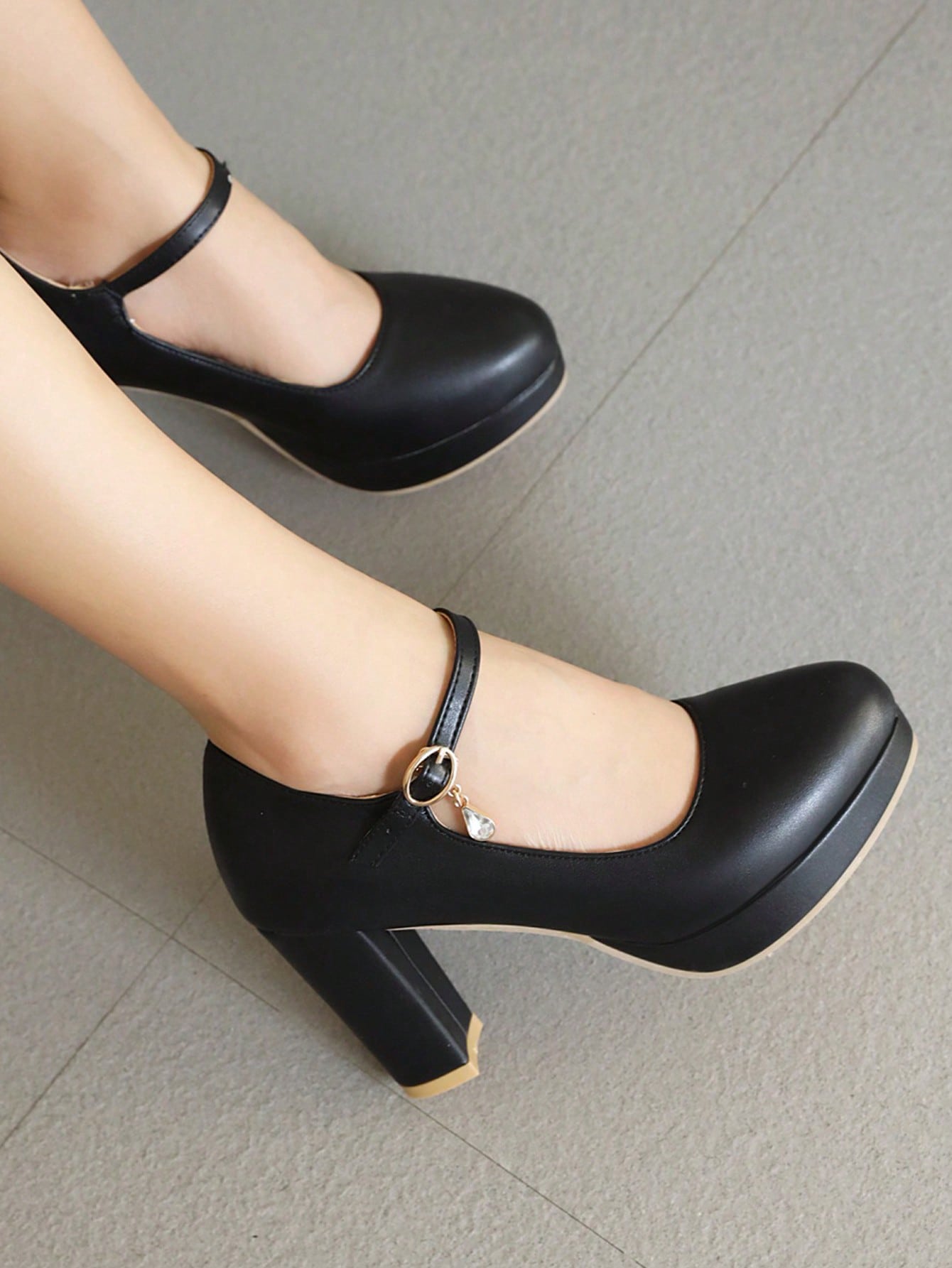 حذء كعب عالي بديكور حجر الراين ماري جين حذاء كعب مكتنز أنيق نساء