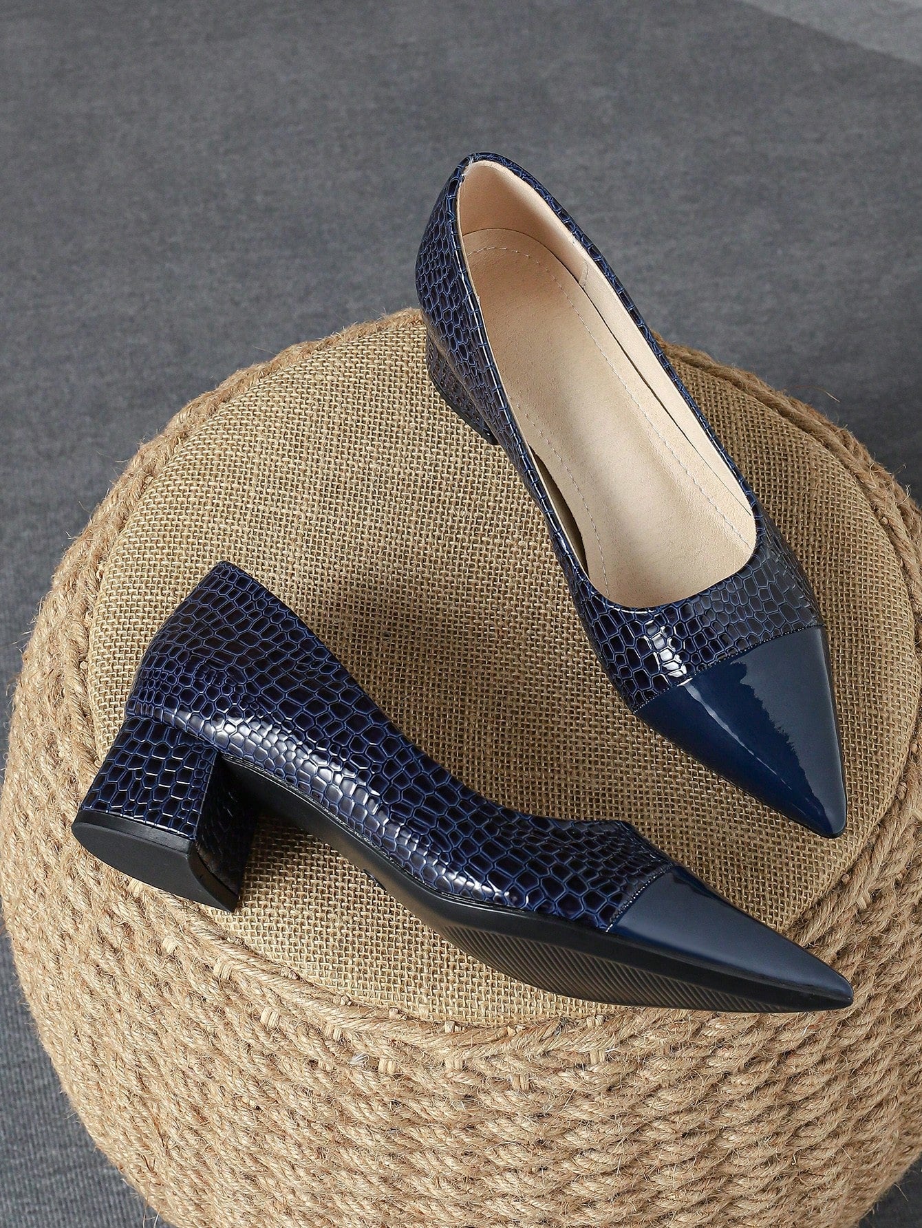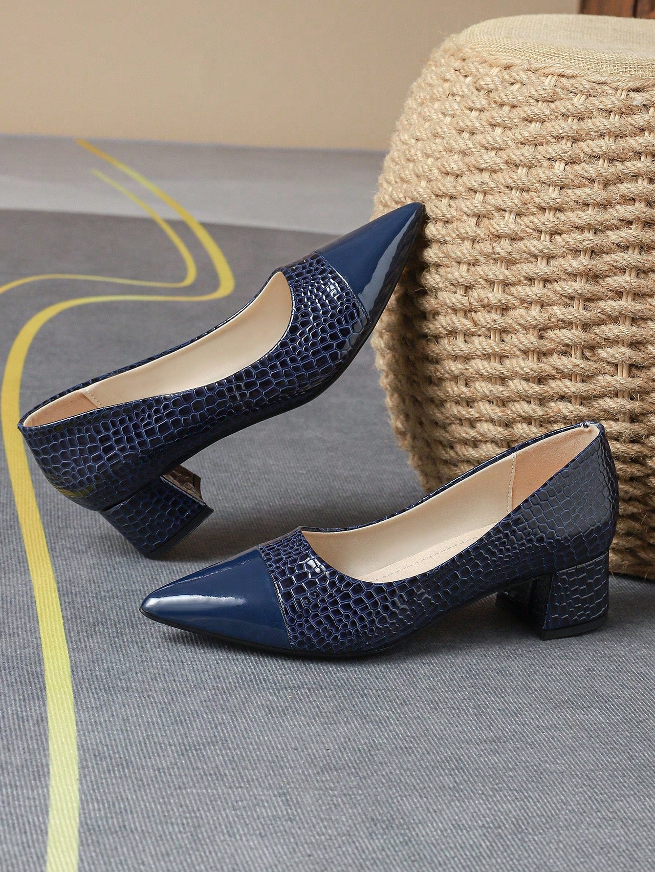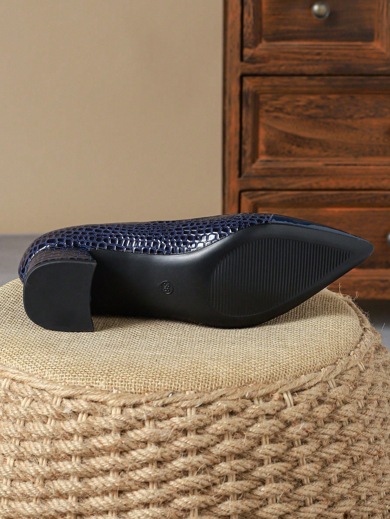 حذاء المضخة نقطة الأصابع بكعب 4 سم أحمر اللون للنساء بنقوش حجرية،