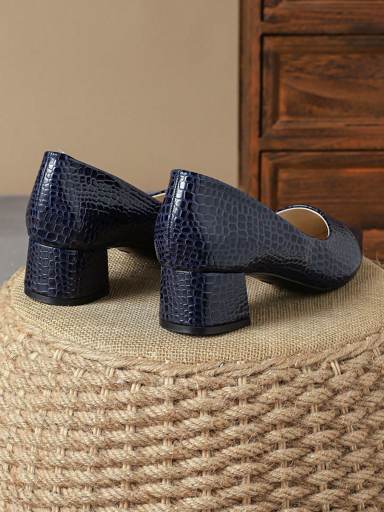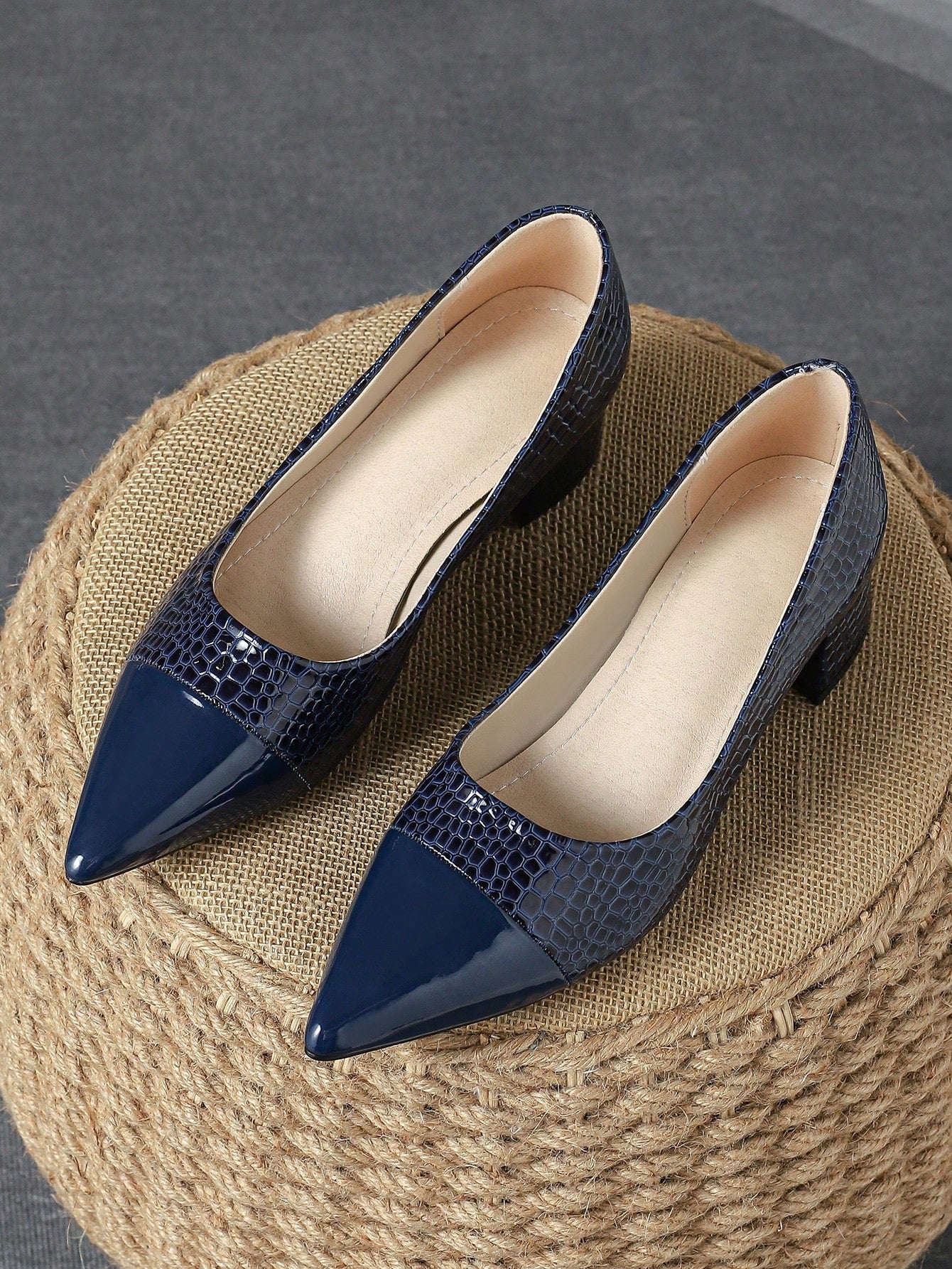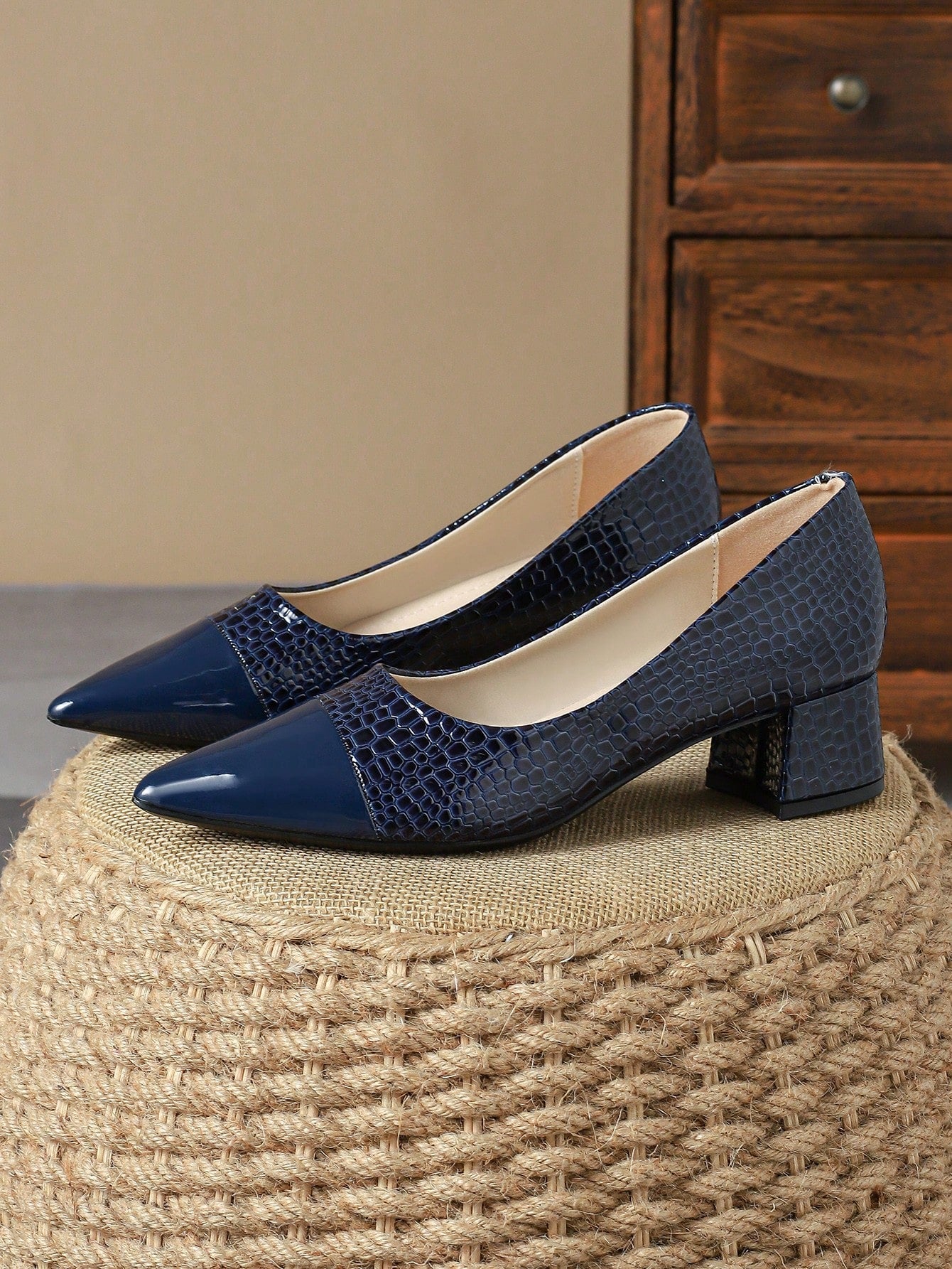 حذاء المضخة نقطة الأصابع بكعب 4 سم أحمر اللون للنساء بنقوش حجرية،