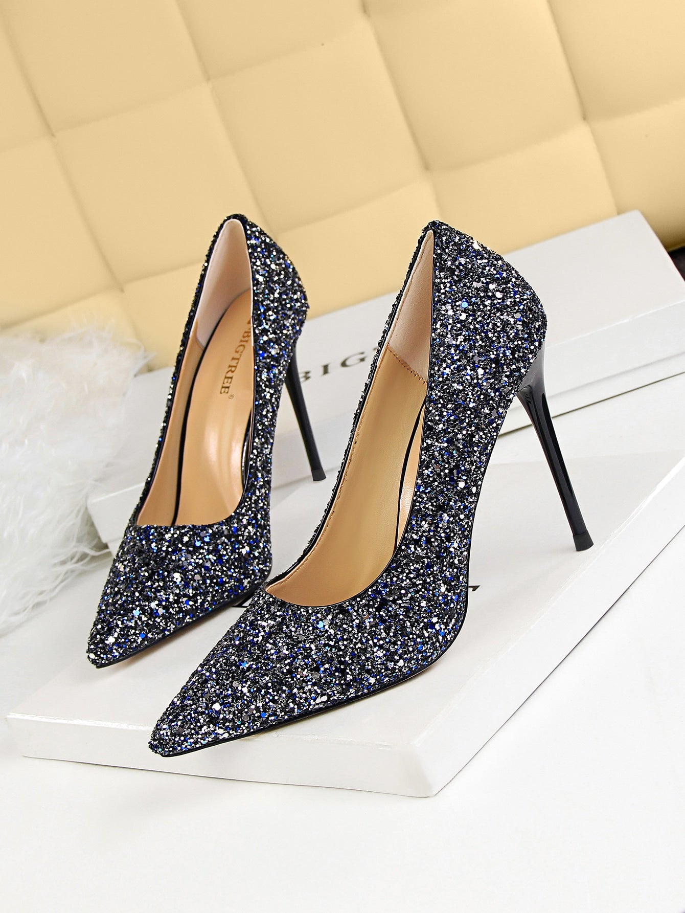 حذاء بومبز اسفين مزخرف لامر باصابع قدم مدبب خنجر