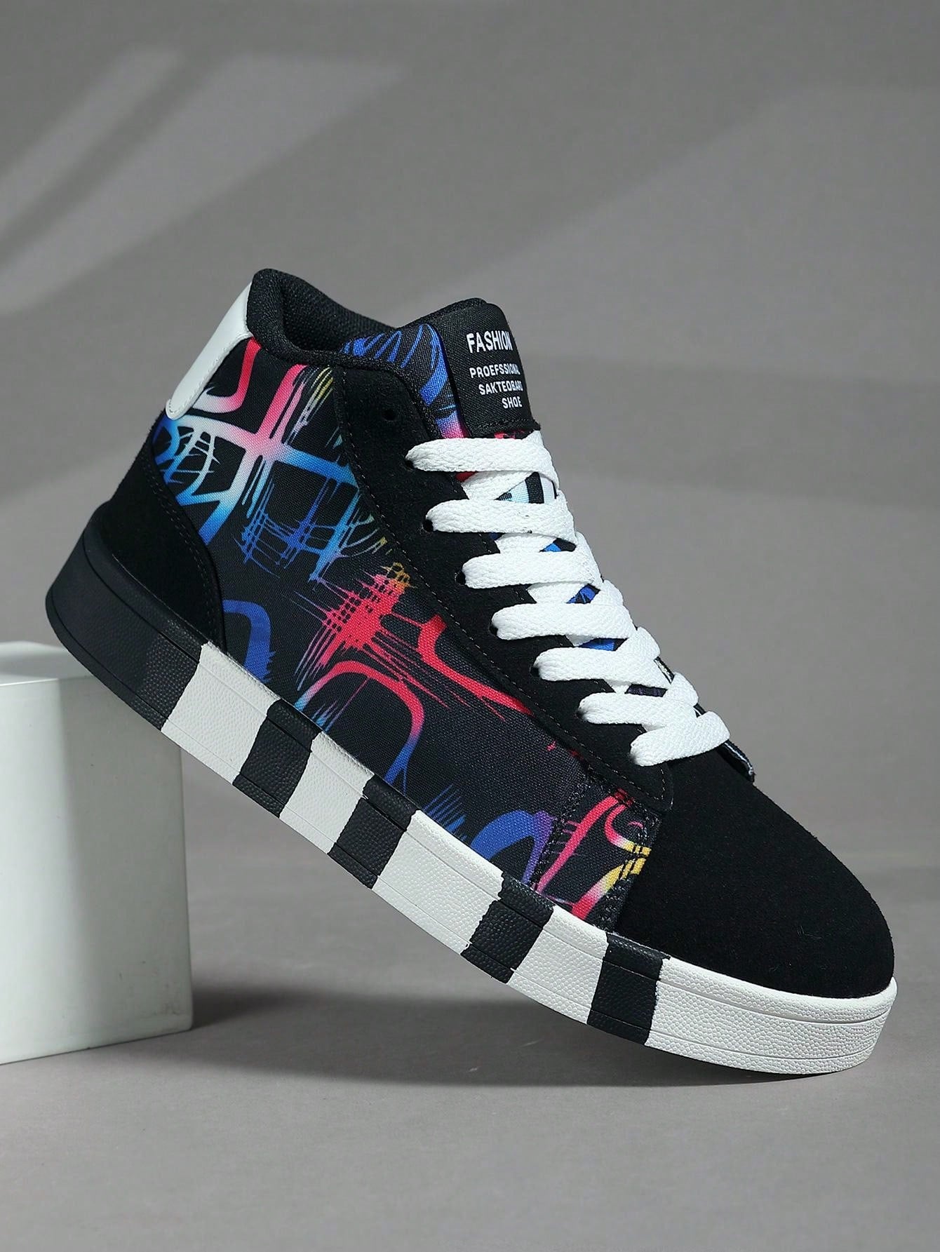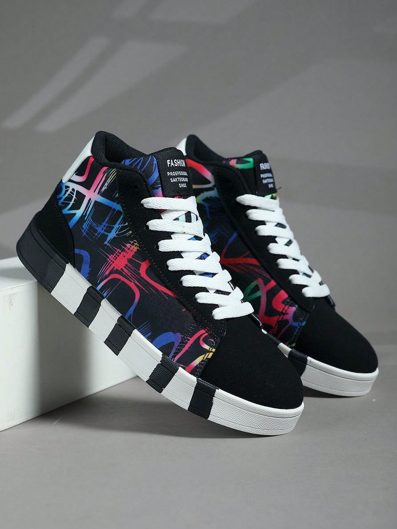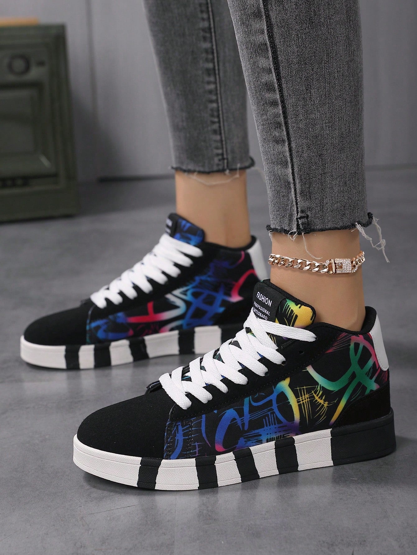 حذاء ركوب التزلج على الجليد عالي القمة الشخصية غير المشروطة برسوم جرافيتية للنساء لخريف وشتاء جديد ، تصميم كلاسيكي ملون ، حذاء مشي للجنسين خارجي يربط بالأربطة المخصص لرياضة المشي والتسلق