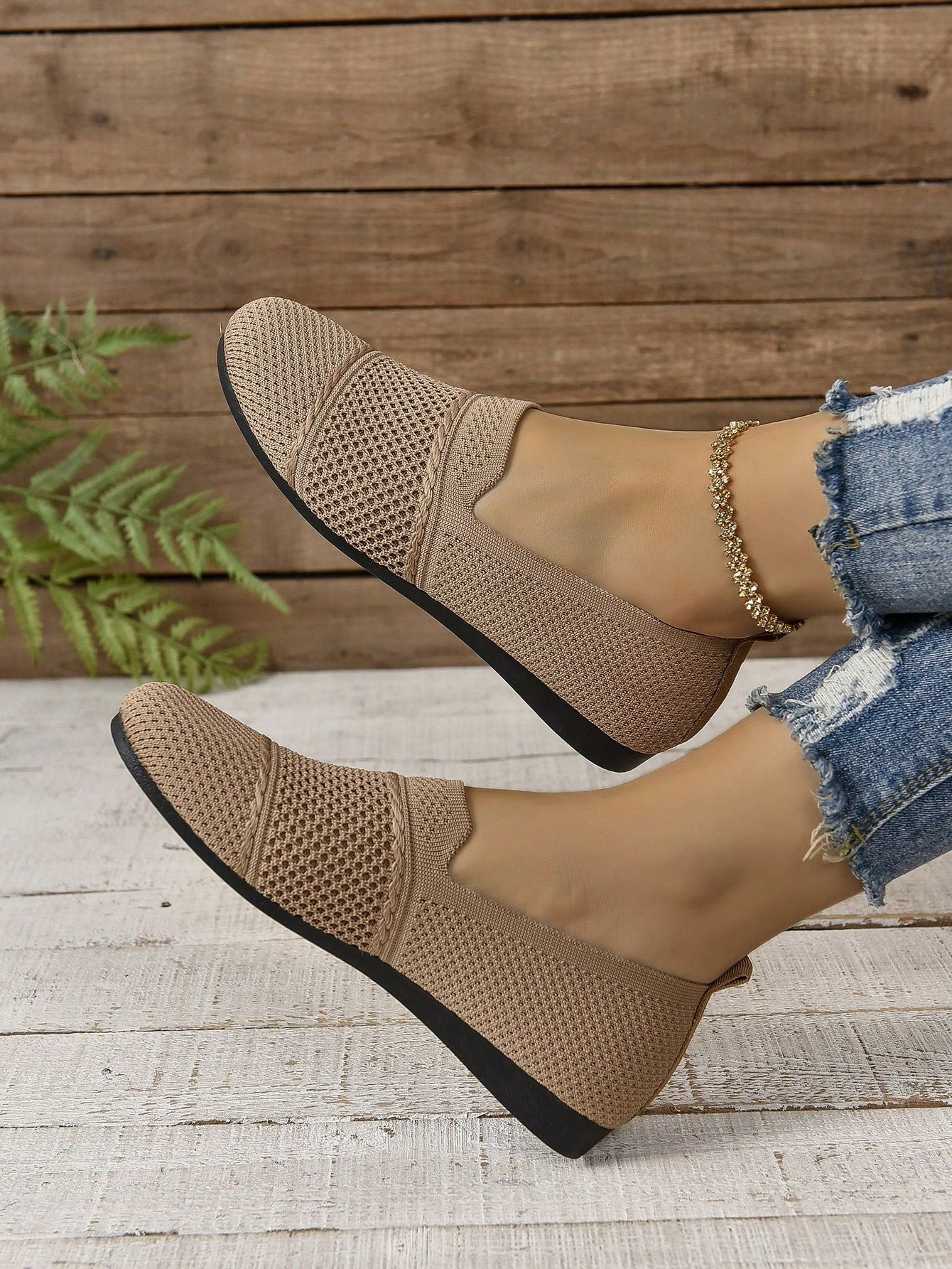 حذاء رياضي عاري القدم مسطح سهل الارتداء للمرأة ، مريح ومنفس، تصميم متعدد الاستخدامات