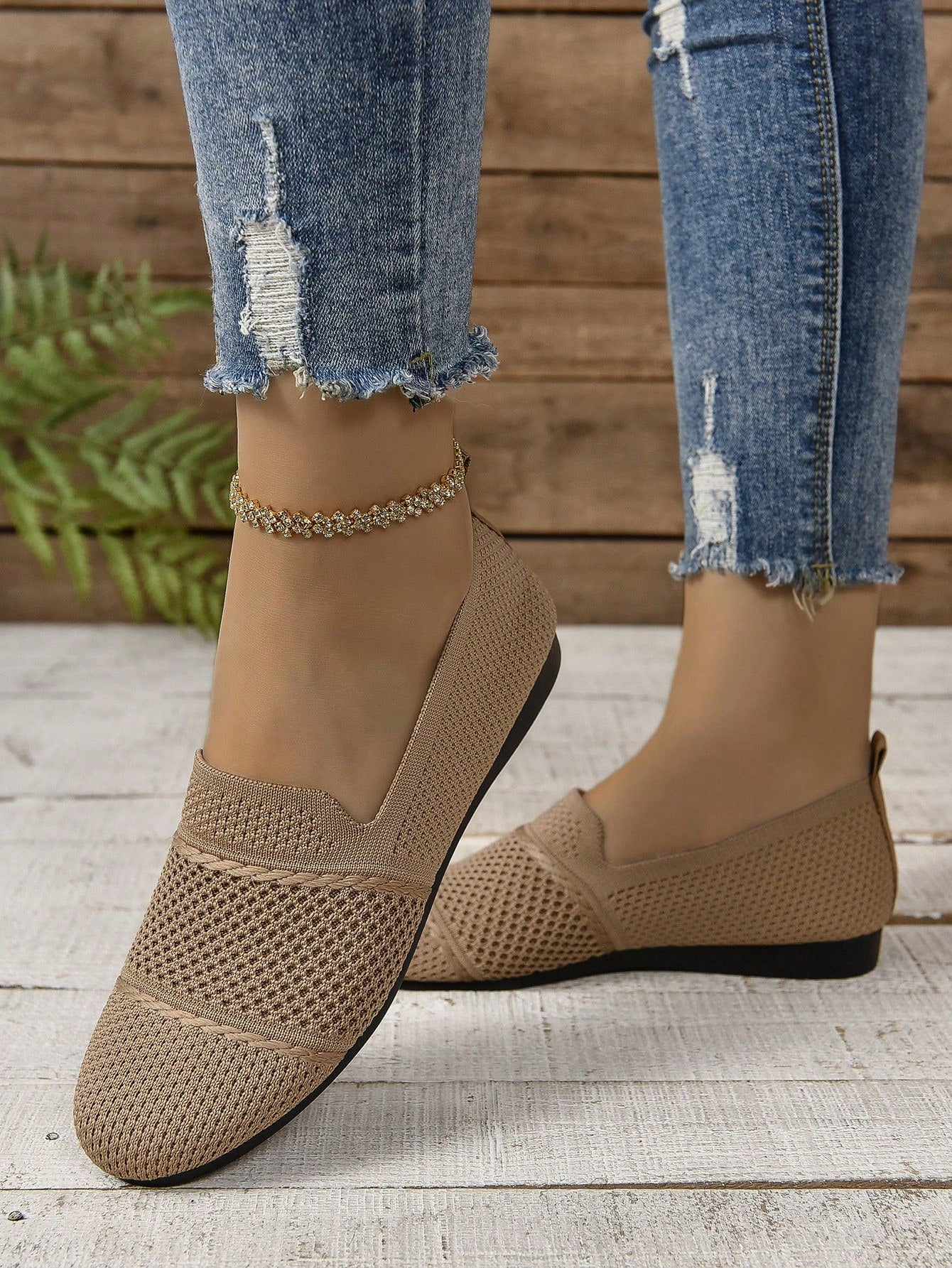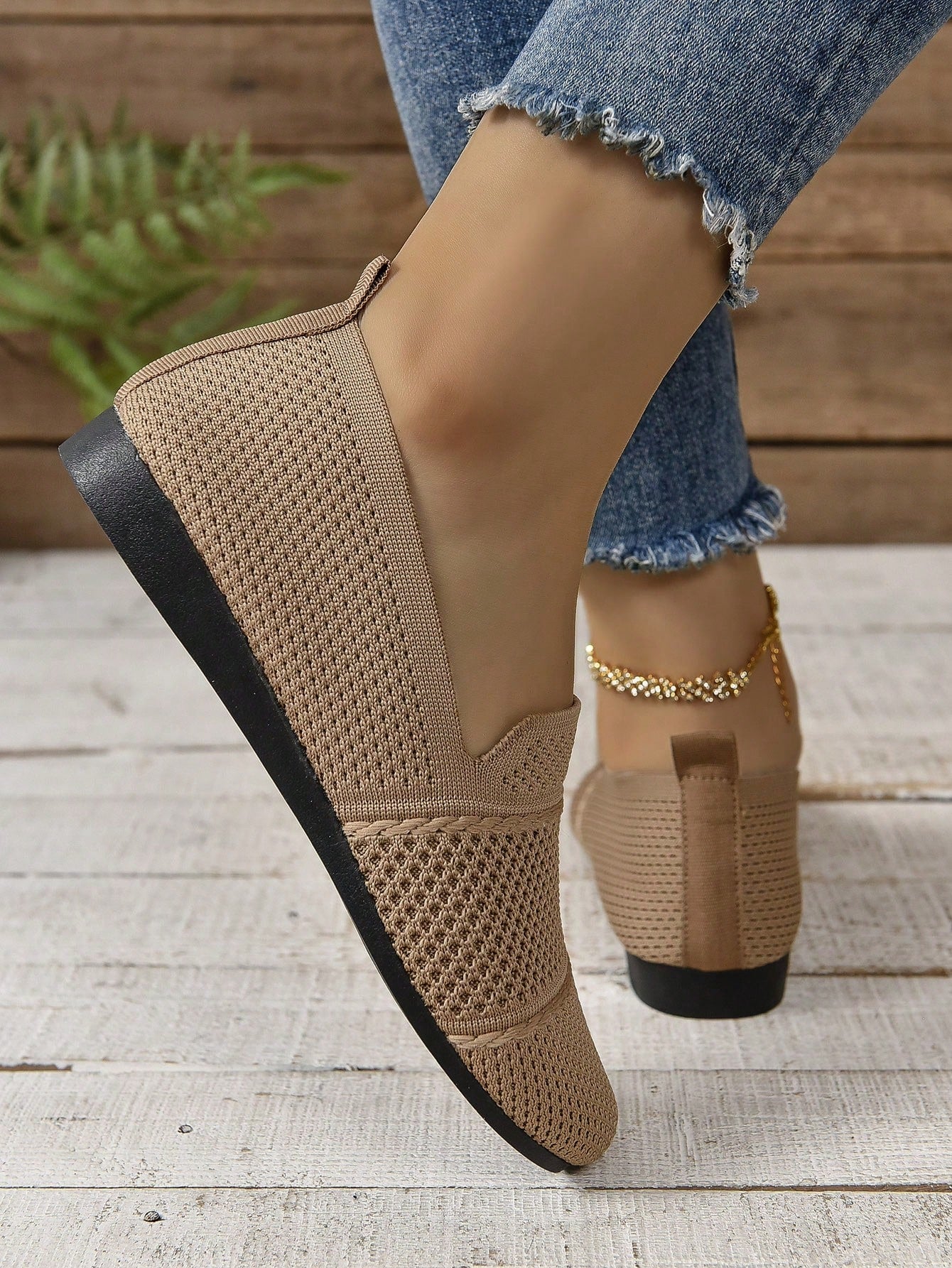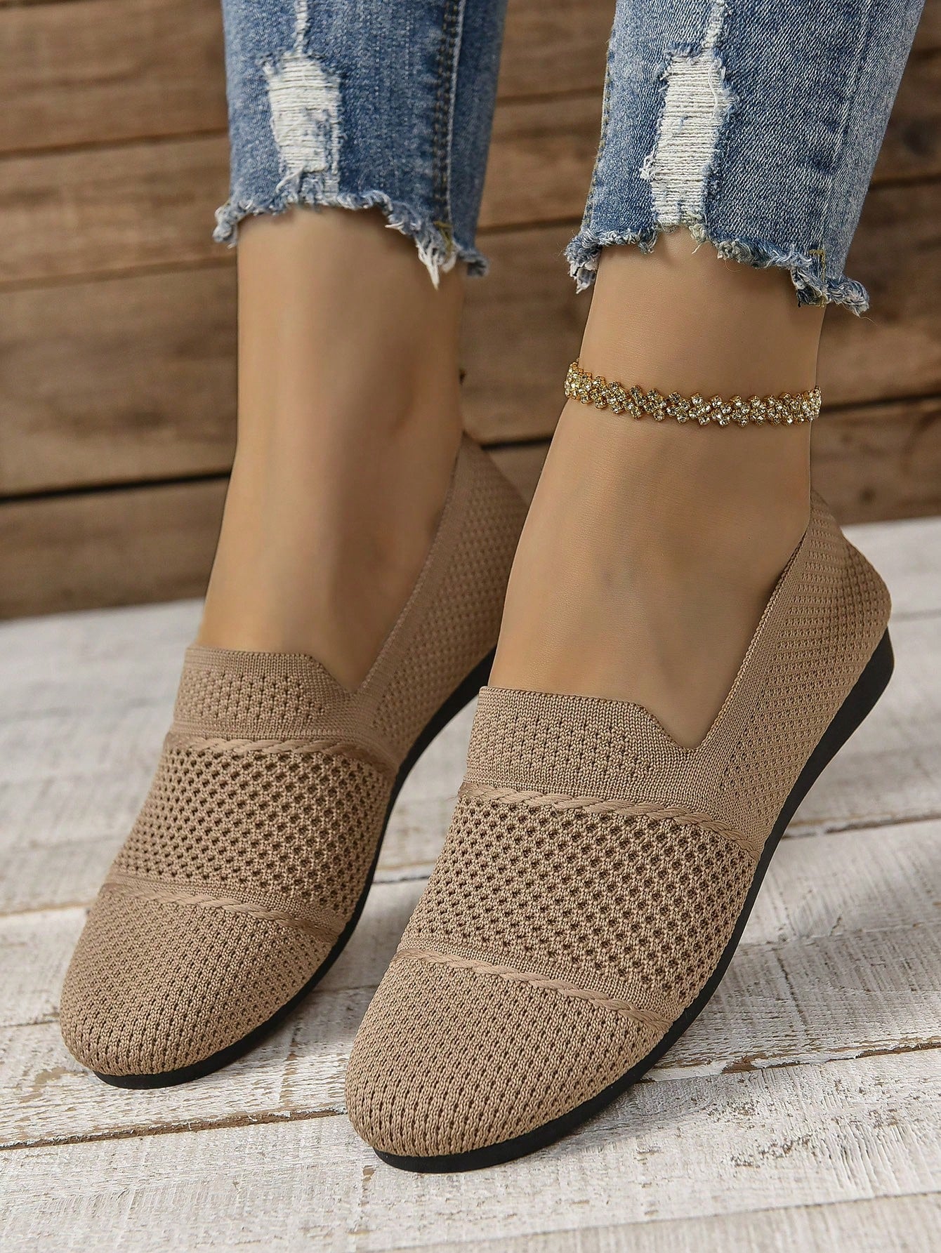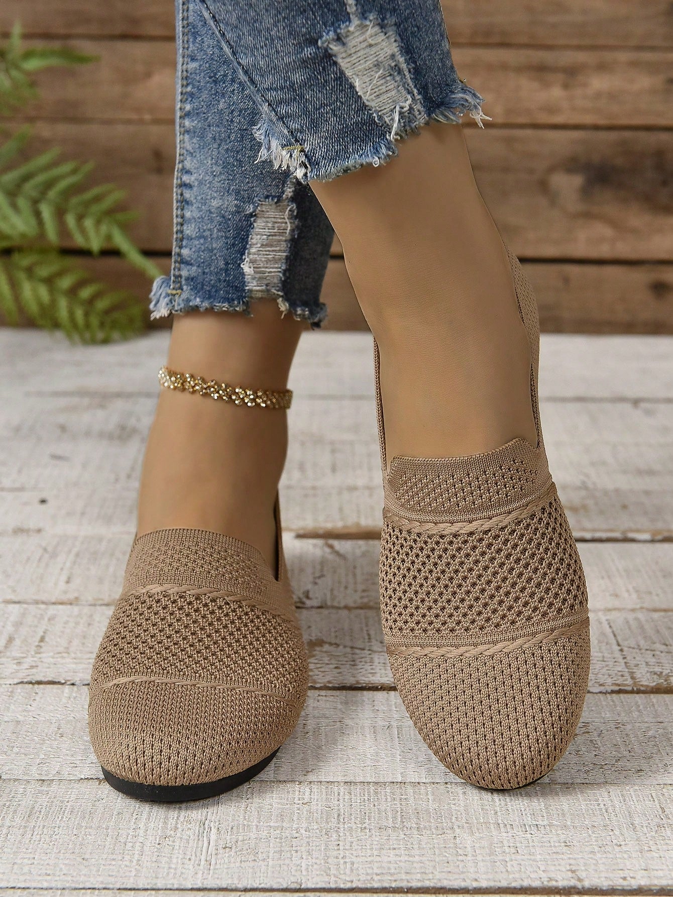 حذاء رياضي عاري القدم مسطح سهل الارتداء للمرأة ، مريح ومنفس، تصميم متعدد الاستخدامات