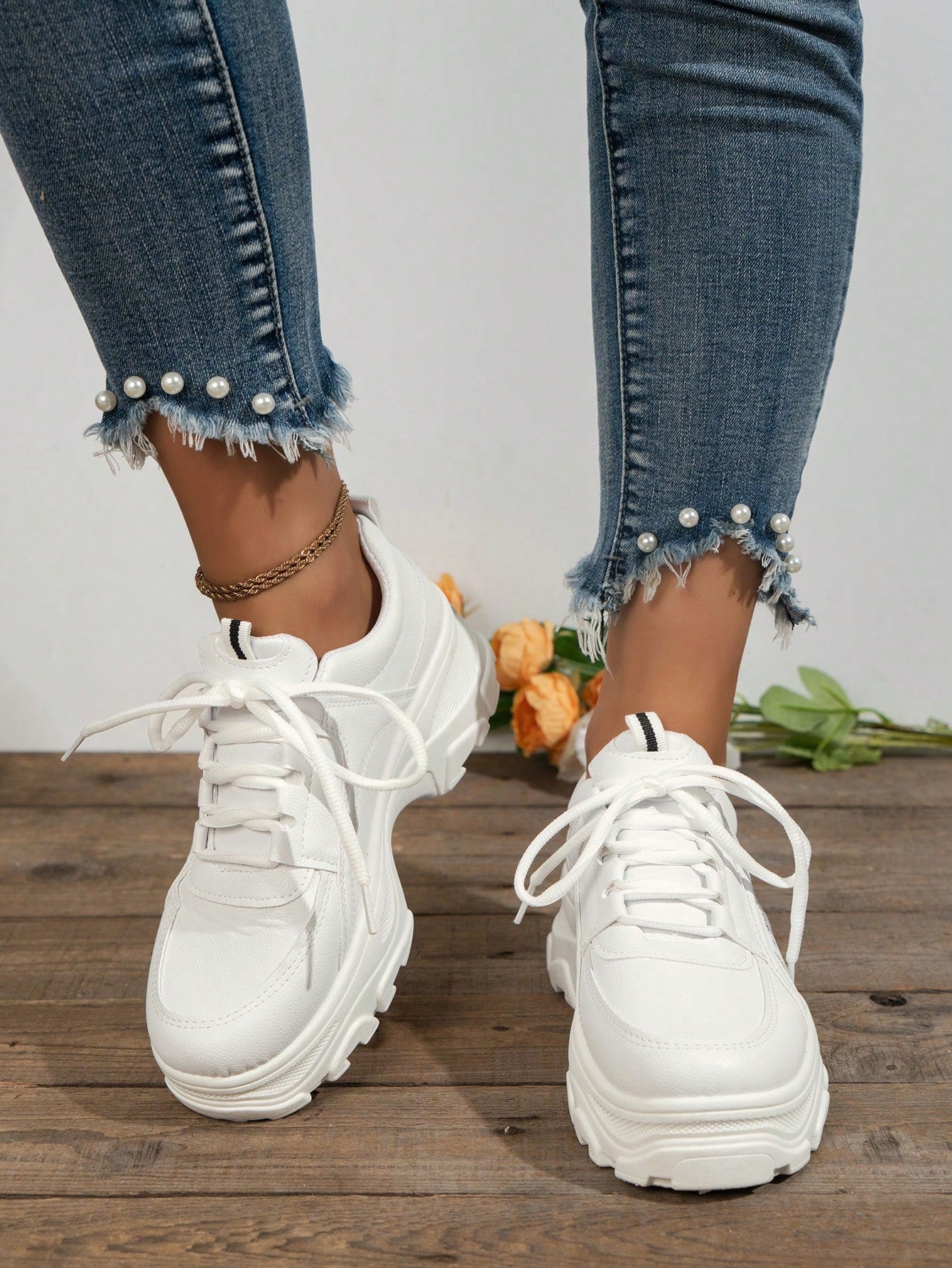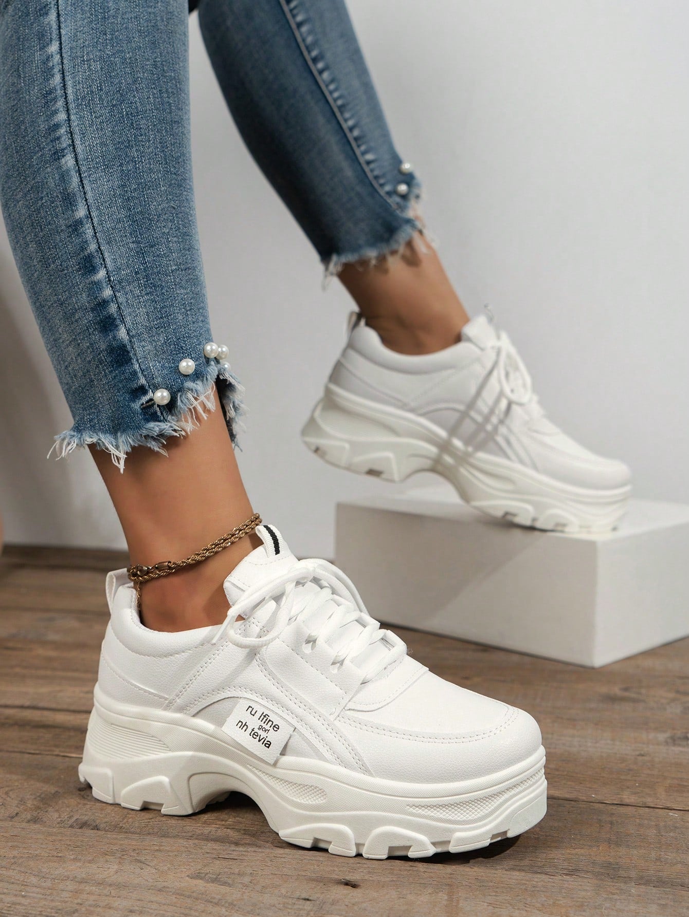 حذاء رياضي كاجوال أنيق ورياضي للنساء بلون أبيض جذاب و عصري