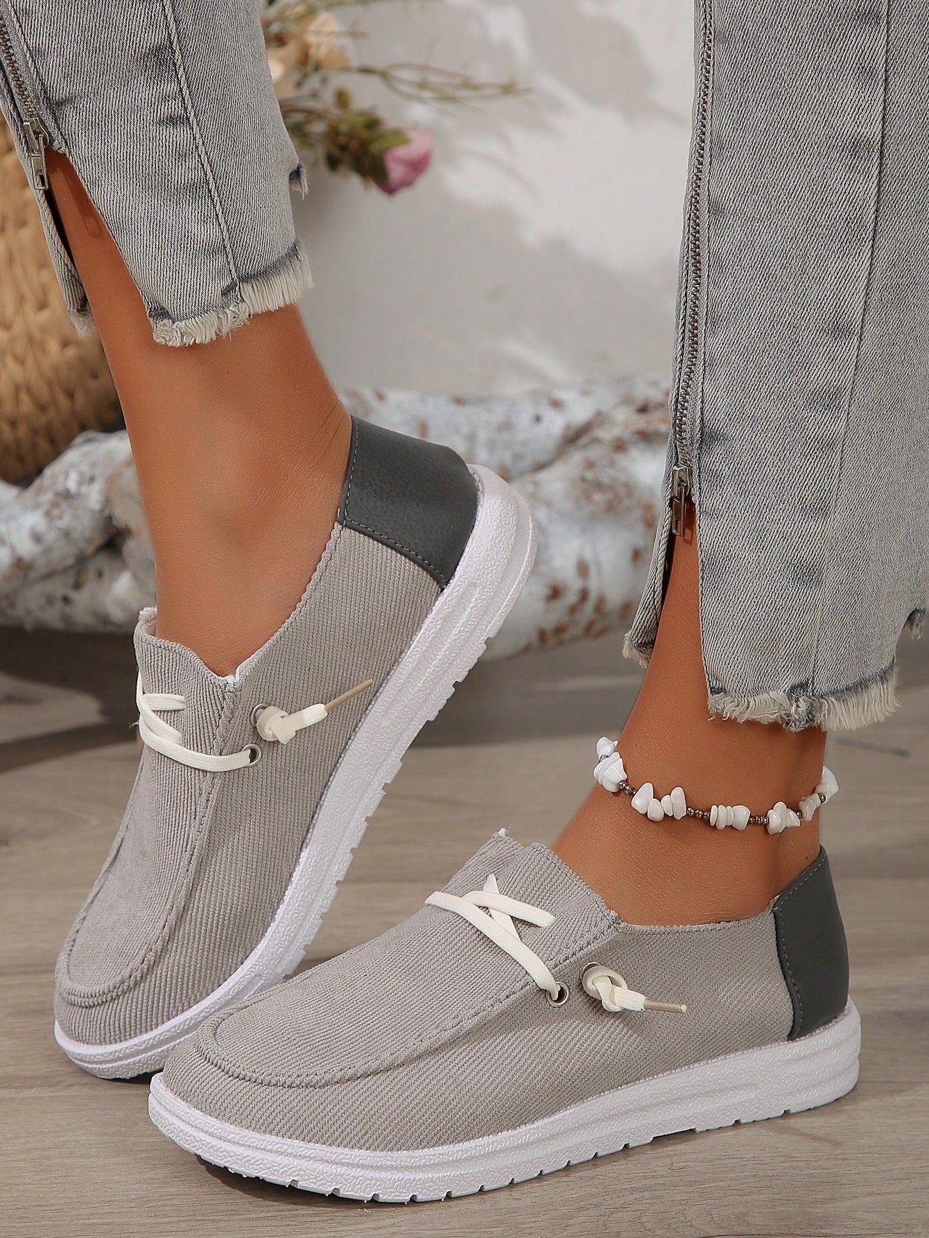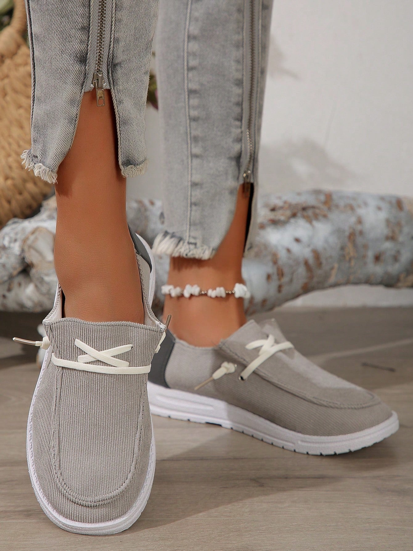 حذاء رياضي كاجوال خفيف الوزن للاستخدام الخارجي باللون الرمادي للنساء، حذاء كاجوال مسطح برباط