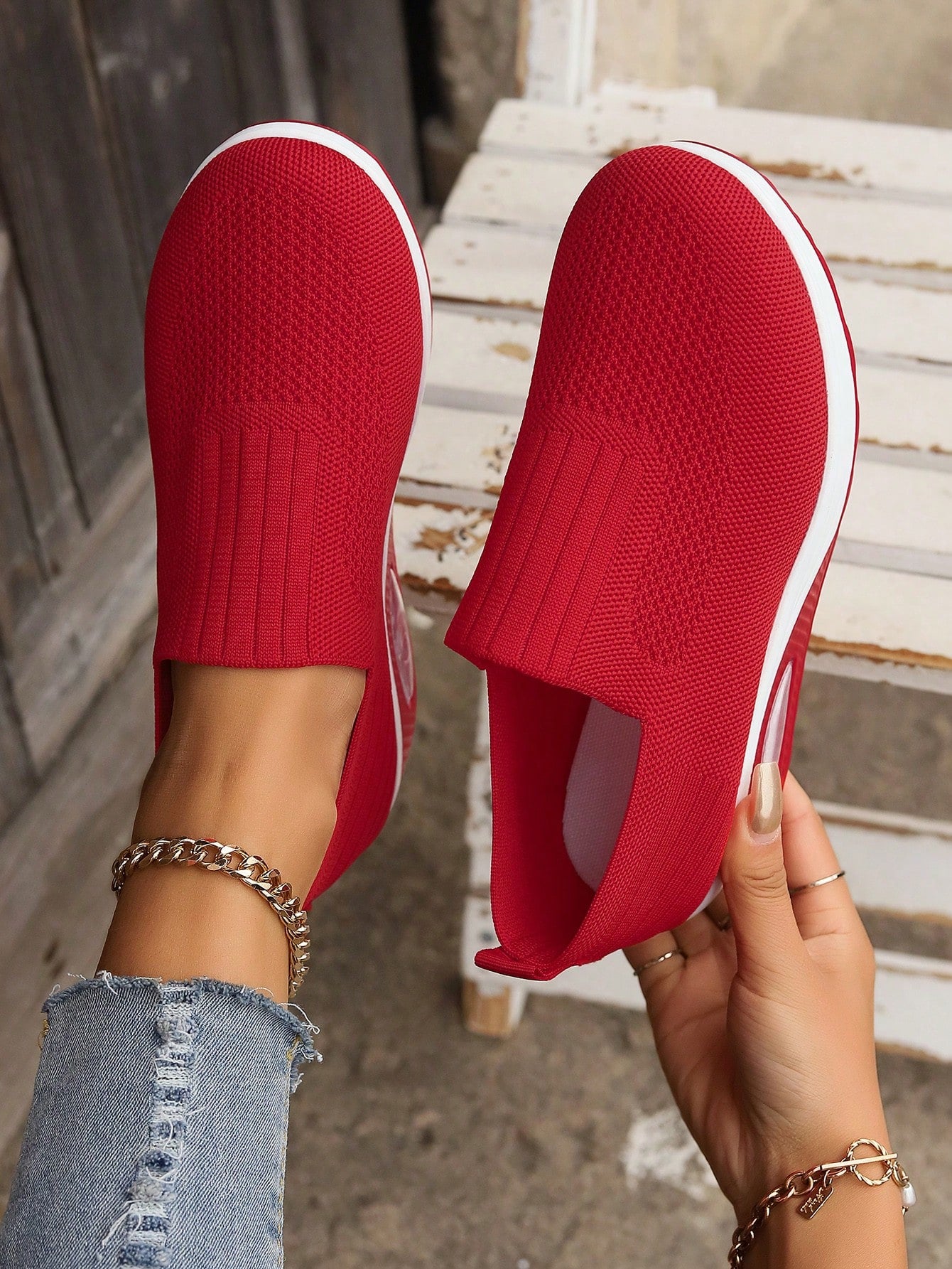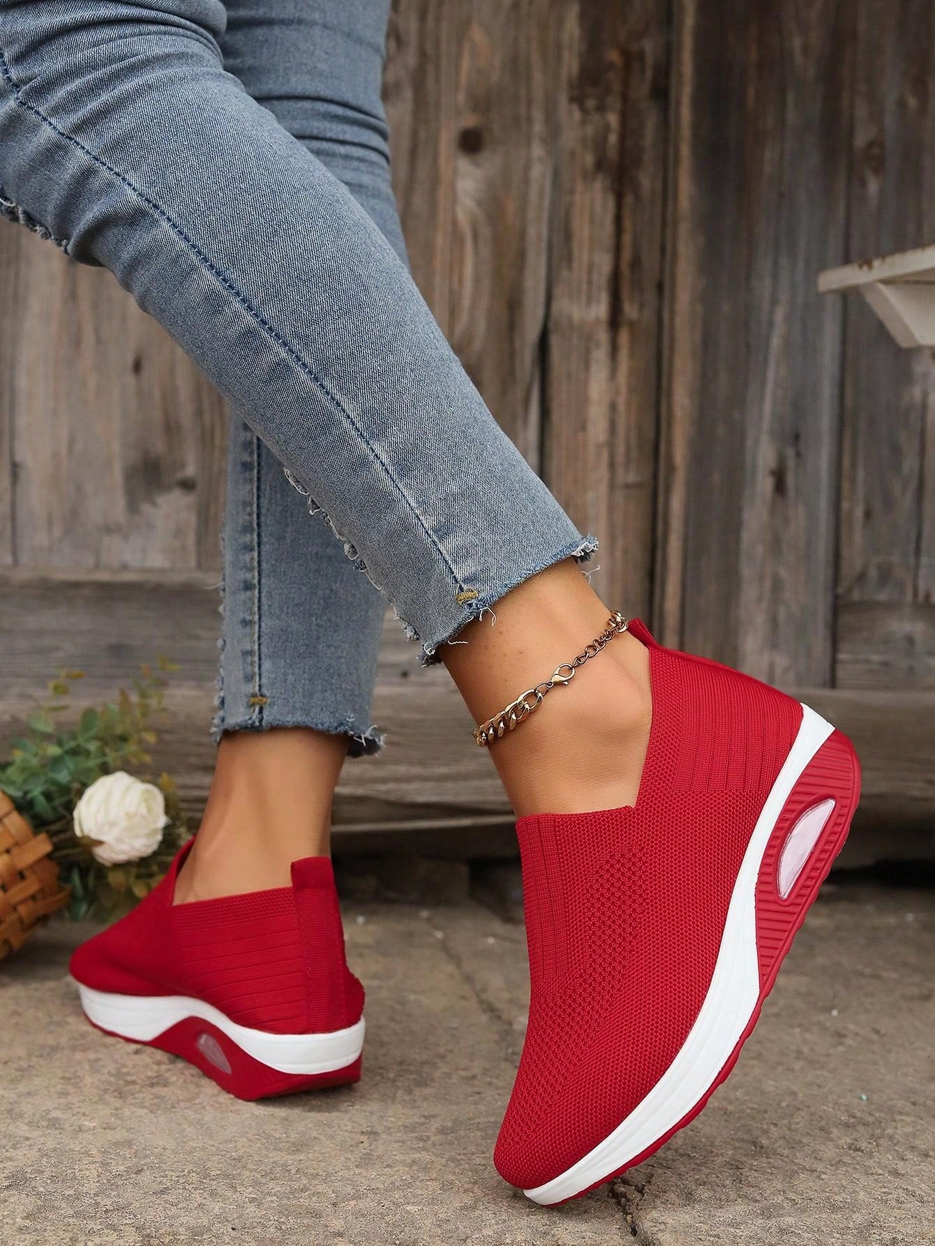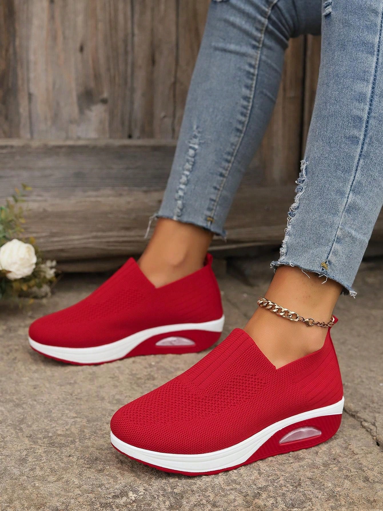 حذاء رياضي محبوك جديد للحدود الهائمة ، مريح ومسامي ومعزز بنعل ناعم مضاد للانزلاق، حذاء رياضي بتوسيدة هوائية من الشبكة للنساء.