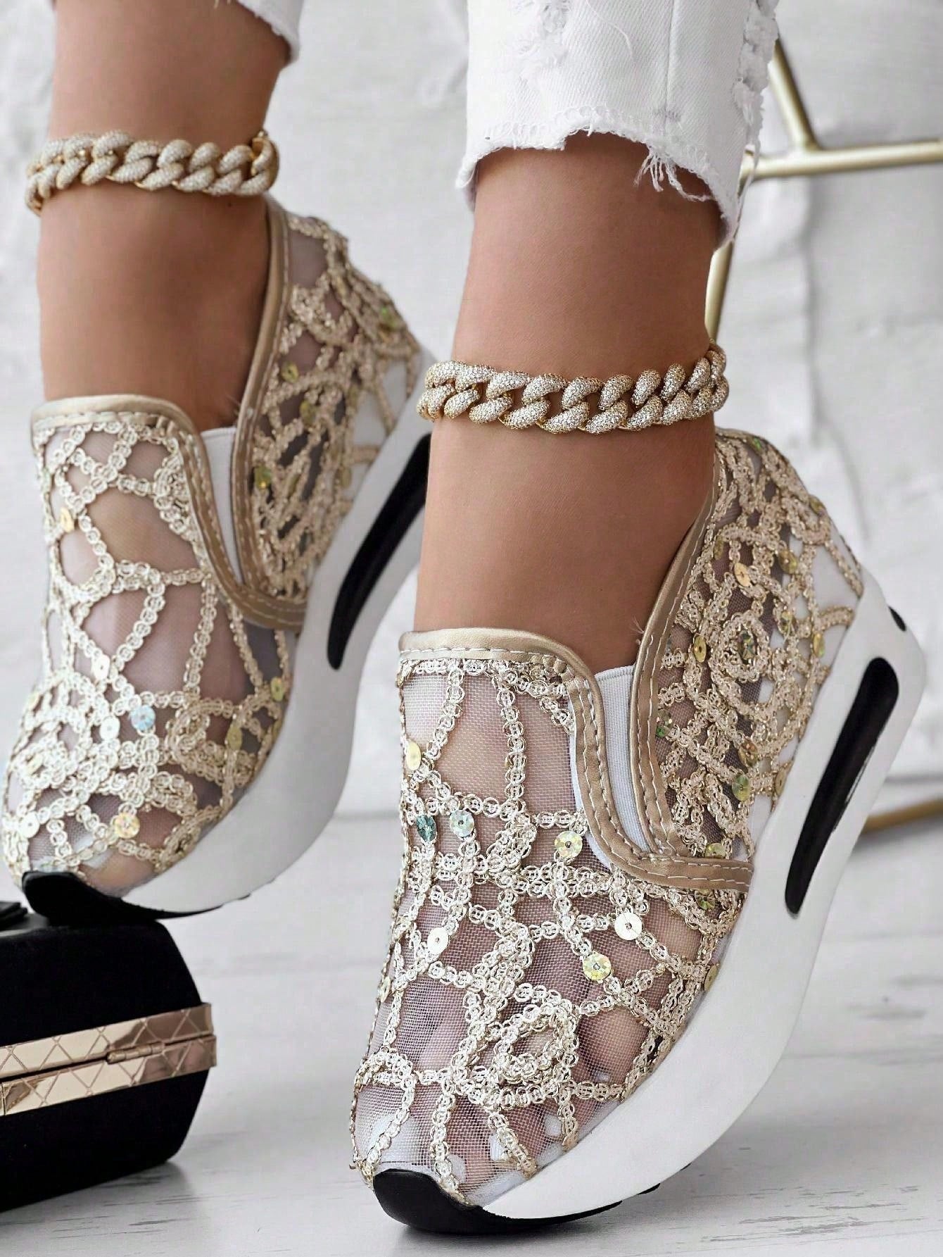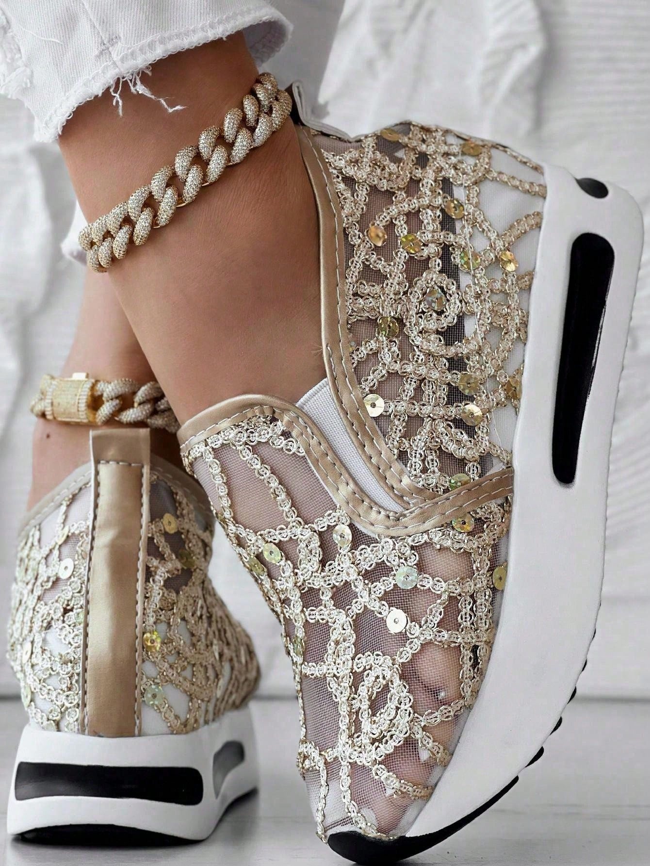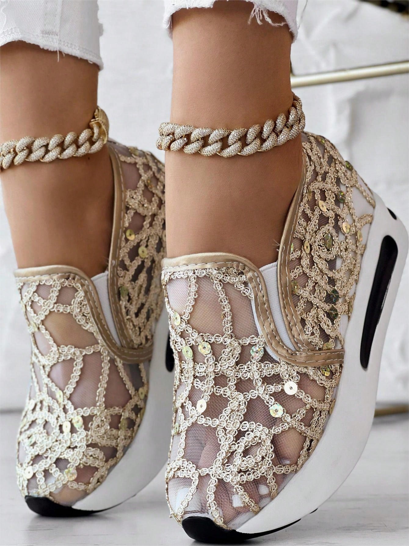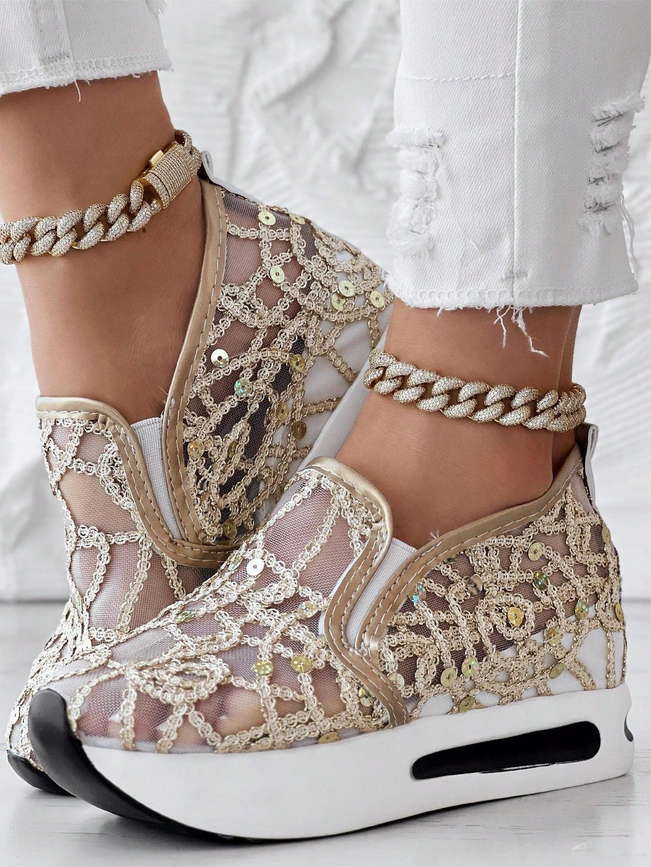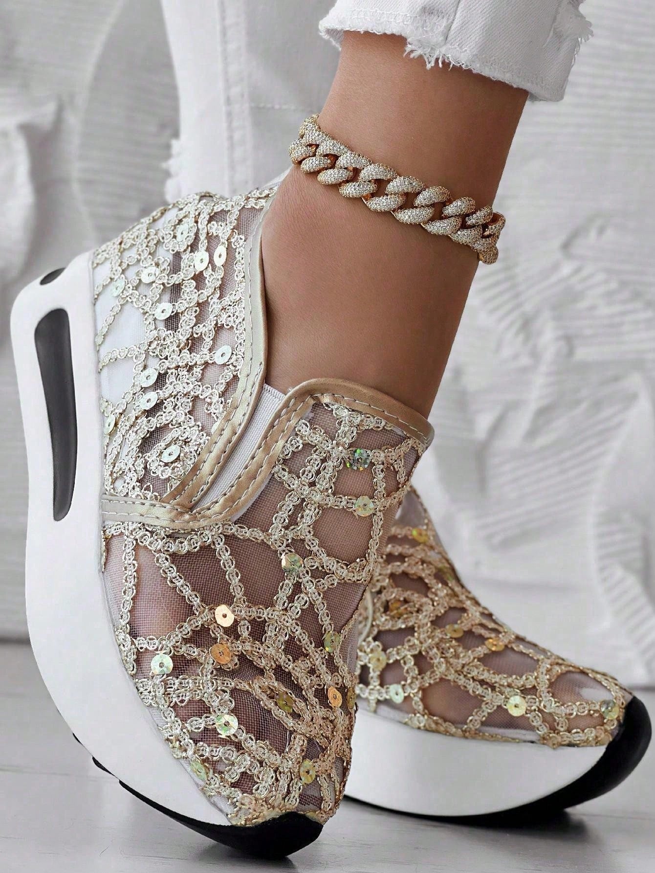 أحذية رياضية إسفين شبكية لامعة للنساء