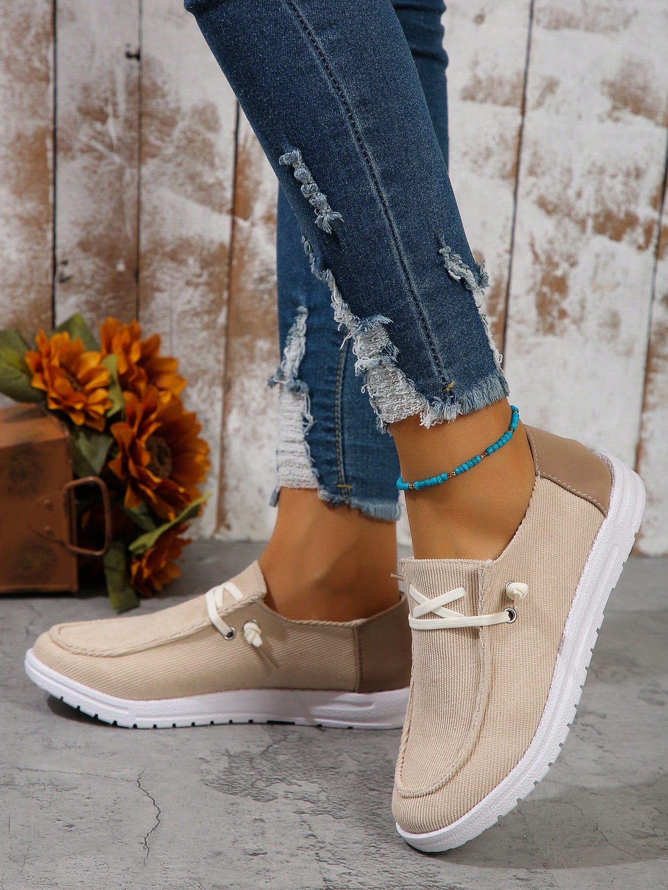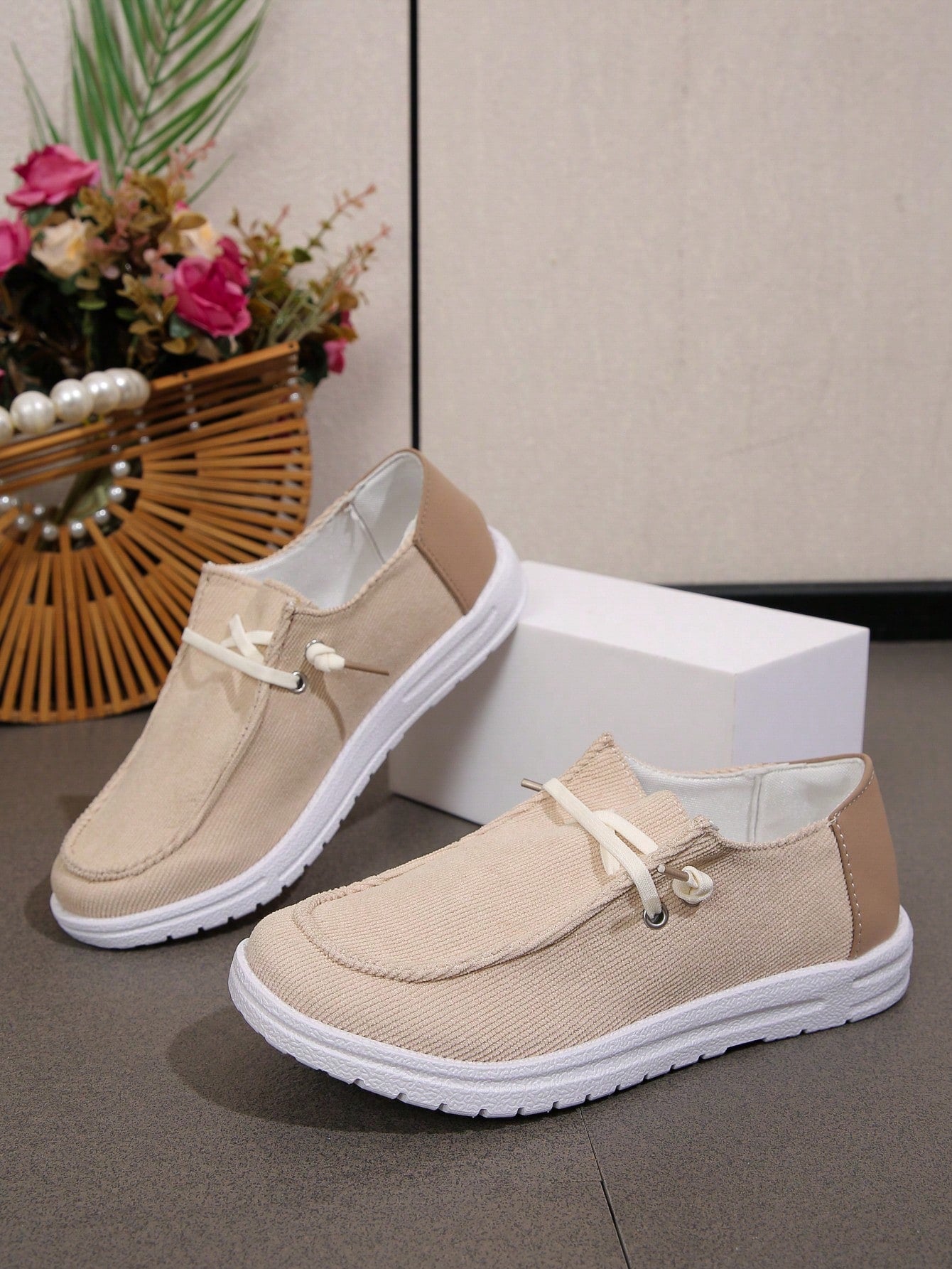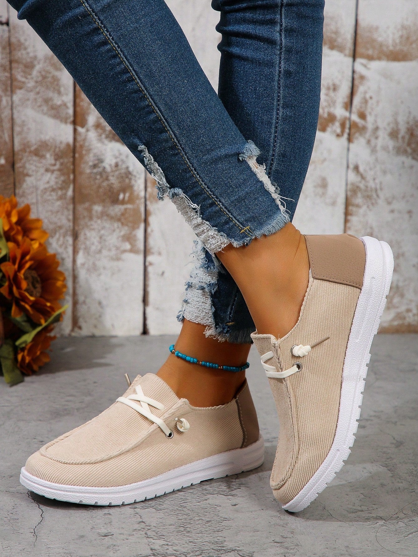 حذاء رياضي نسائي مسطح مستوحى من السبورت برباط تصميم من الفرو الصوفي العاري اللون للإستخدام اليومي والخارجي