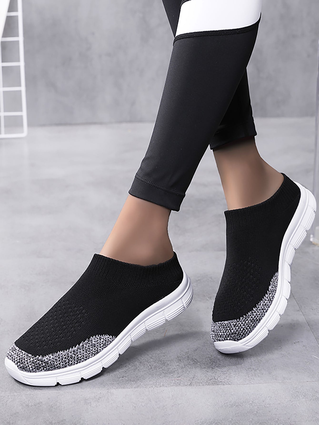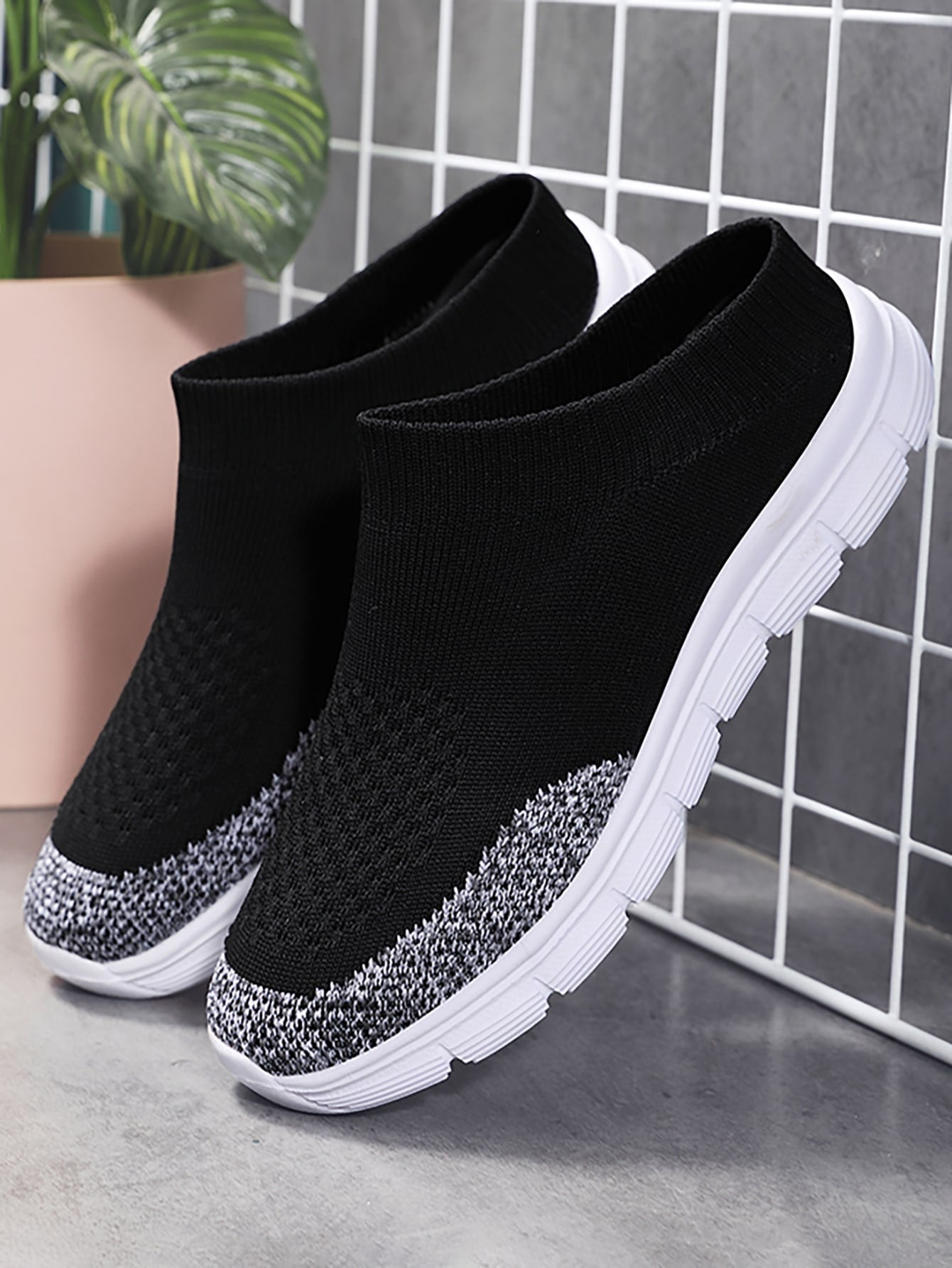 حذاء سنيكرز متعدد الألوان وبكعب إسطواني مخصر. الأحذية النسائية خفيفة الوزن ومريحة باللون الأسود والمرنة والتنفس، يناسب لبس الأوقات الفراغية