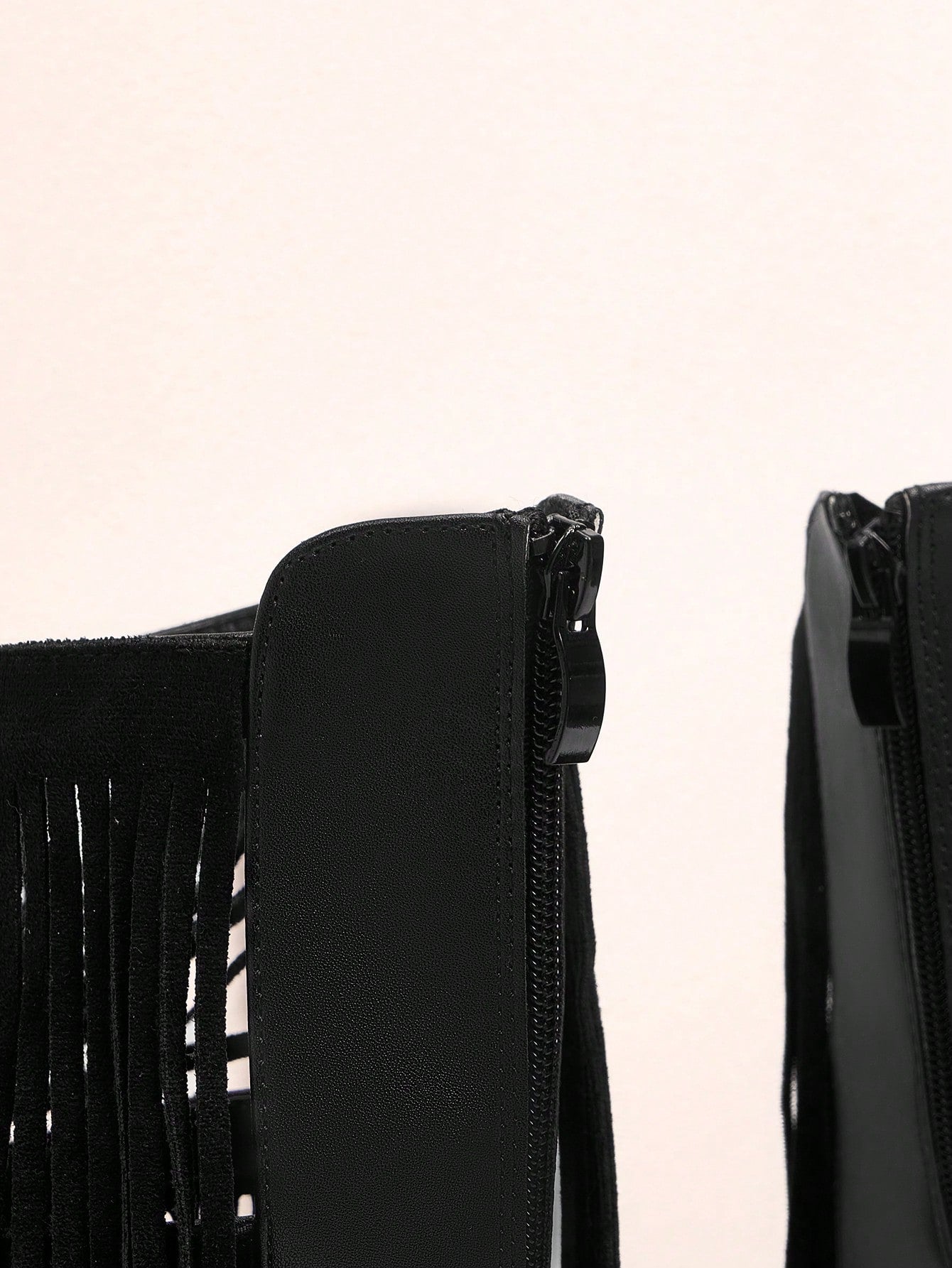 حذاء صندل روماني مرتفع بسحاب خلفي وزلّة هندسية مع تسريحة عصرية للنساء لموسم الصيف والعطلات وللبيع على اجواء الازياء البوهيمية