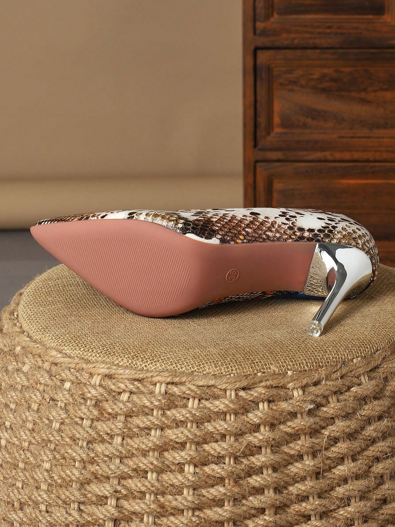 حذاء عالي الكعب بكعب تسعة سنتيمترات ورأس نحيف مريح للنساء باللون البني الرجعي الأنيق بتصميم غير رسمي عالي الجودة