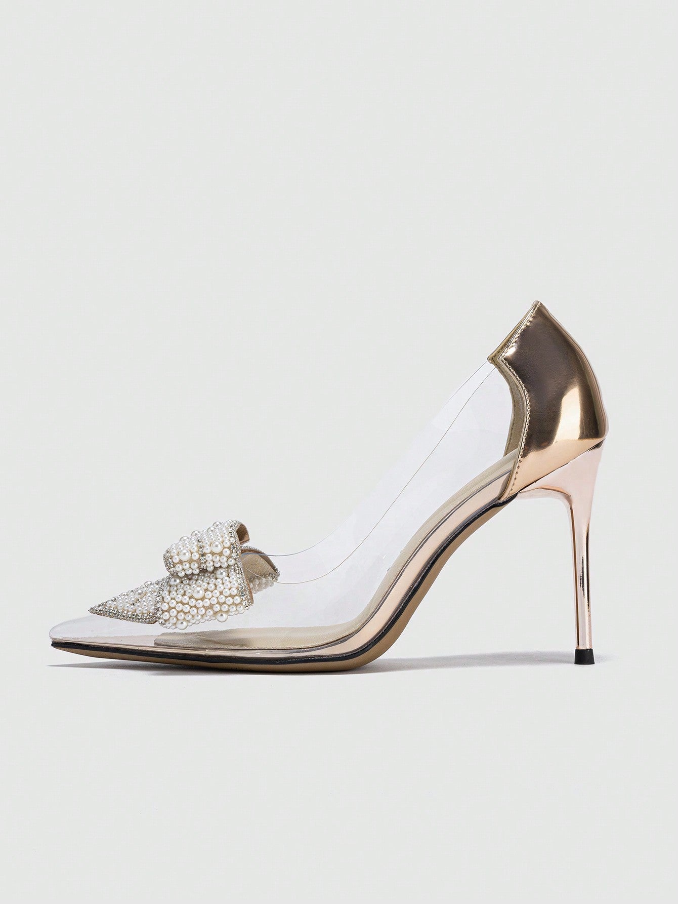 حذاء عالي الكعب مخملي مزين بفراشة ولؤلؤ وزهرة وكعب رفيع وجه مدبب للسيدات، وحذاء بكعب الشمبانيا الأنيق