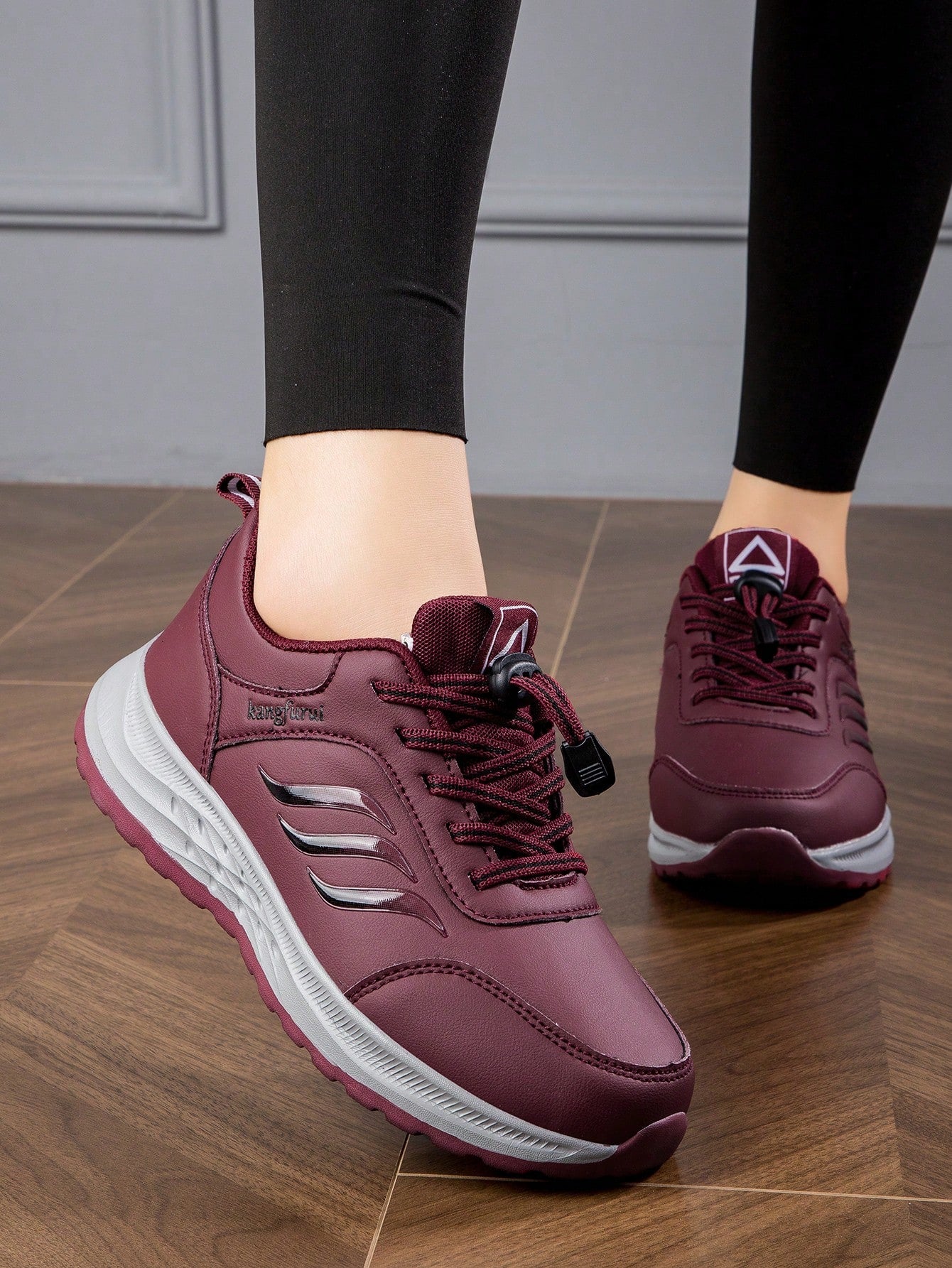 حذاء مشي نسائي بسيط من جلد البولي يوريثان مضاد للرذاذ للربيع والخريف، أحذية رياضية مقاومة للانزلاق، مريحة وخفيفة الوزن مع نعل ناعم عالي المرونة