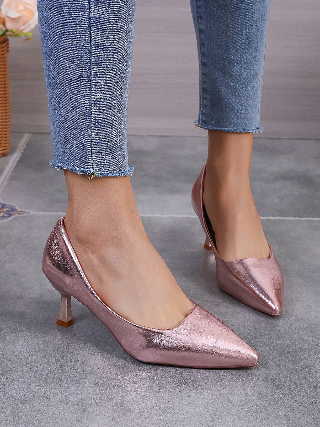 حذاء نسائي باللون الوردي منخفض ومرتفع بارتفاع 6 سم