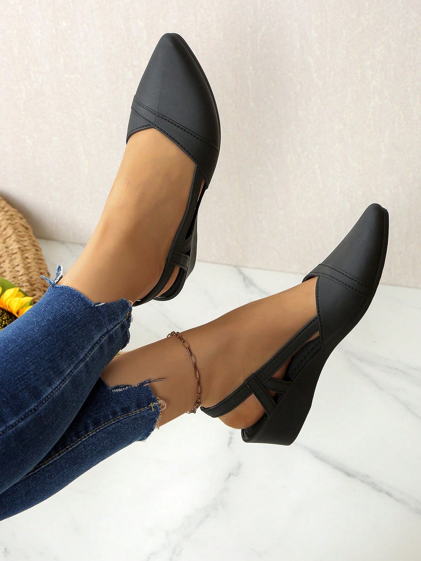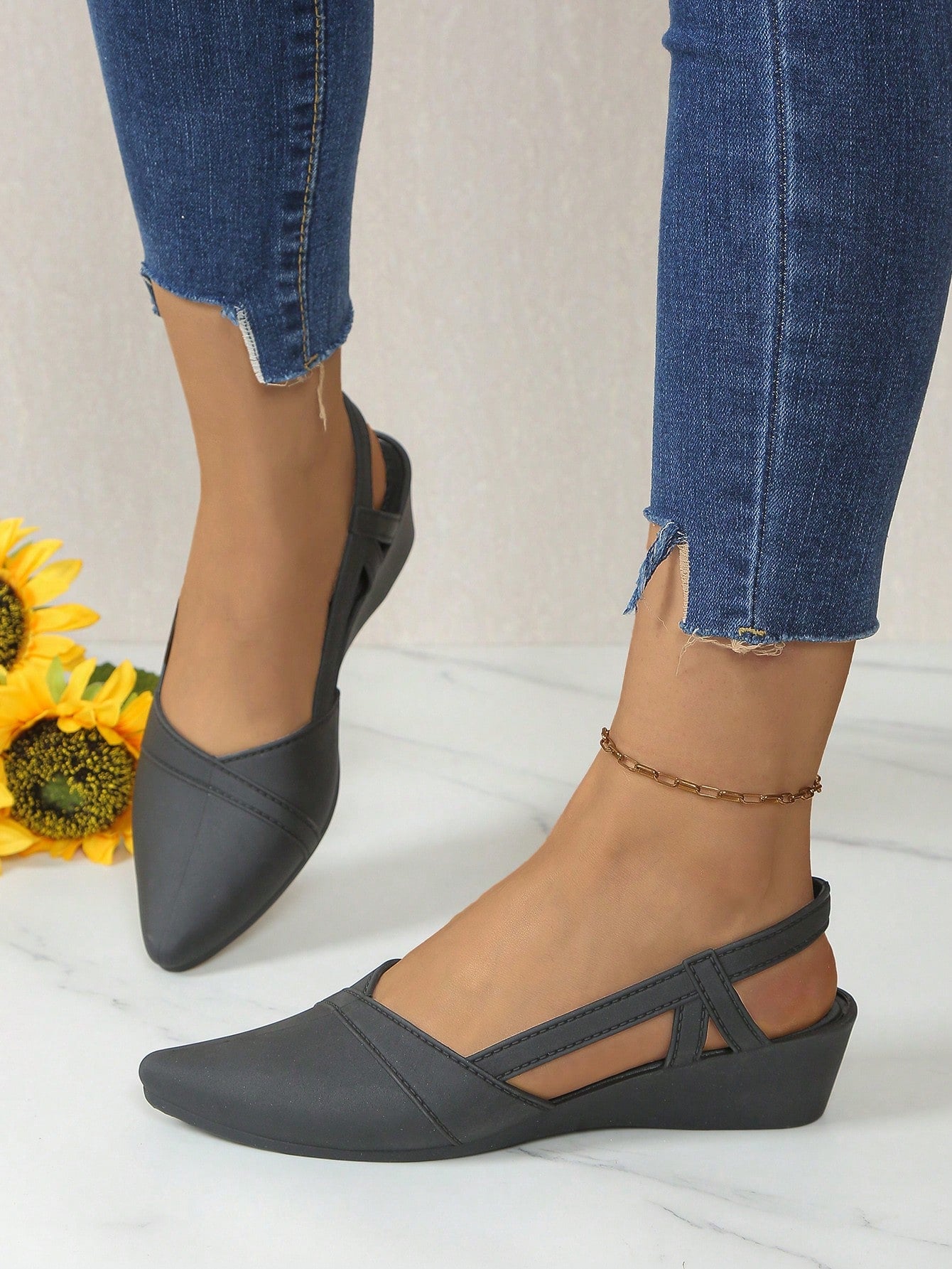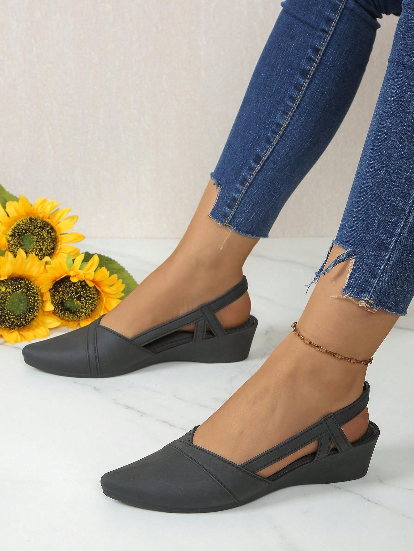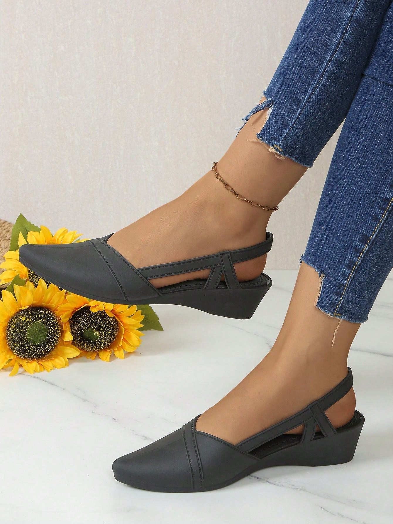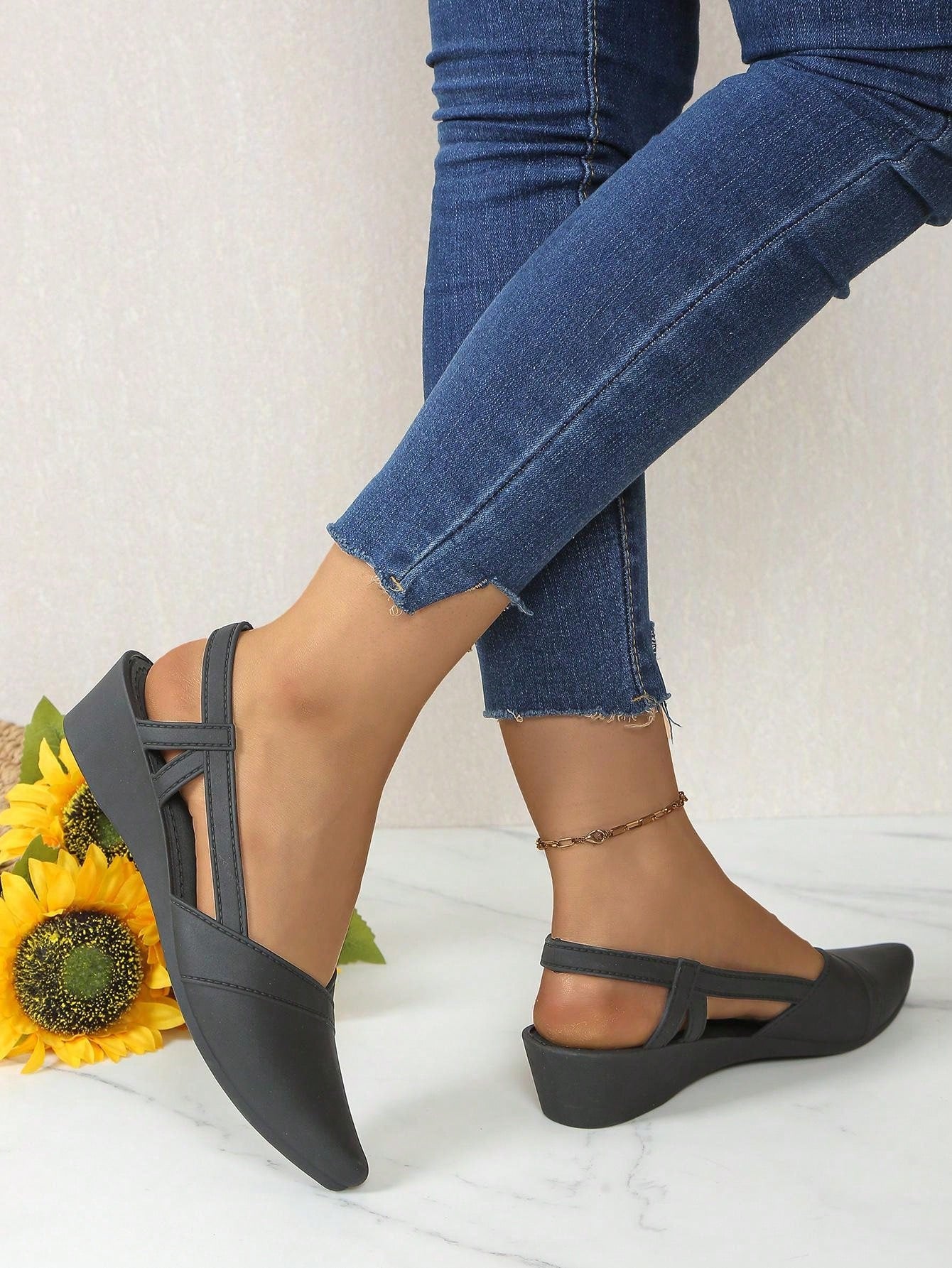 حذاء نسائي بكعب صلب مغلق بإبزيم كاحل ونعل سميك لصنادل الصيف