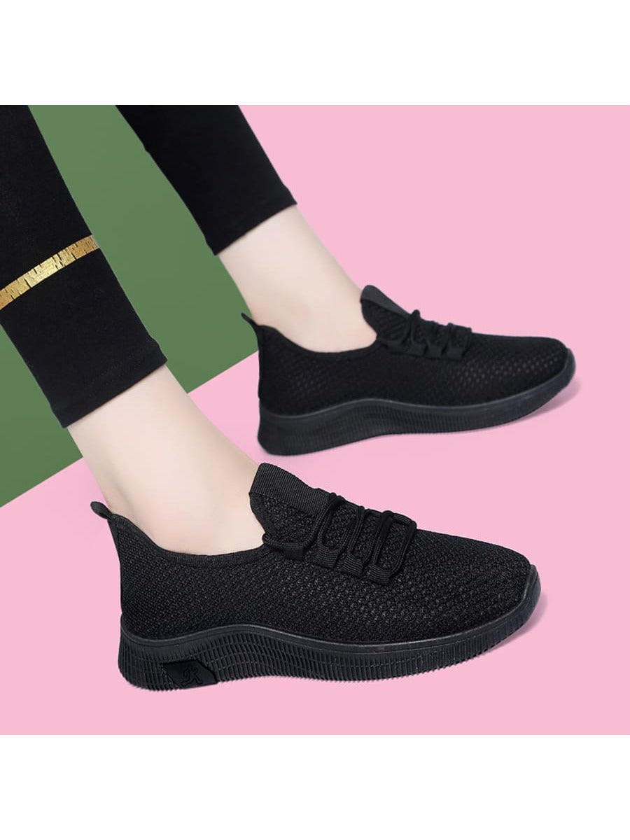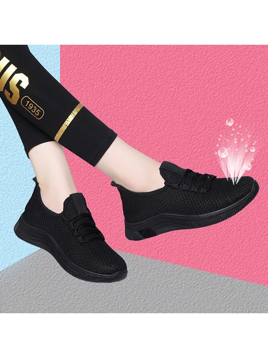 حذاء نسائي صيفي مسامي بشبكة تنفس، حذاء رياضة نسائي عارض بنعل ناعم، مثالي للجري على الطرقات، خفيف الوزن، لون أسود، جزء واحد