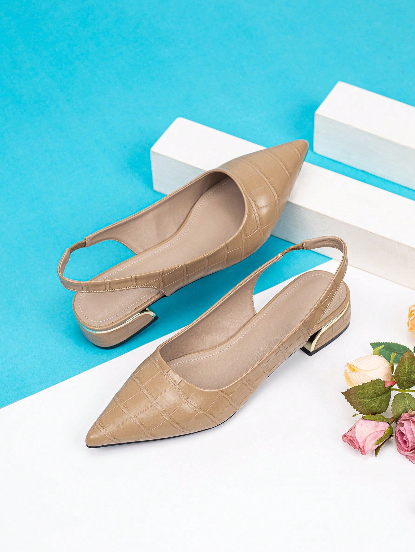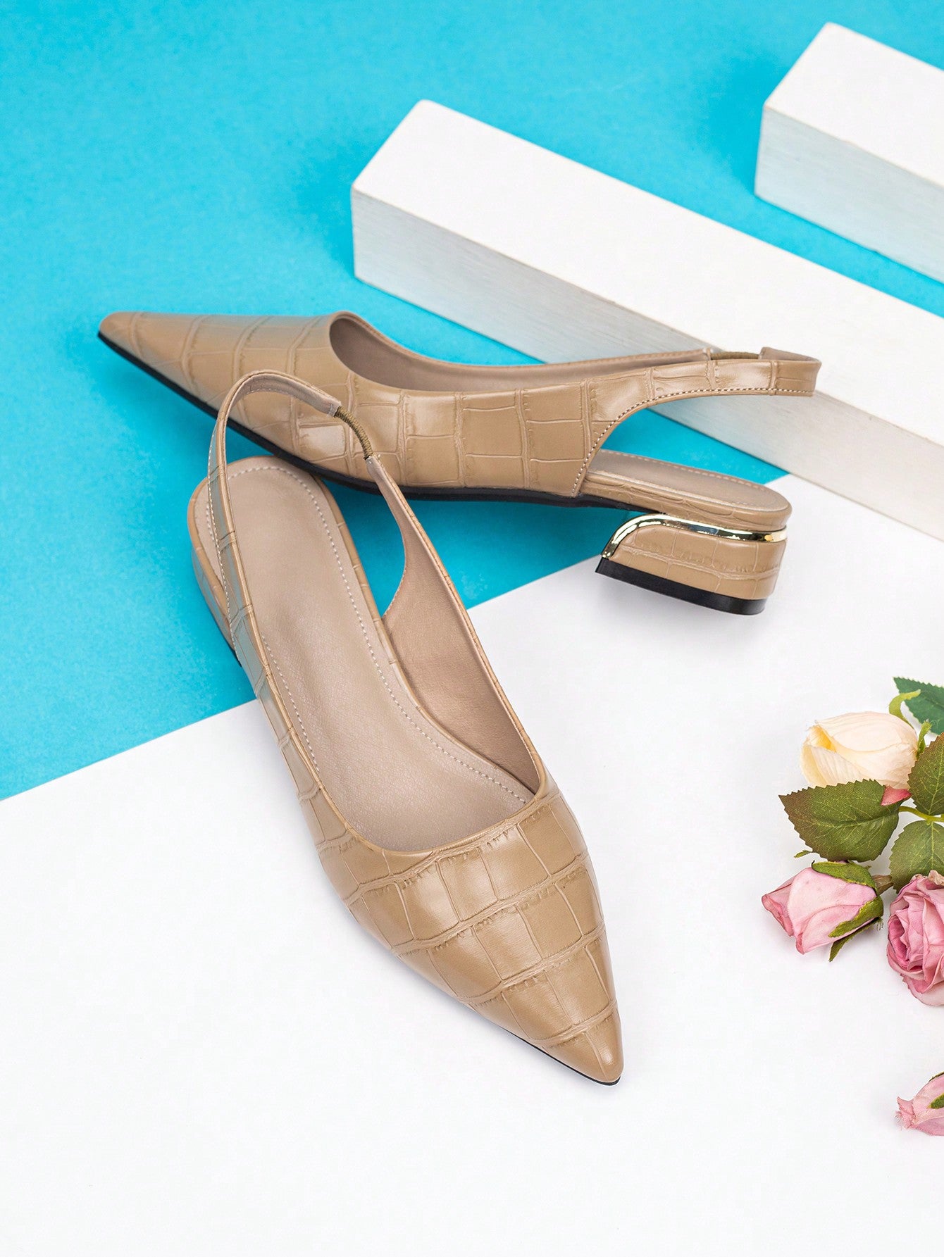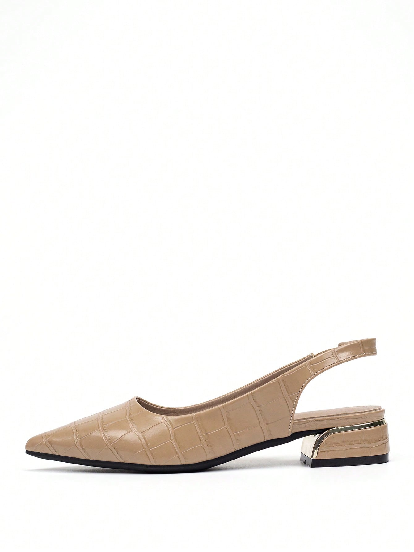 حذاء نسائي مسطح بأصابع مدببة مفتوح من الخلف، كعب عريض ونعل سميك