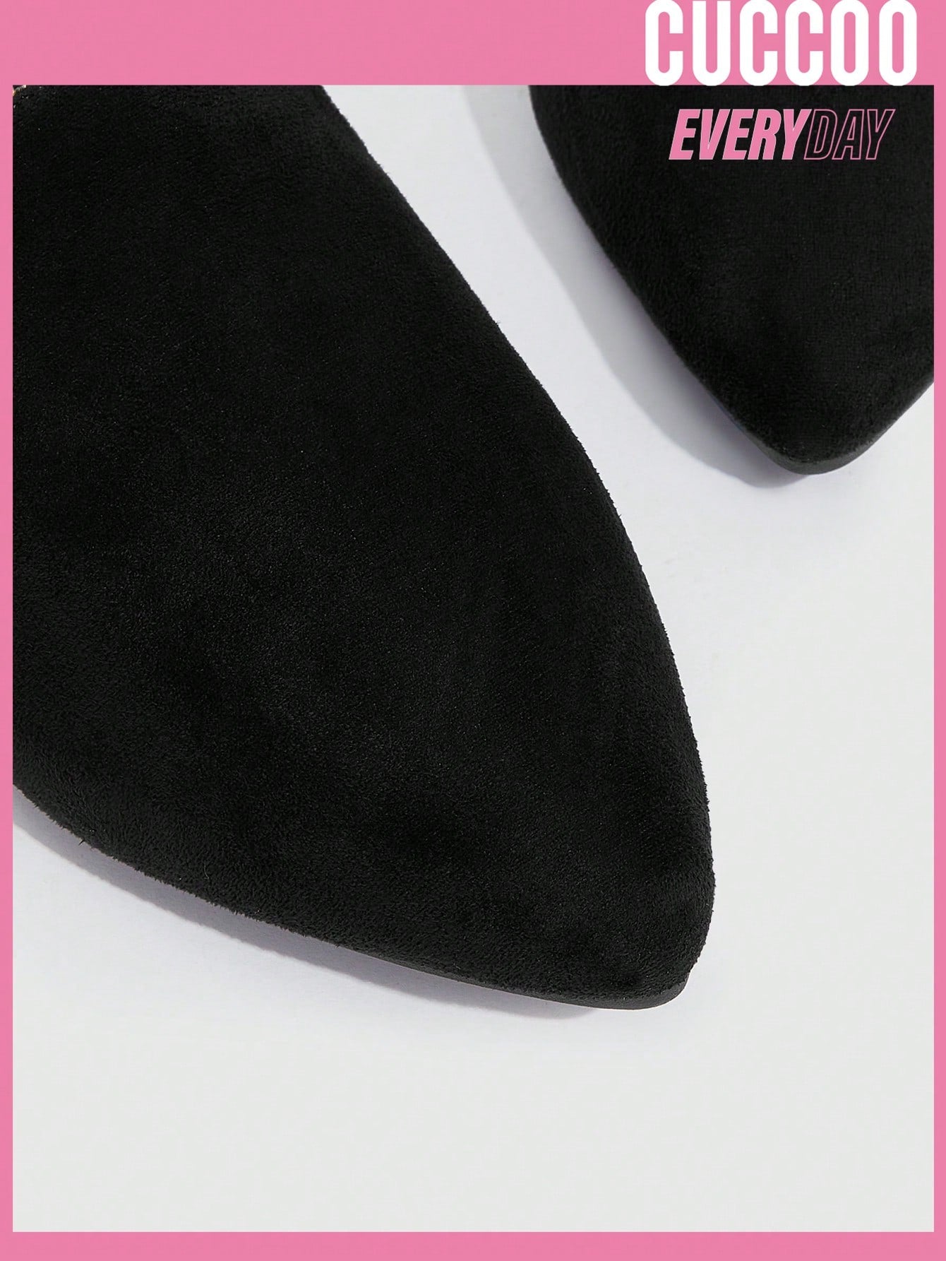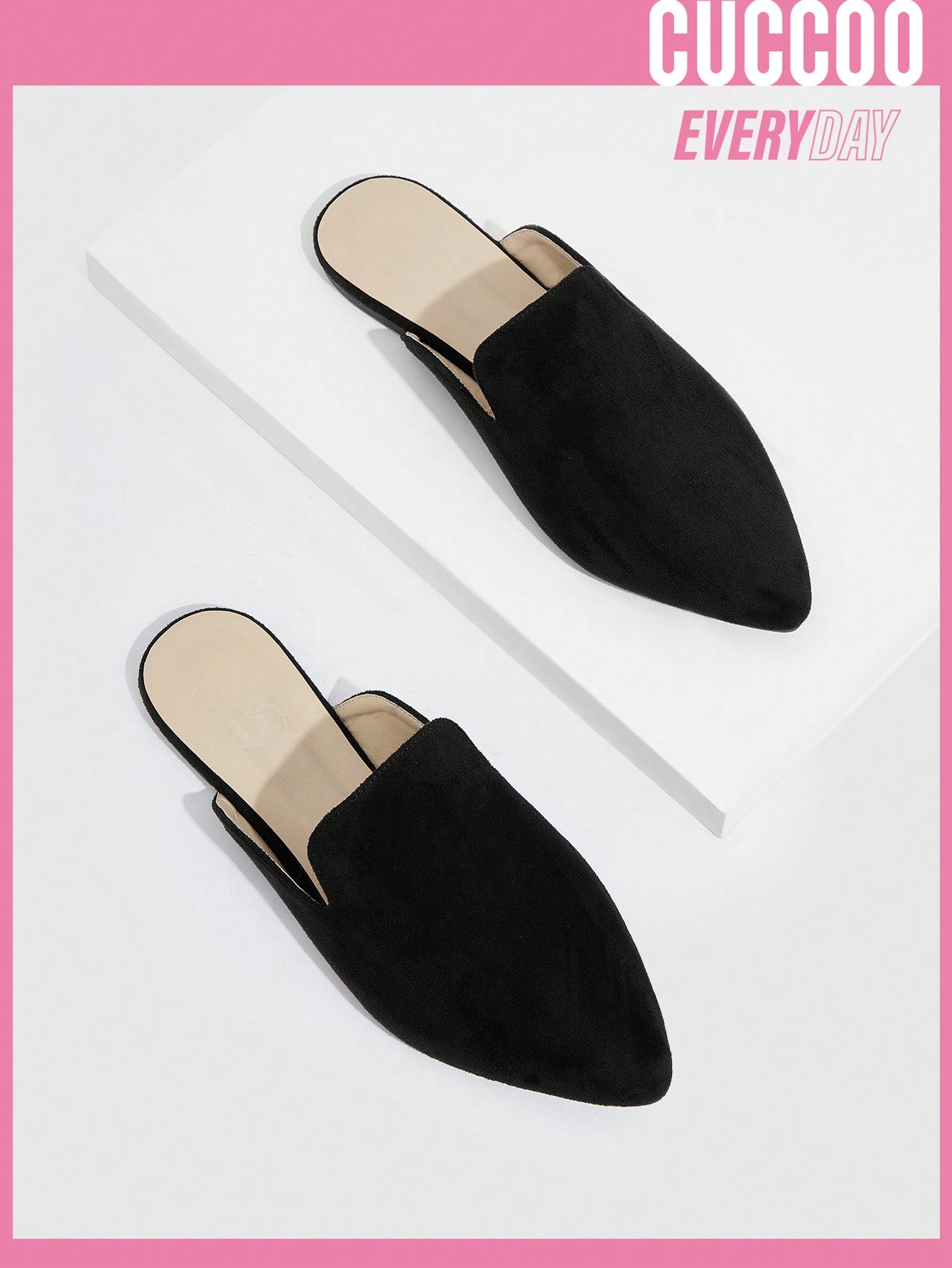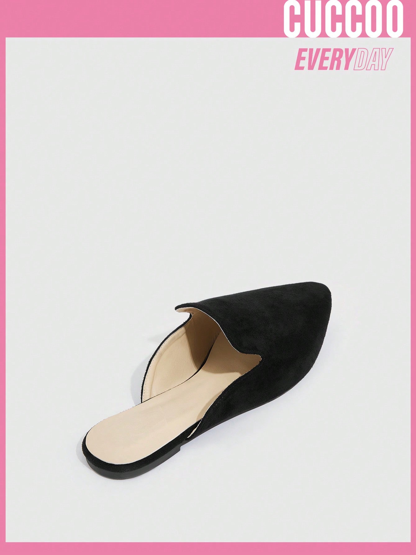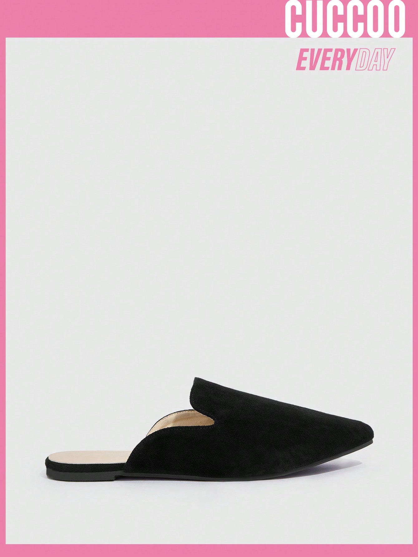 حذاء نسائي مسطح منزلي مريح بمقدمة أصابع مقلمة بشكل عصري، شبشب جلدي اصطناعي أسود أنيق للربيع والصيف