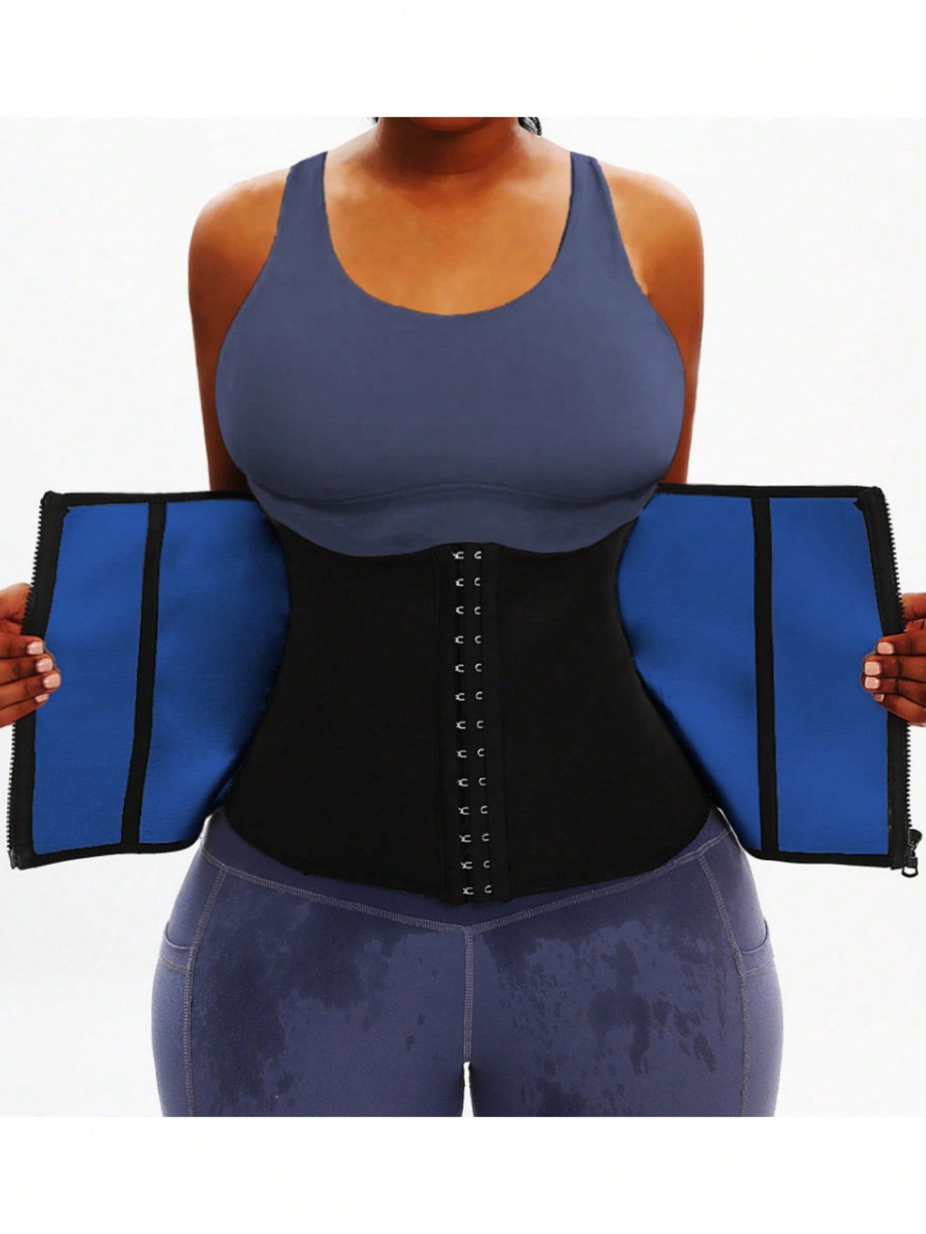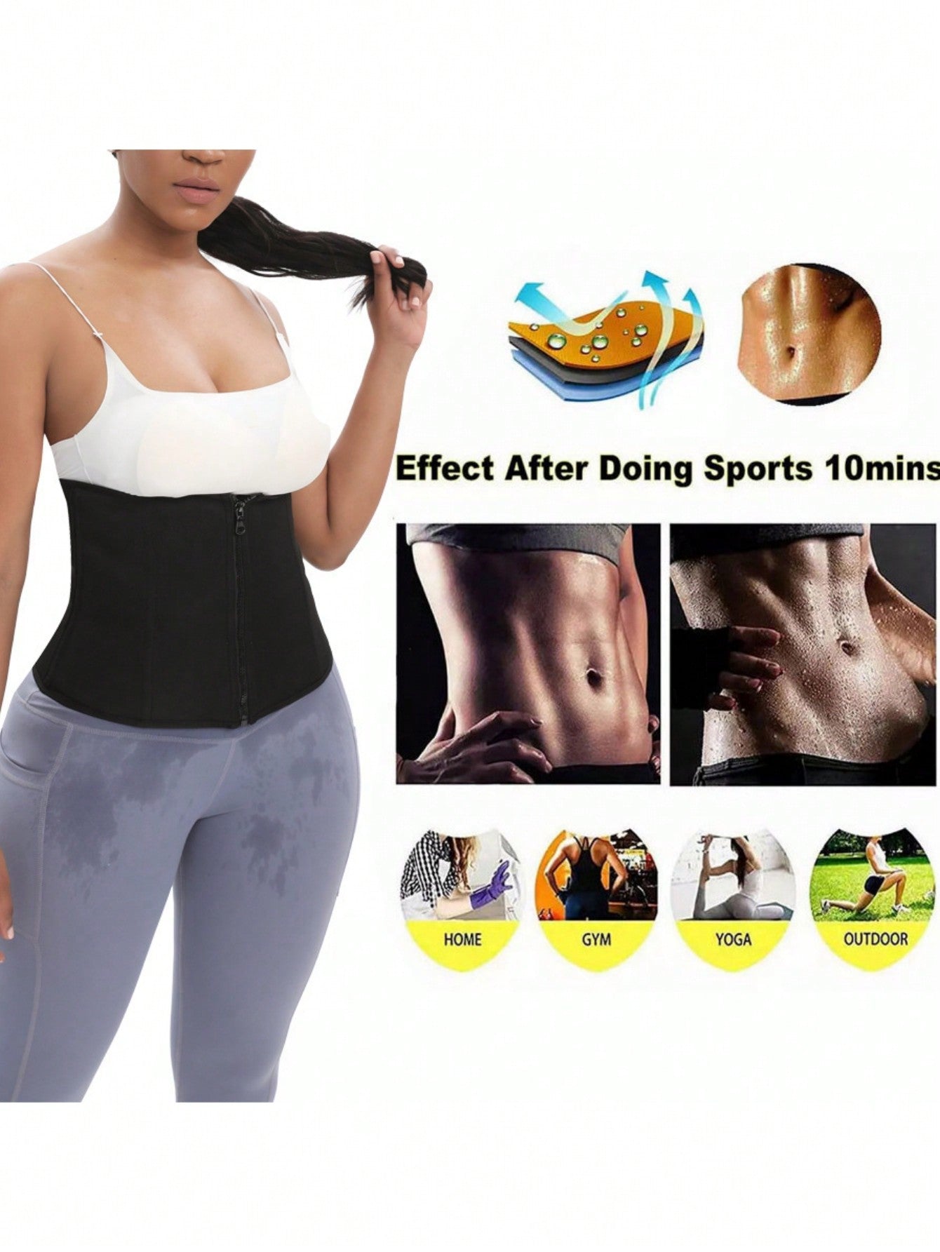 حزام رياضي خارجي قطعة واحدة ضاغط للخصر قابل للتعديل بإبزيم وسحاب، حزام خصر تعرق صيفي ساخن مع حامل داعم للتشكيل