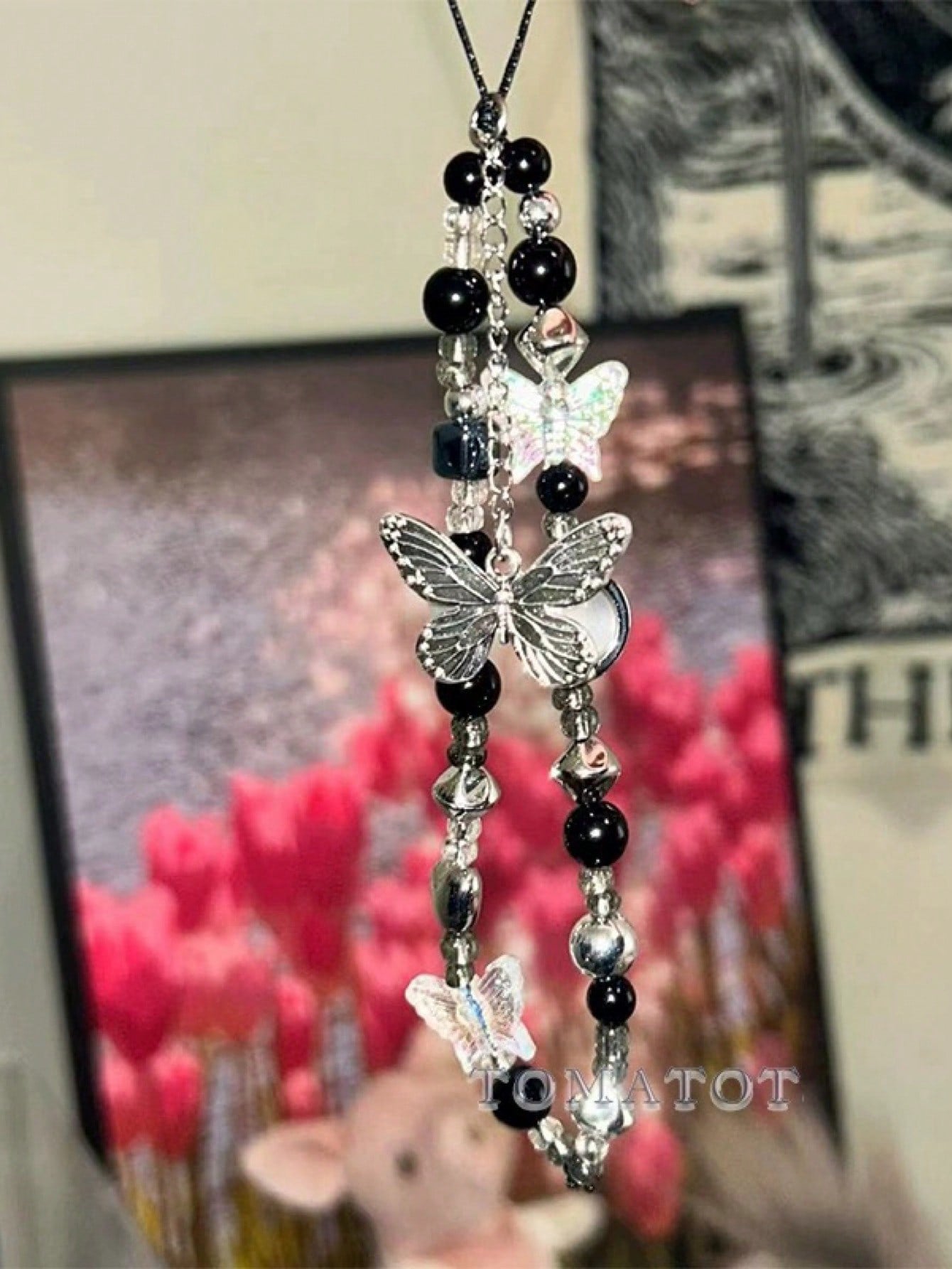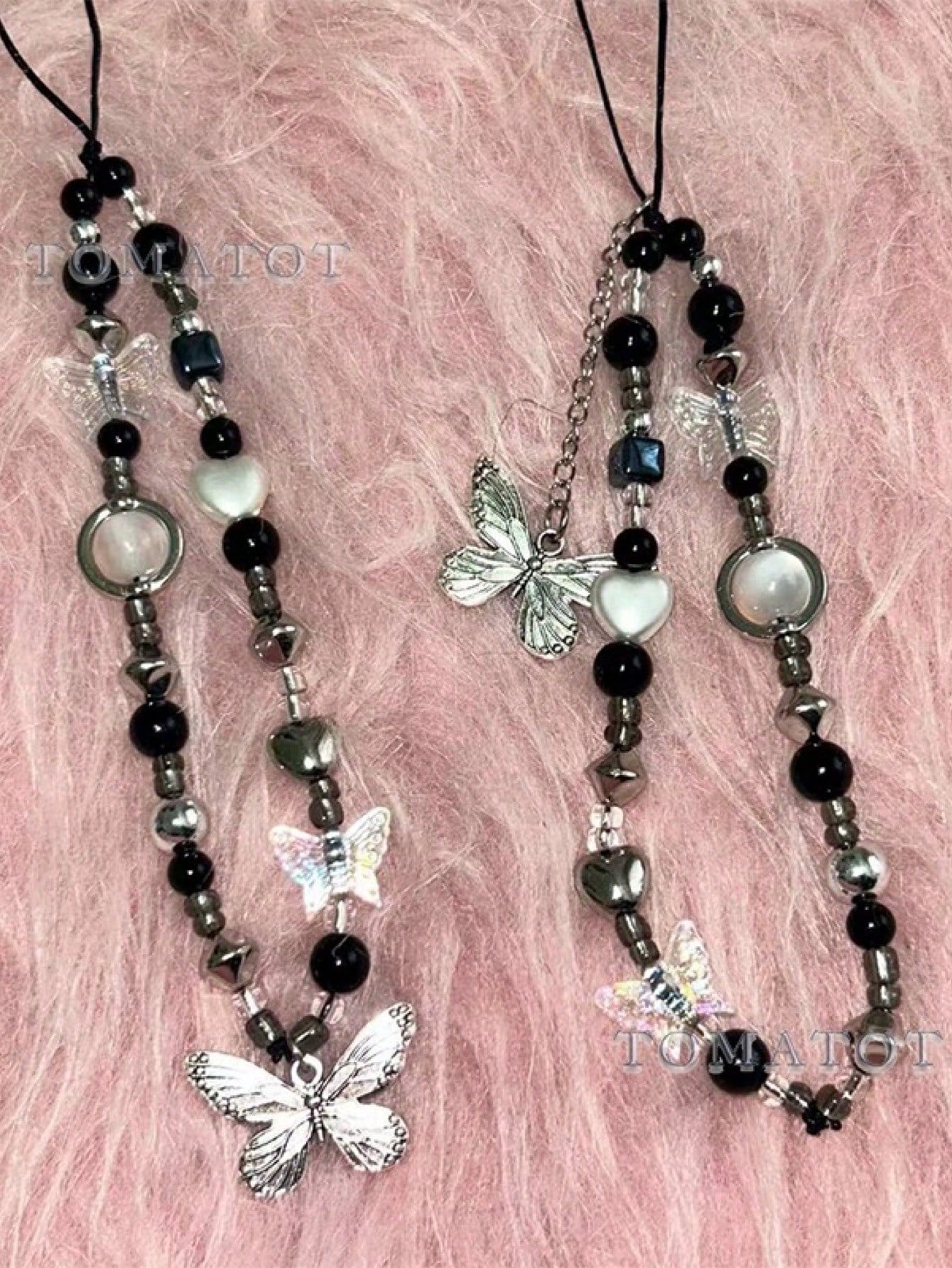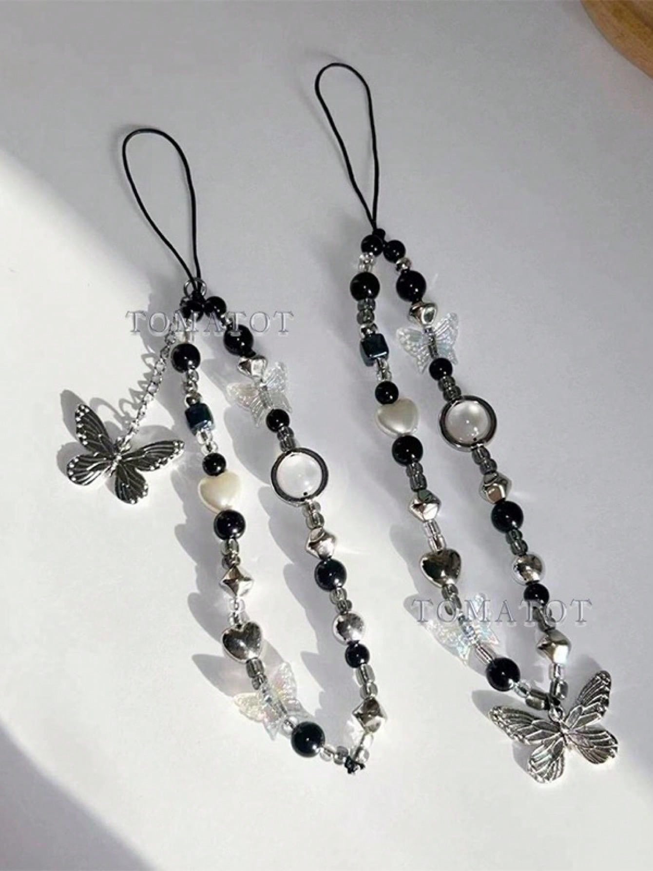 حزام هاتف مختصر أسود وأبيض على شكل فراشة بنمط كوري، حبل مربوط زخرفي بوهيمي، قلادة جراب تليفون عالمية