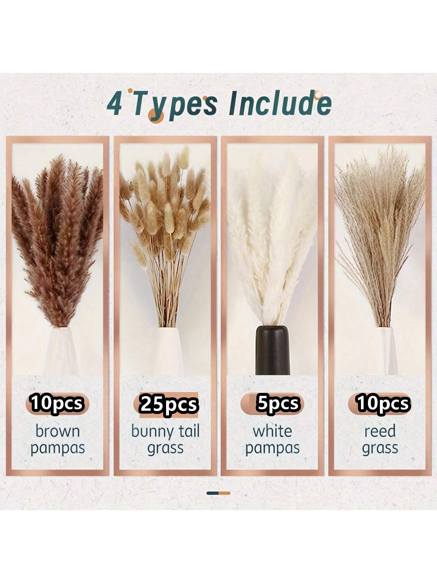 حزمة أعشاب بامباس العضوية الطبيعية المحفوظة 50 حبة - فن زهري لديكور المنزل البوهيمي والزفاف