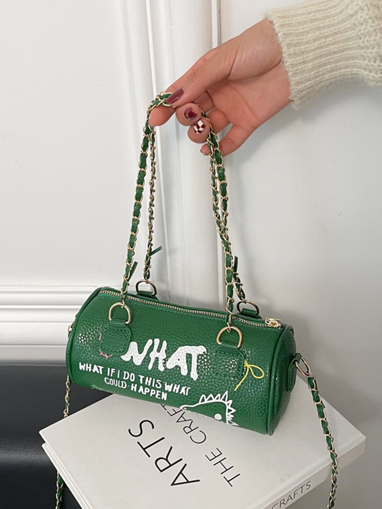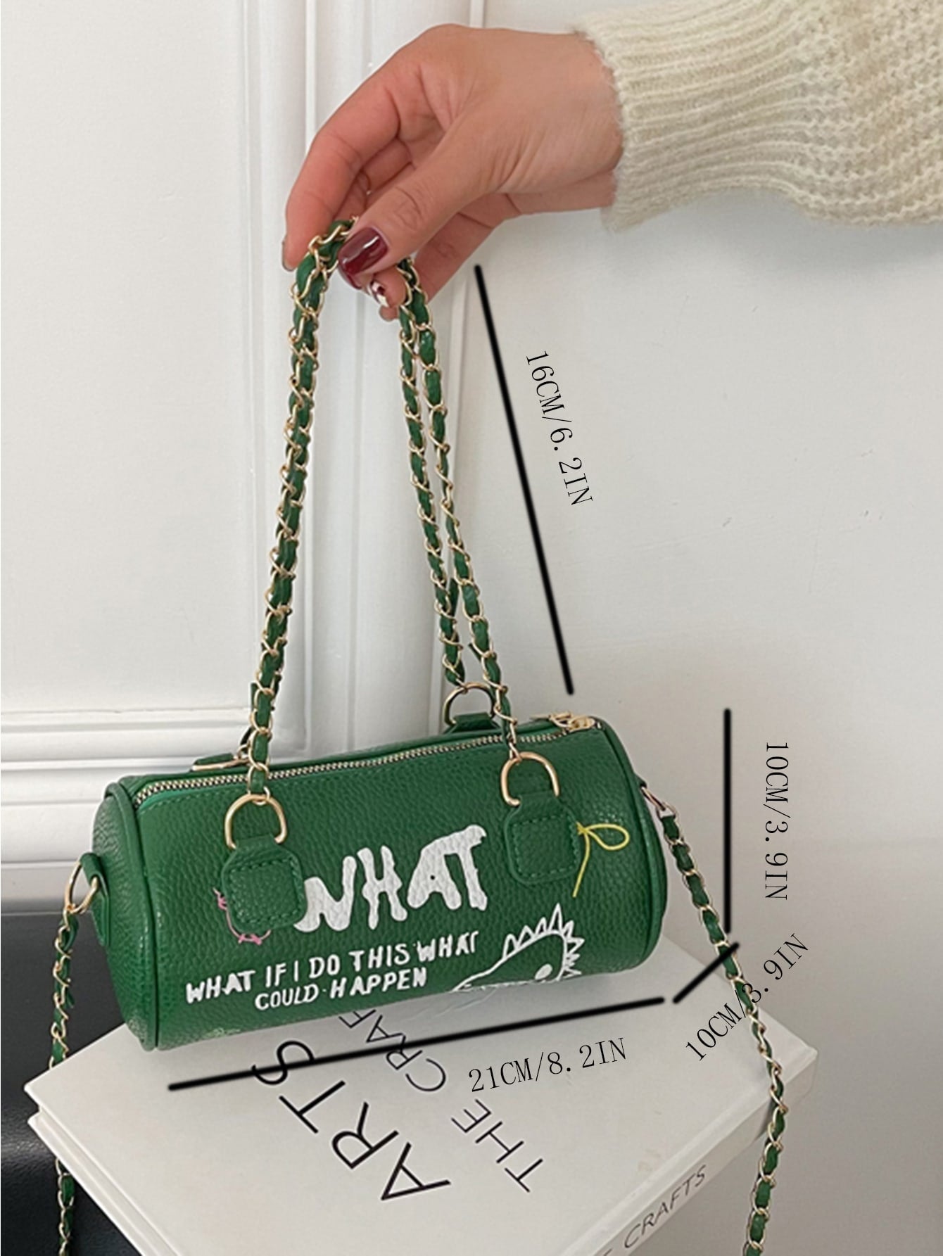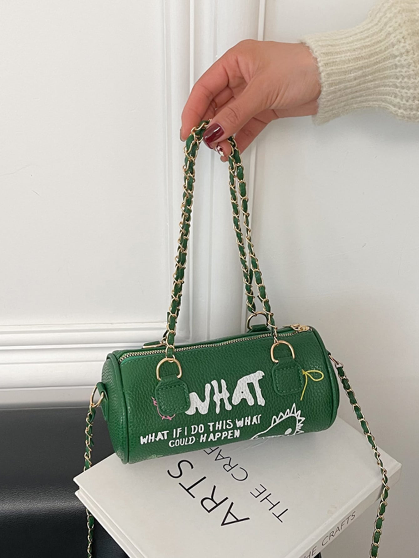 حقيبة اسطواني ذو سطح مزخرف بجرافيك عبارة