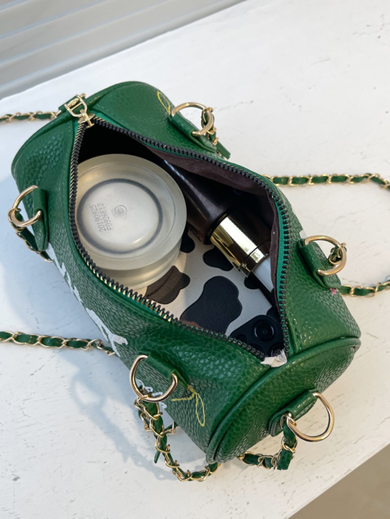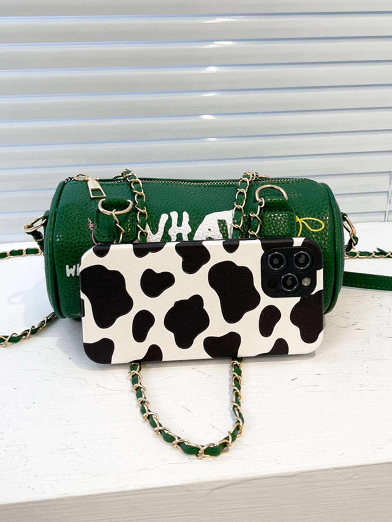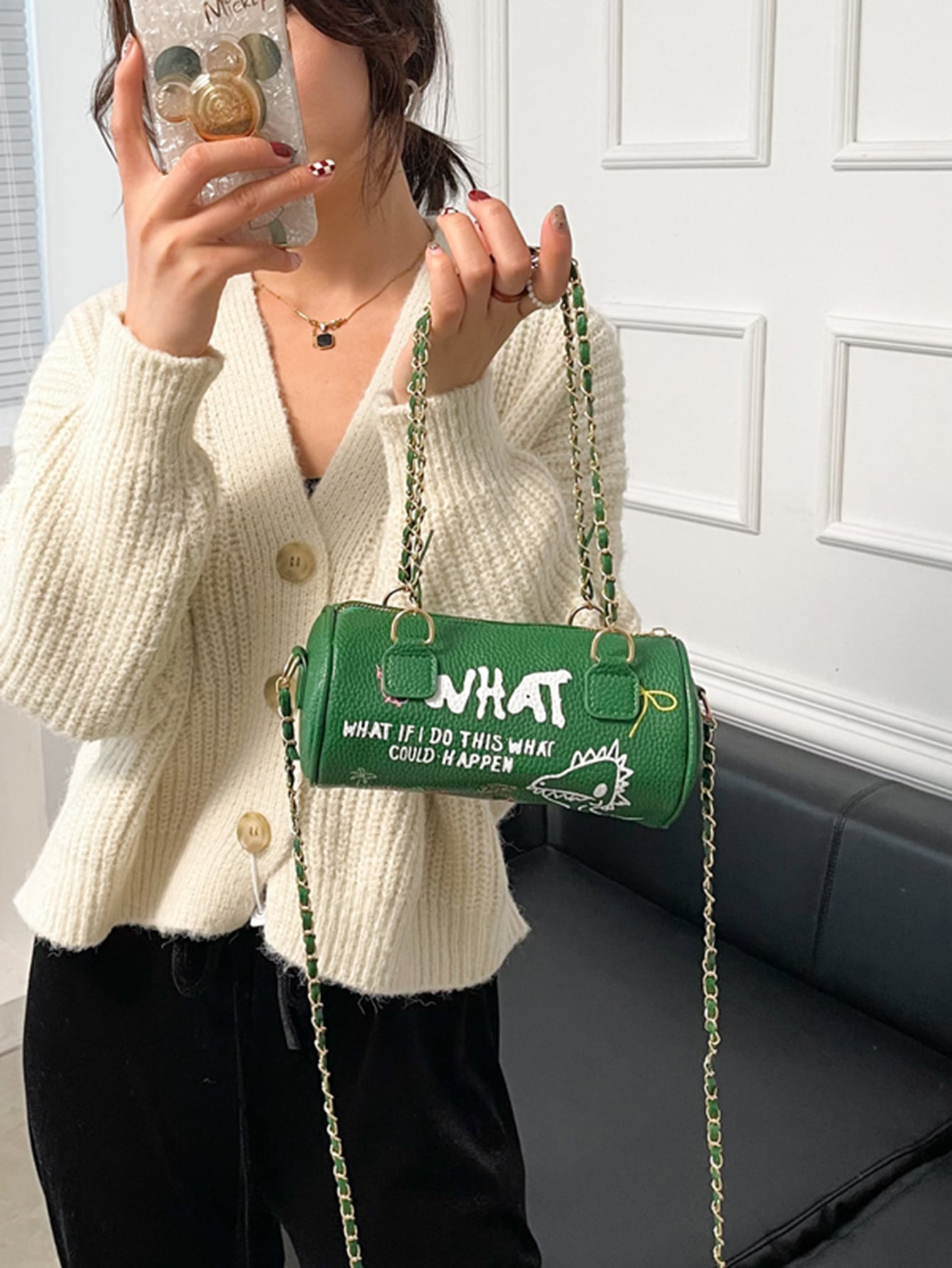 حقيبة اسطواني ذو سطح مزخرف بجرافيك عبارة