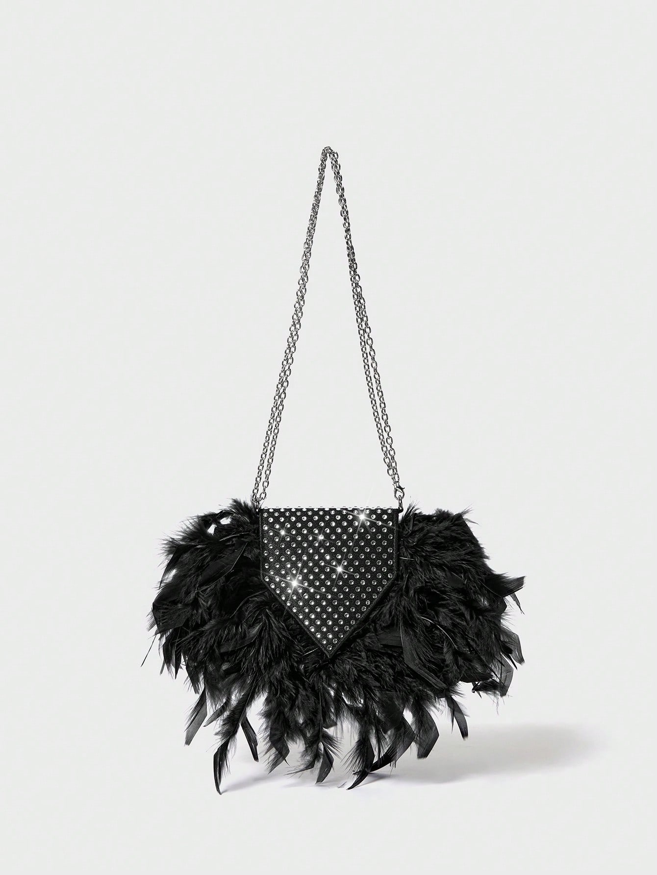 حقيبة سهرة رسمية أنيقة مزينة بالكريستال وريش صناعي للسيدات