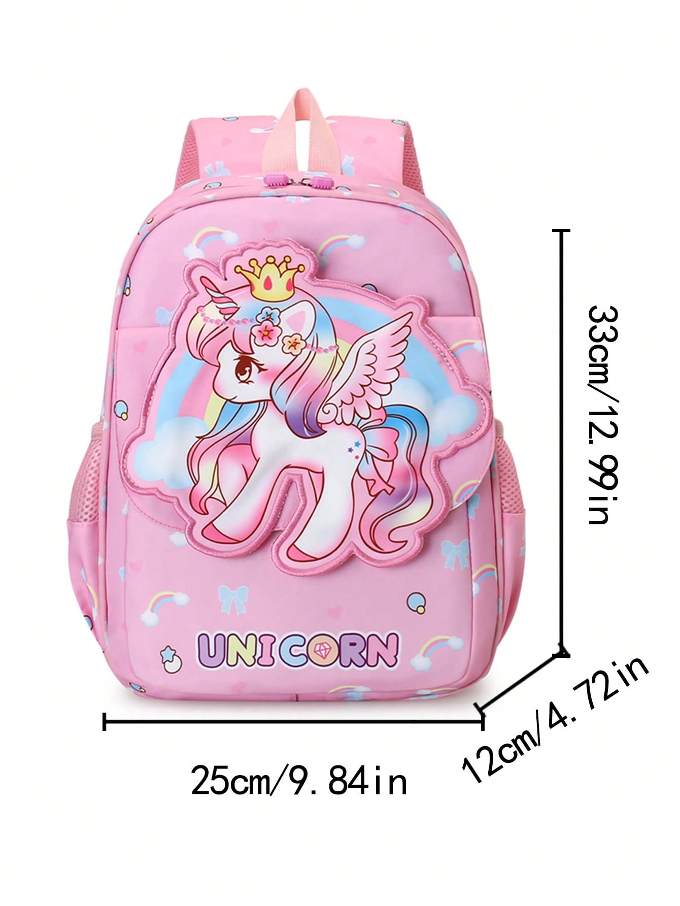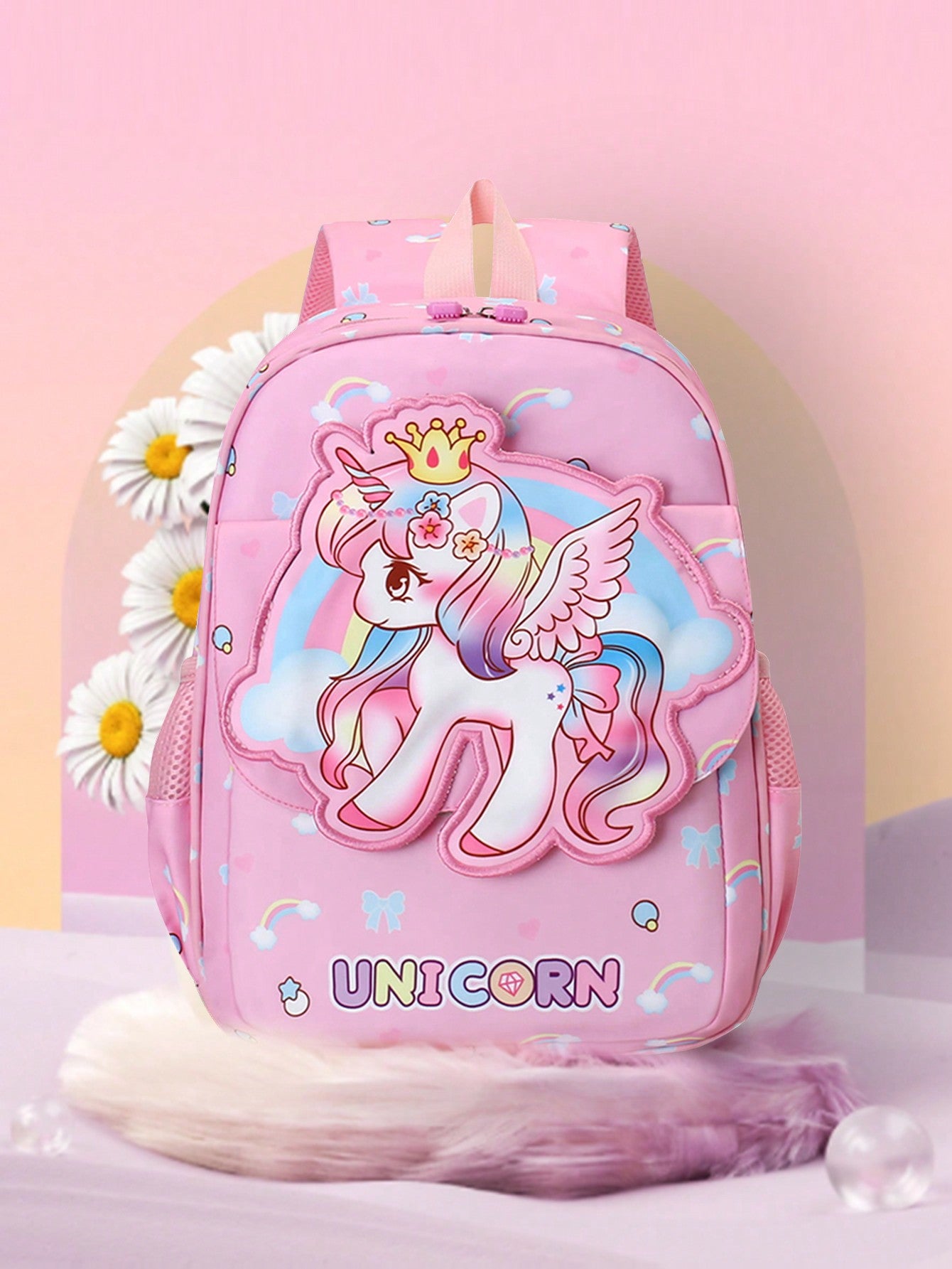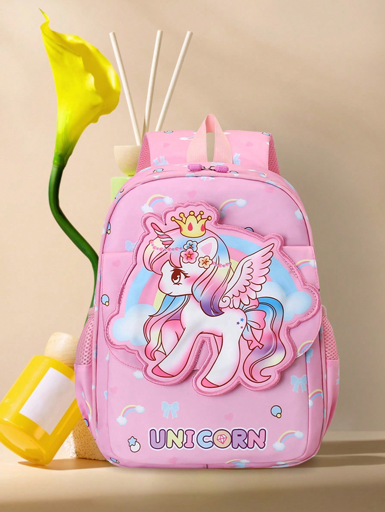 حقيبة ظهر للروضة ذات نمط حصان وردي صغير مع سوستة إغلاق قطعة واحدة للفتيات الصغيرات