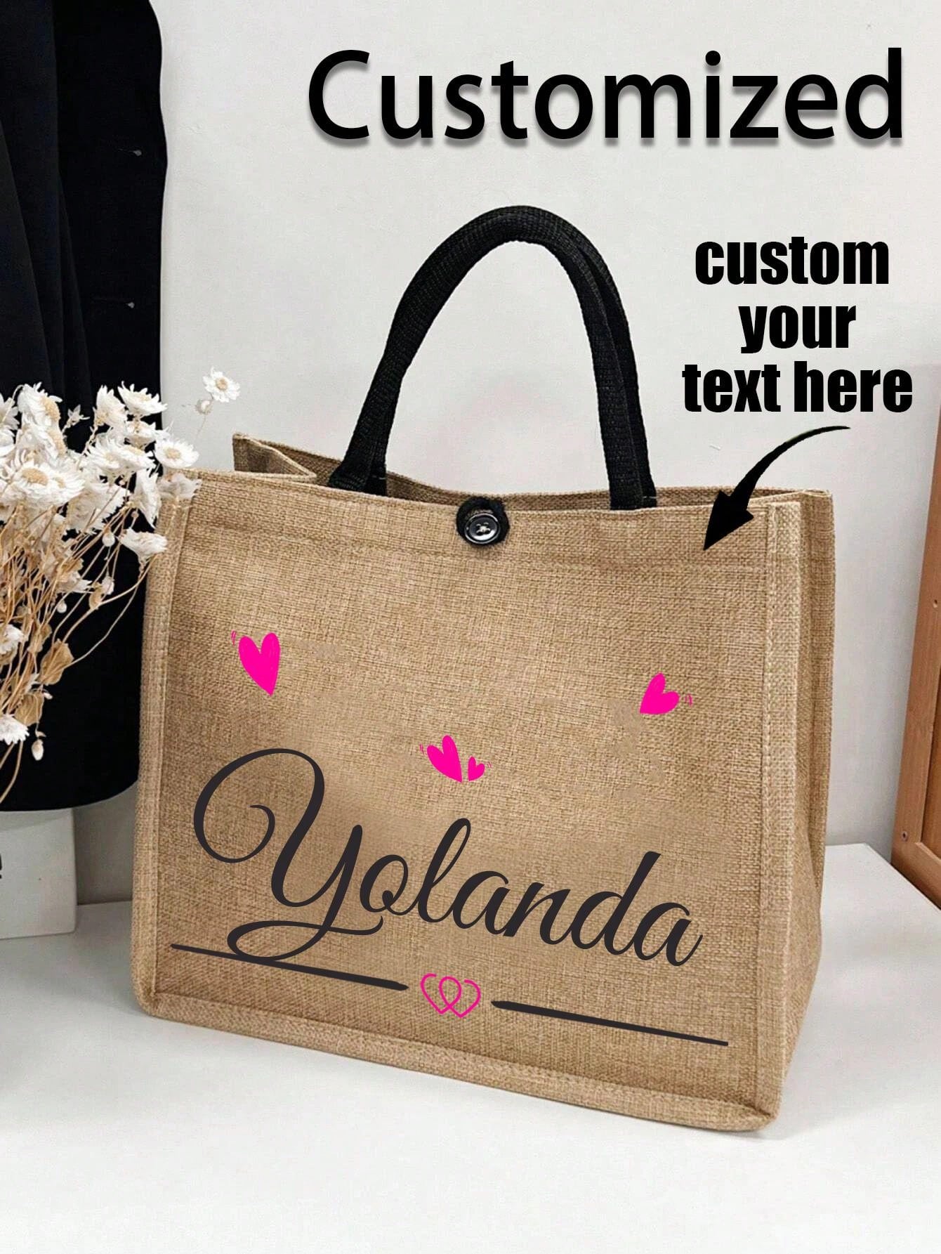 حقيبة كتان مخصصة واحدة تصميمك الخاص لحقيبة كتف نسائية للتسوق