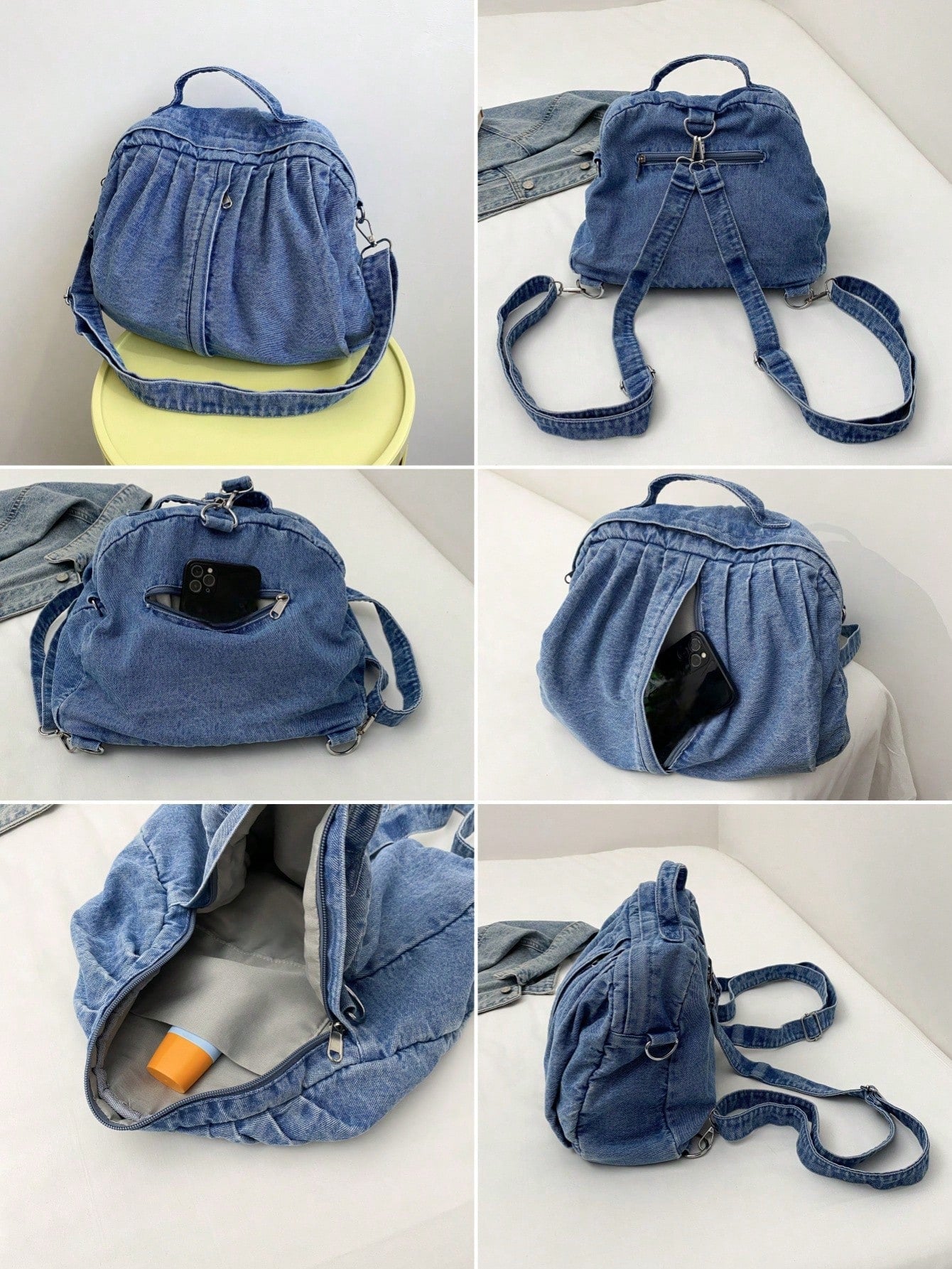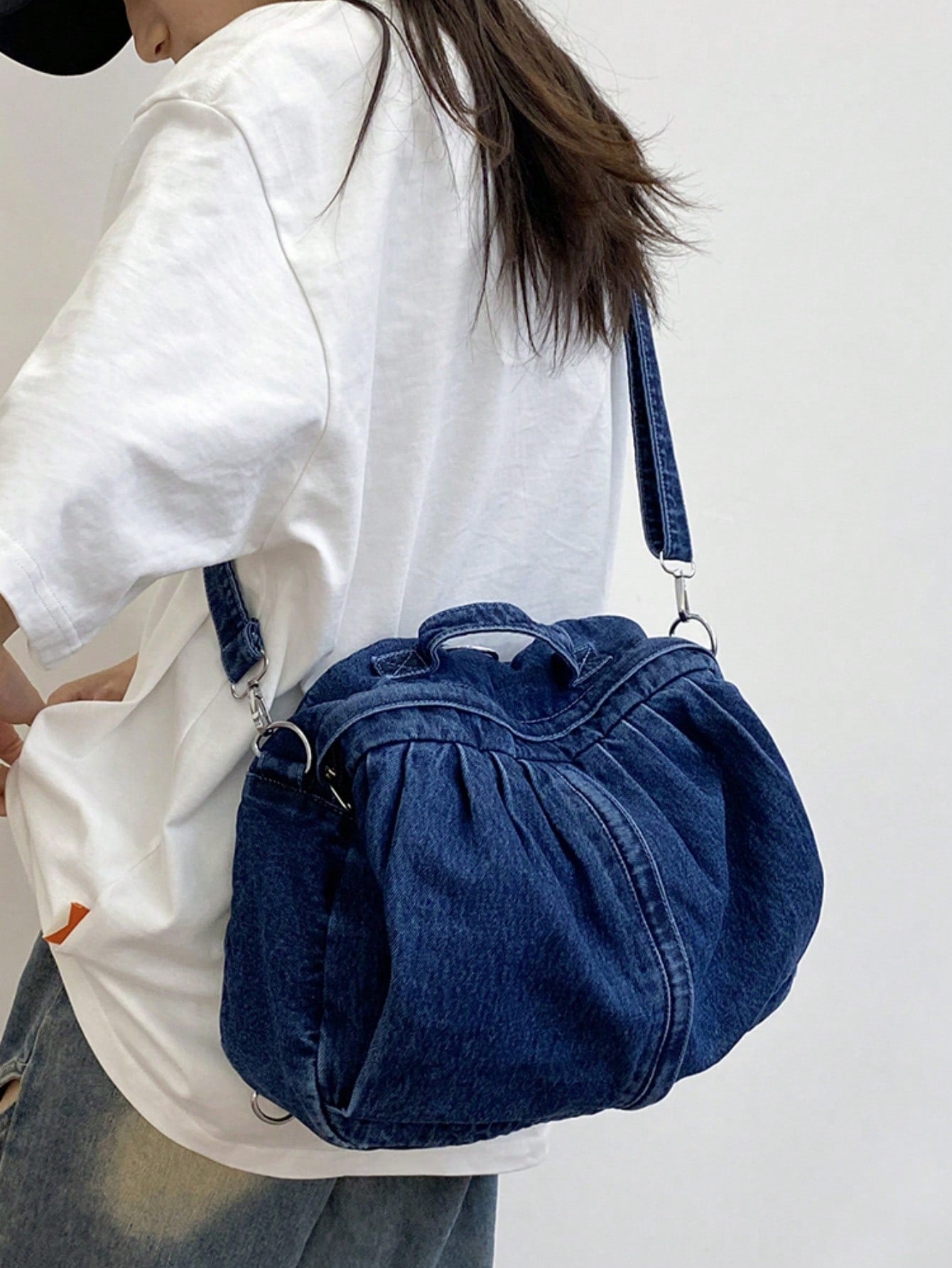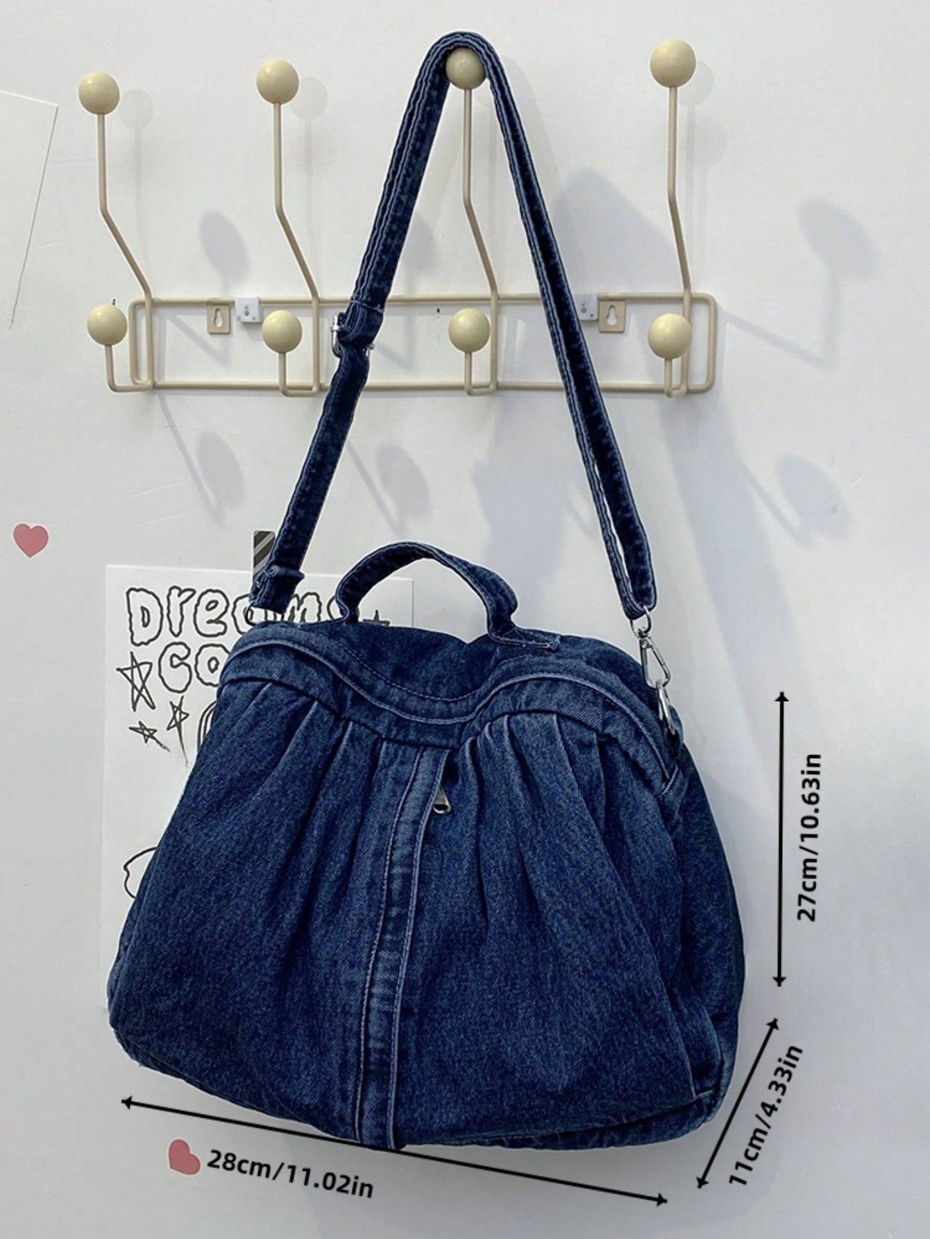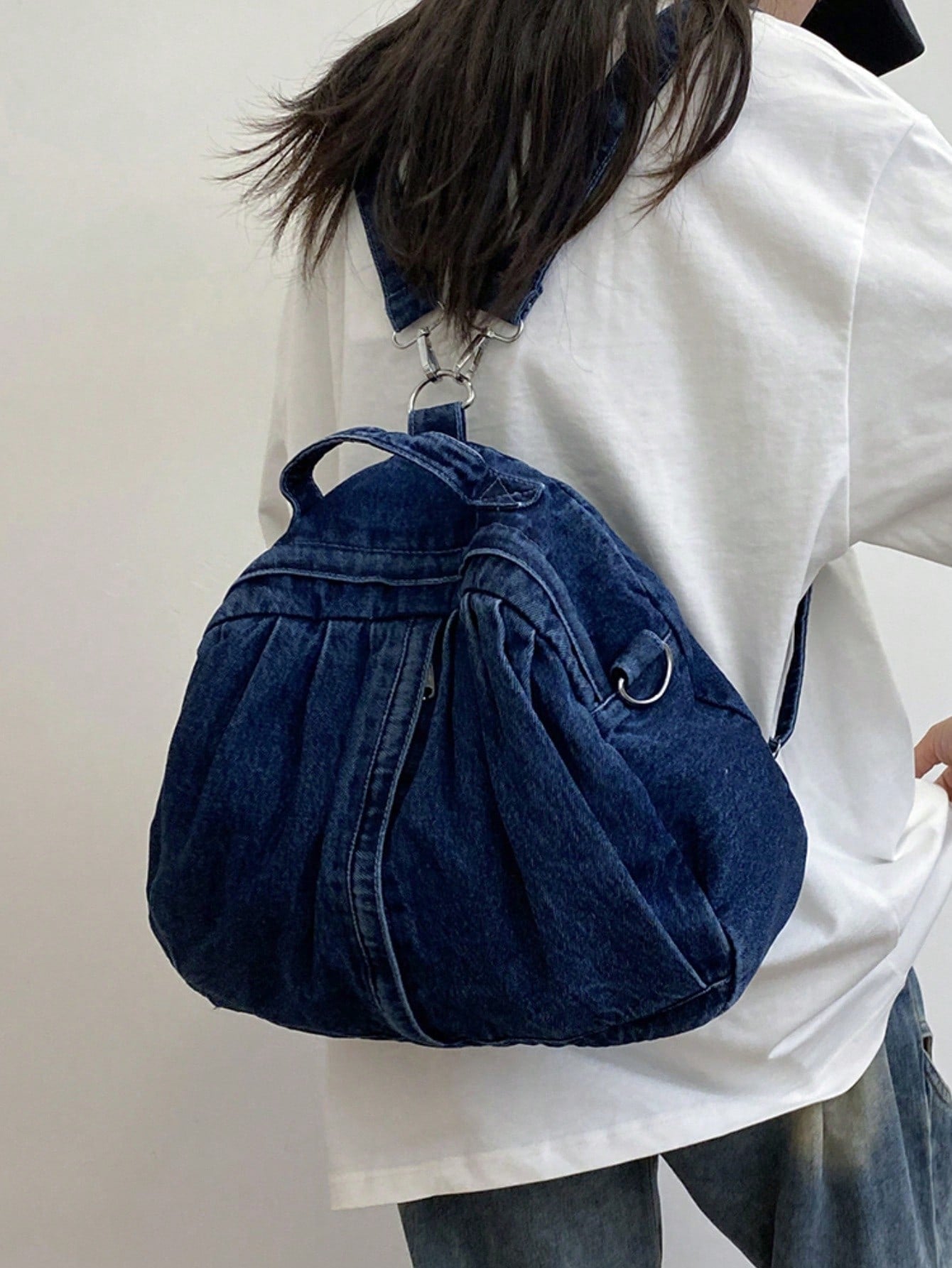 حقيبة كتف صدفية من الدينيم قابلة للطي المحمولة وأنيقة، يمكن ارتداؤها كحقيبة كتف وحقيبة كتف مزدوجة