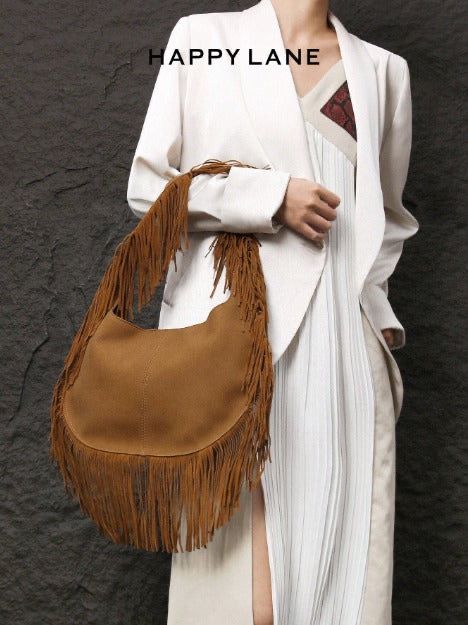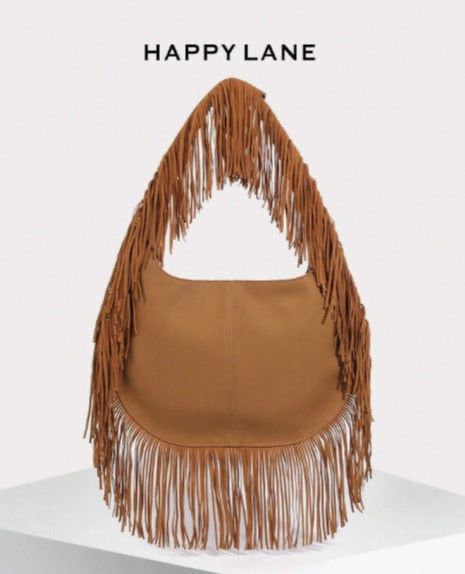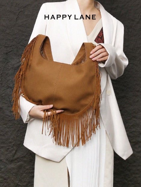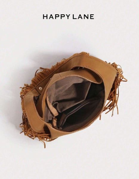حقيبة كتف مزينة بالشراريب بطراز بوهيمي للنساء
