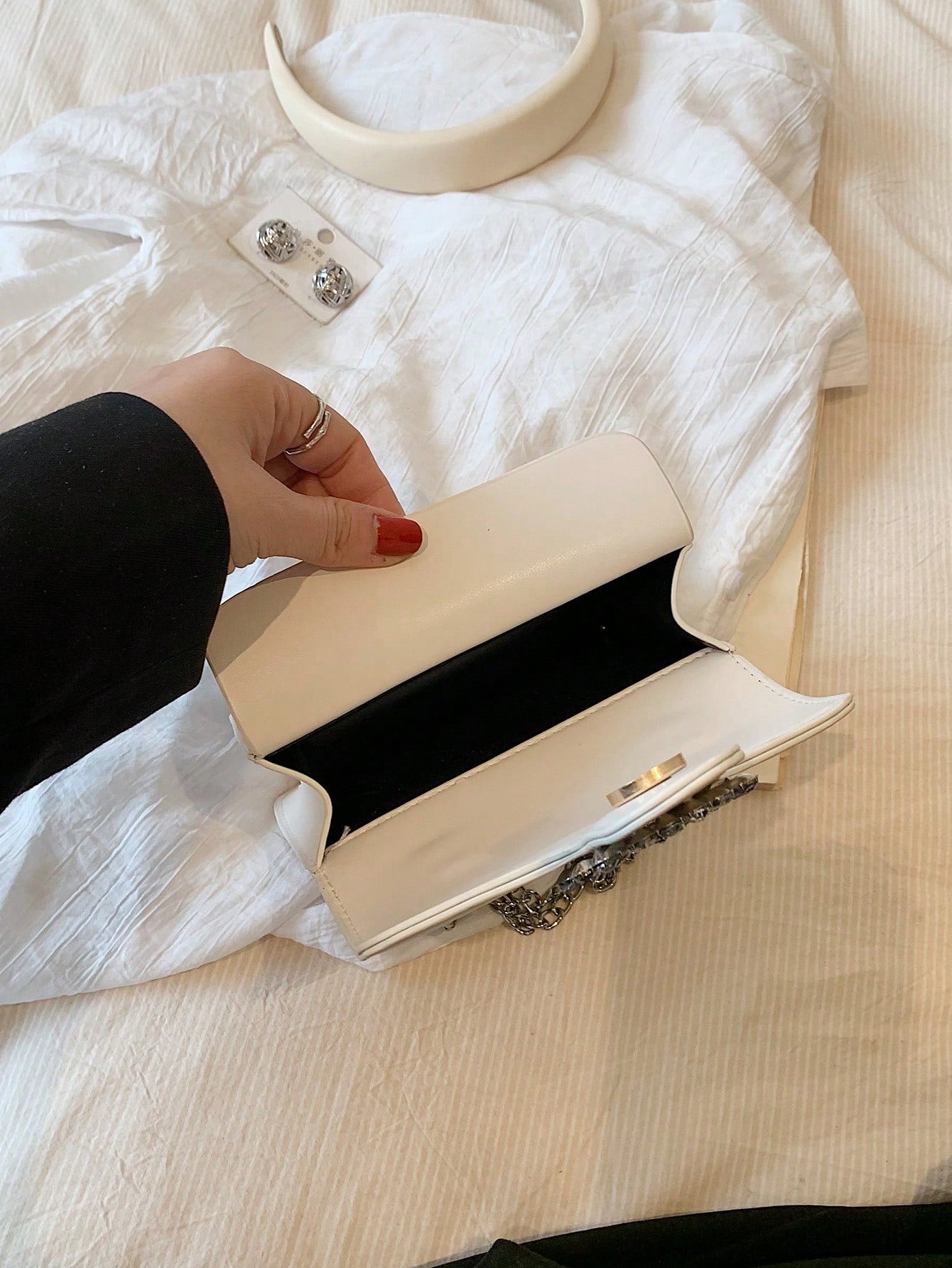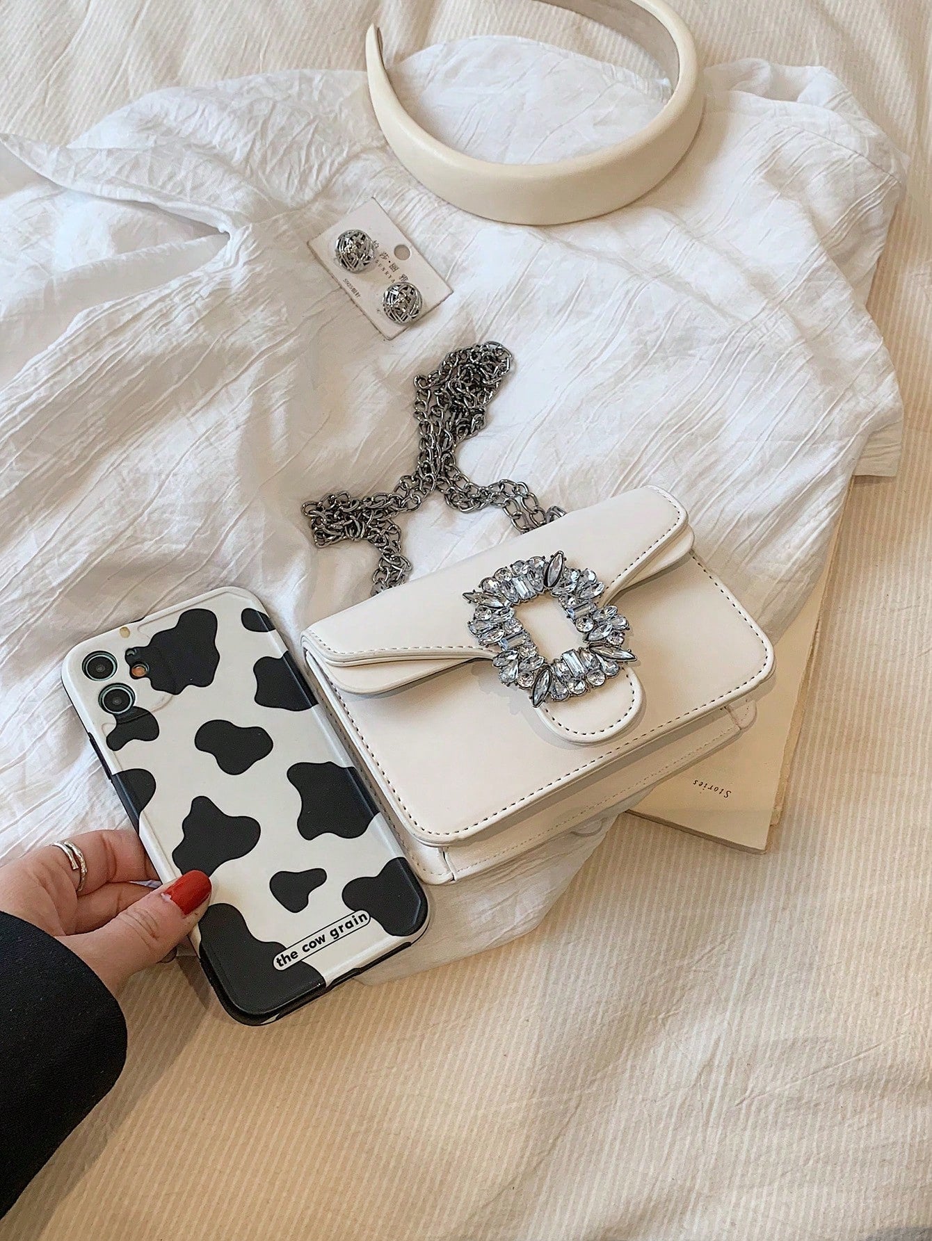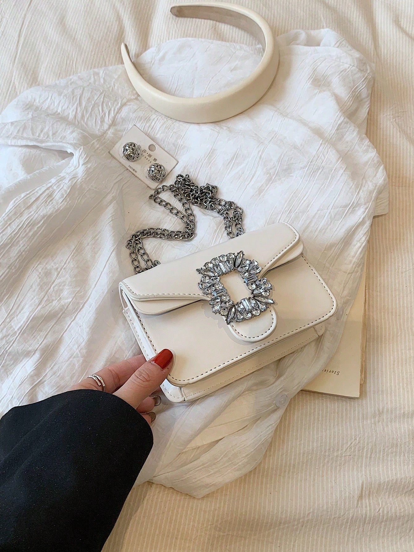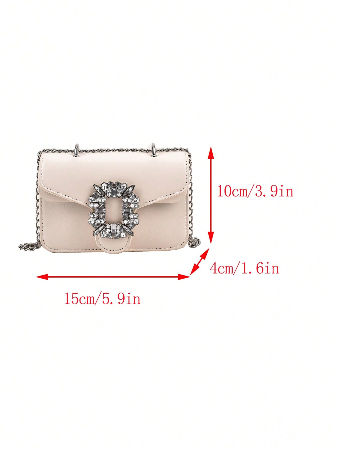حقيبة كتف مصغرة مزينة بالراين، راب موضة PU مع حزام سلسلة معدني كلاتش للنساء