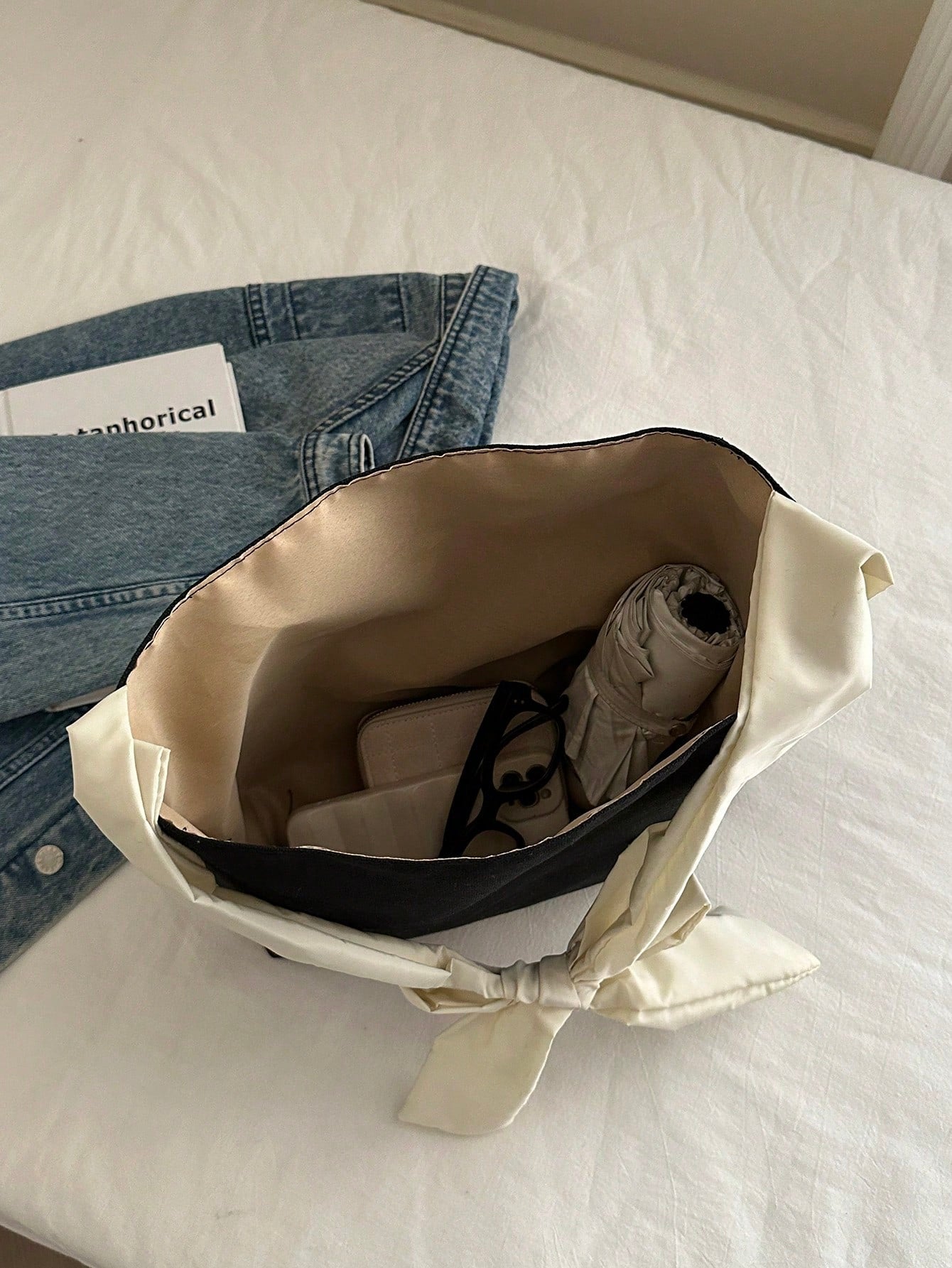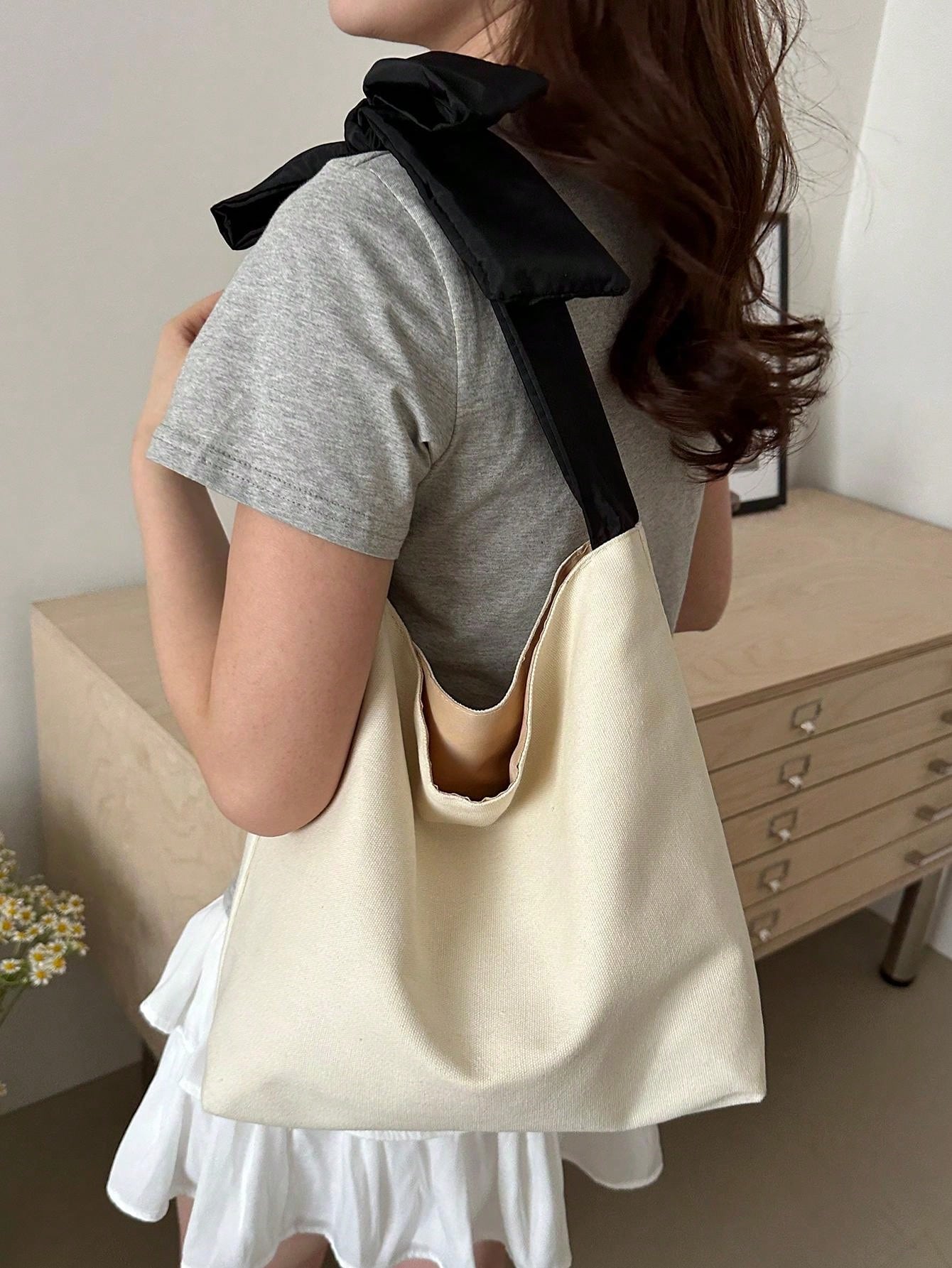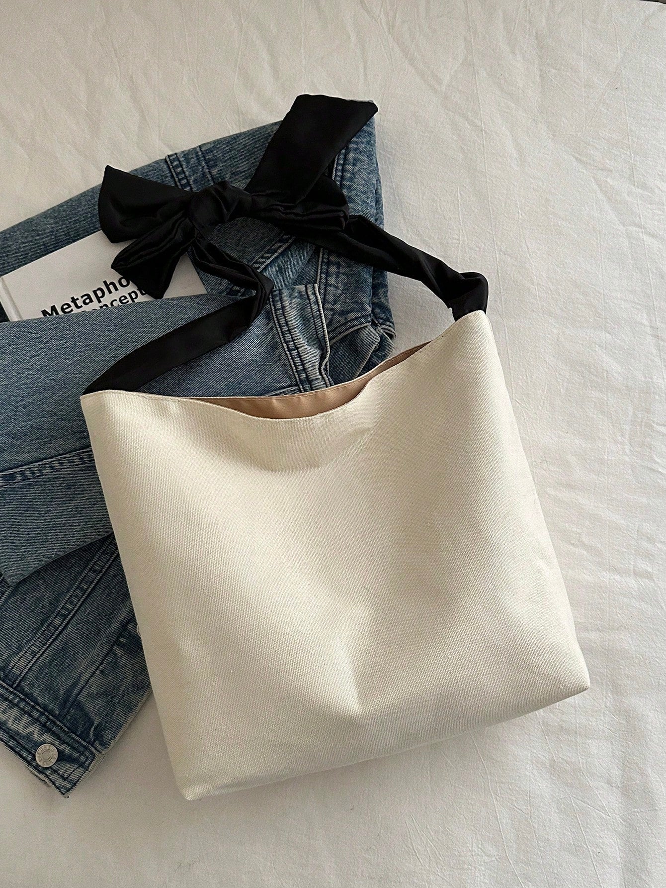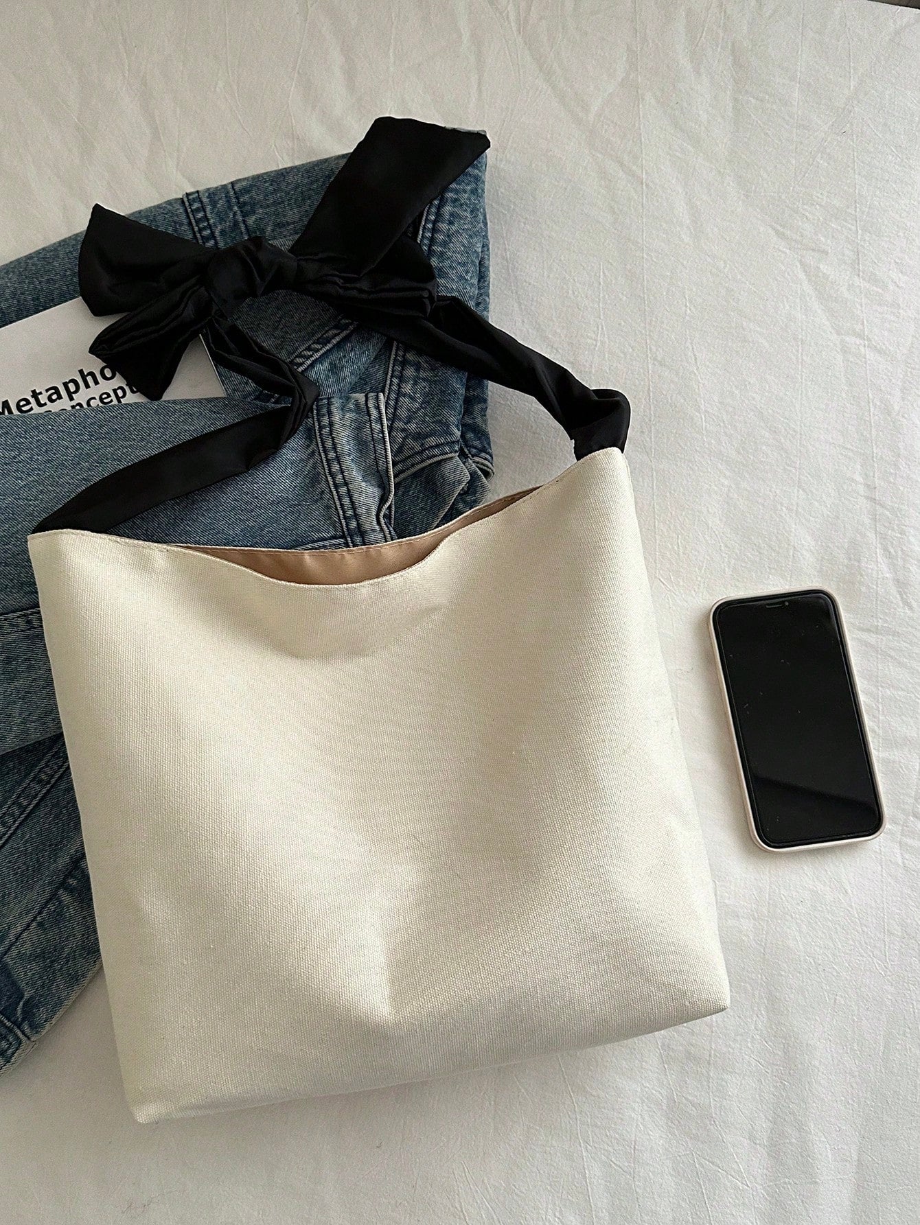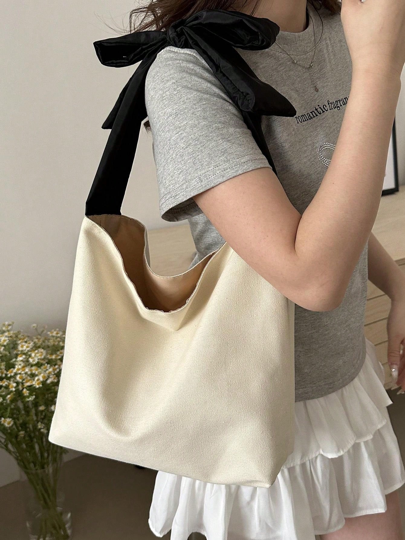حقيبة كتف من القماش الكانفاس، صندوق يد بشكل عقدة الفراشة لطيف، مناسبة للمدرسة والعمل والمواعيد، حقيبة نسائية بأسلوب الحد الأدنى