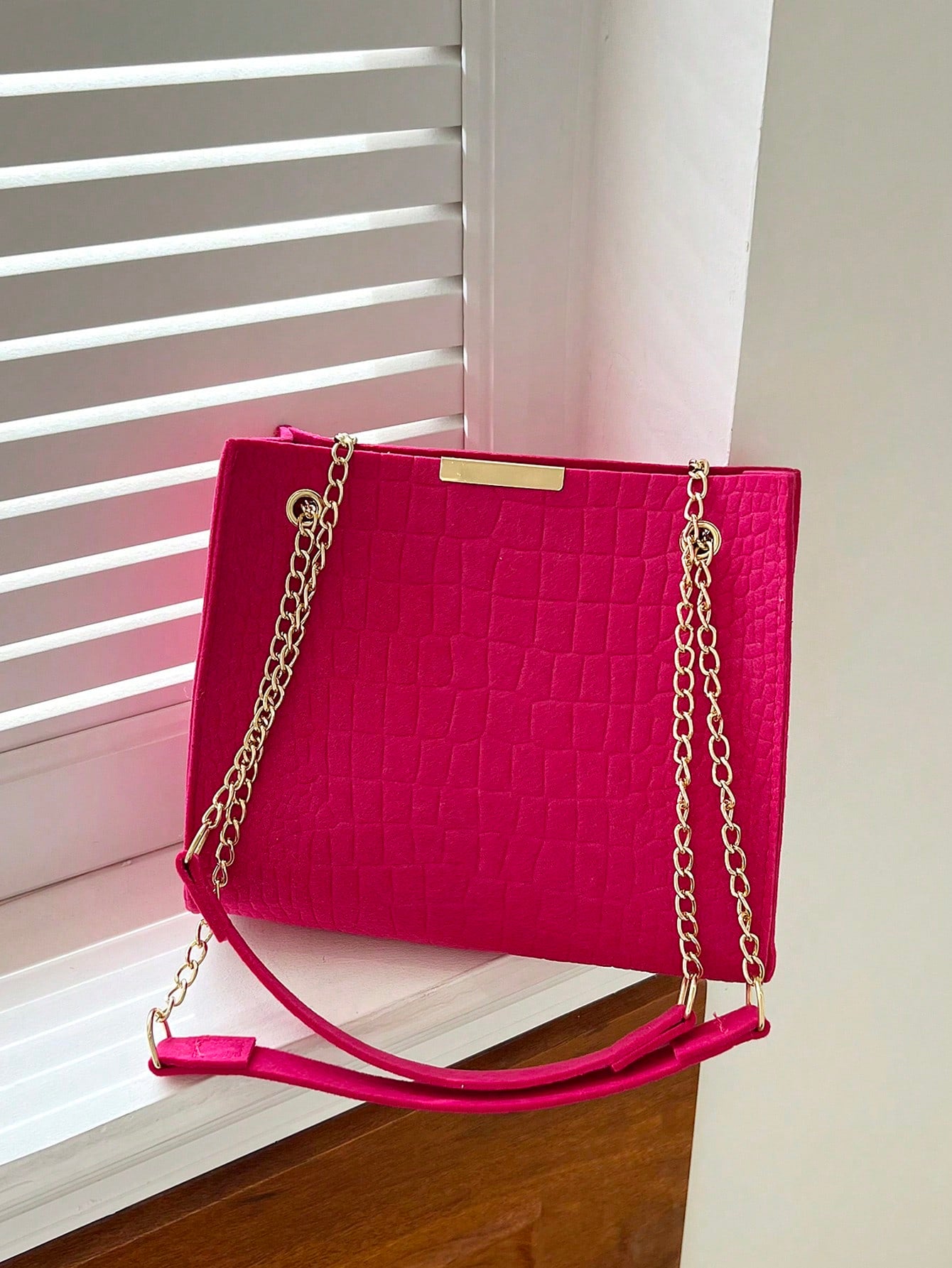 حقيبة مربعة بنقش تمساح سلسلة جلد صناعي وردي نيون جبان