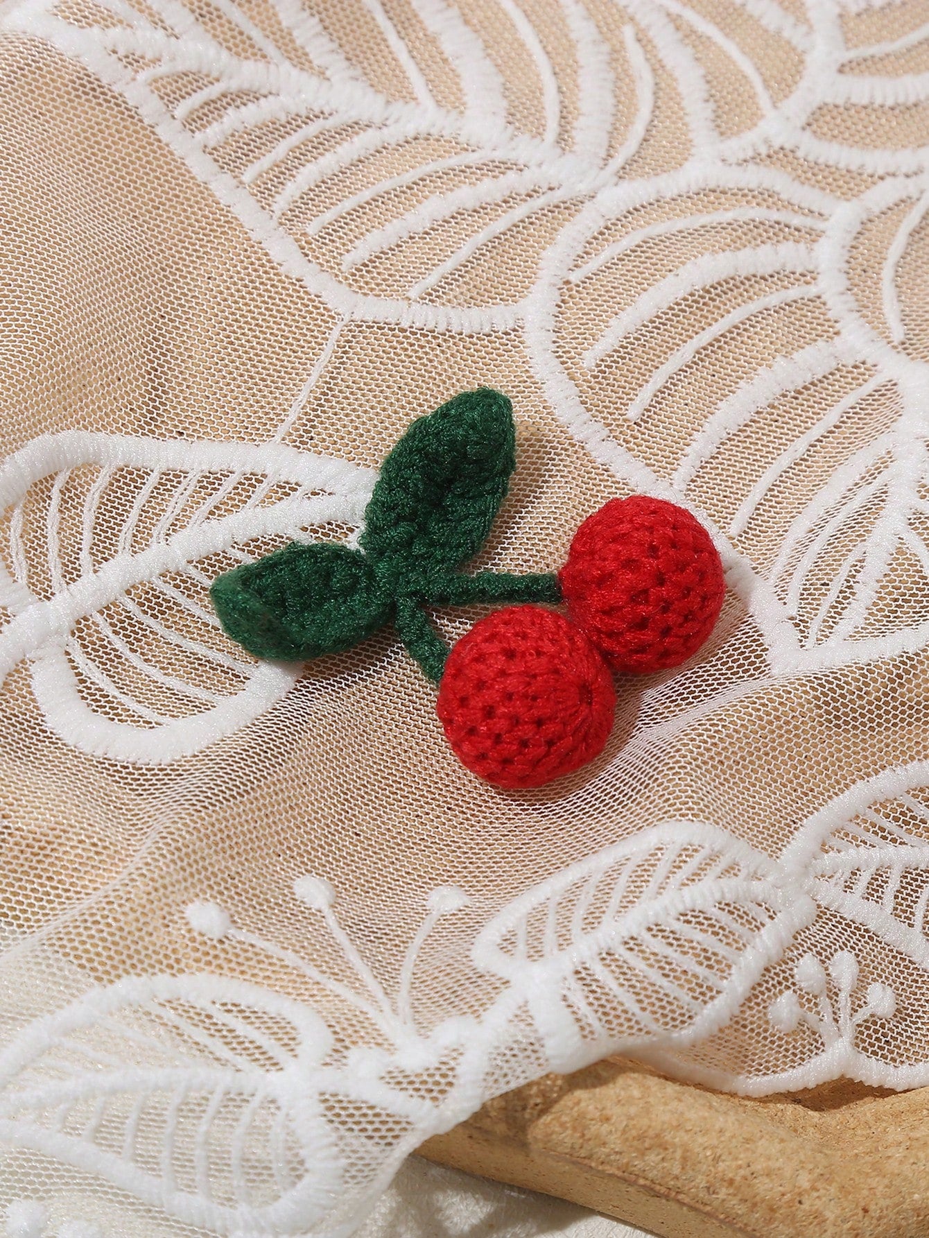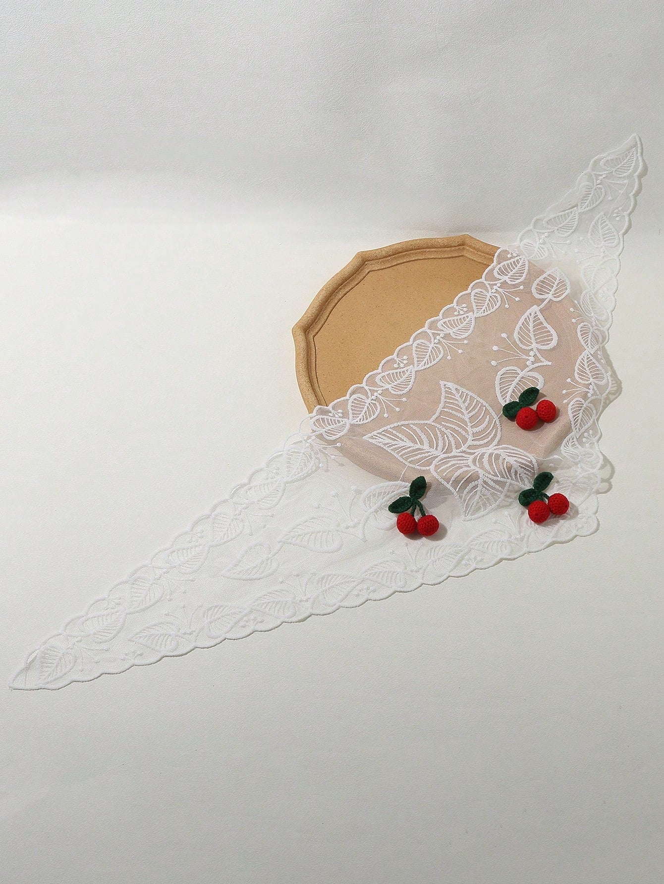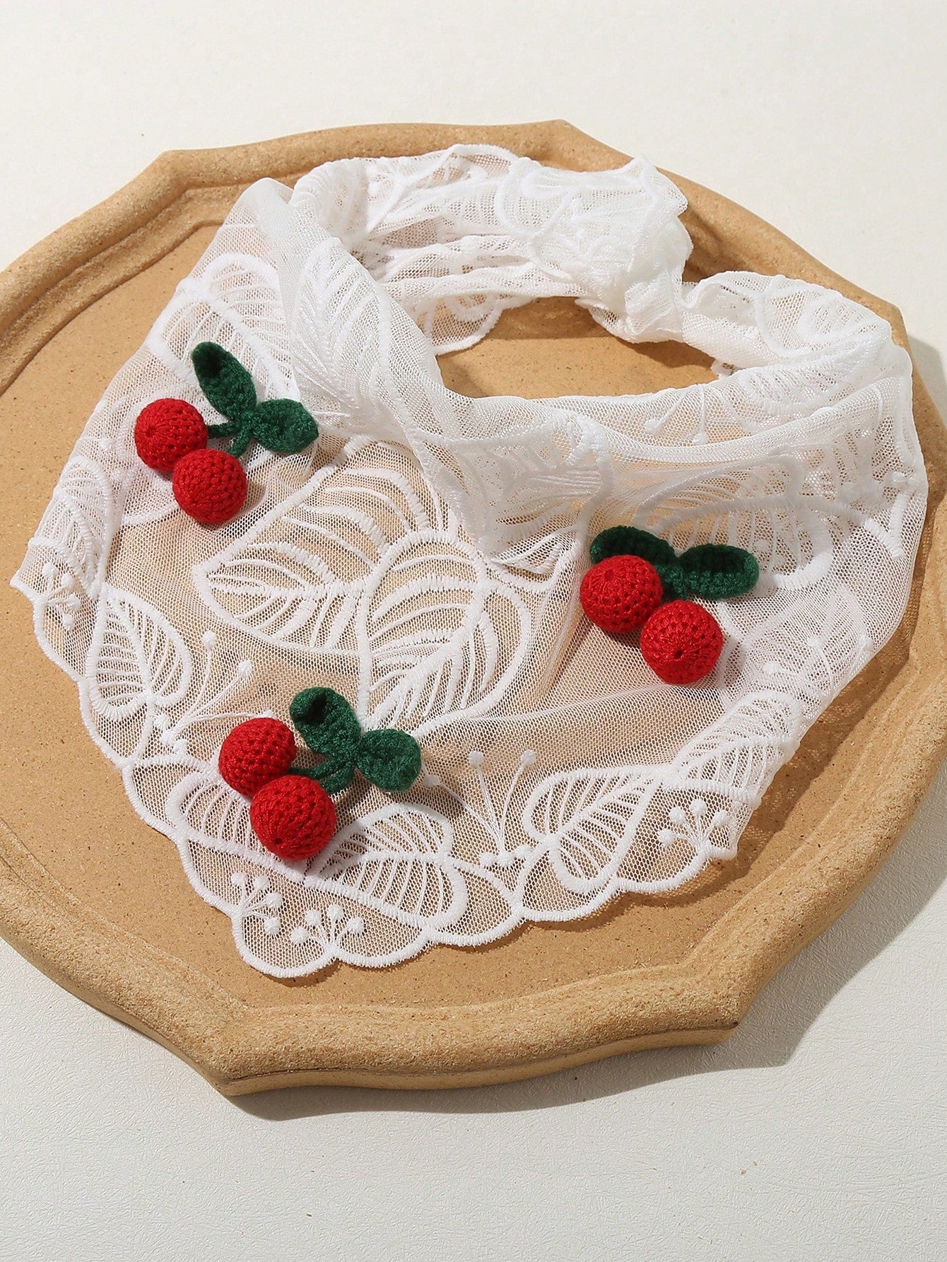 حلقة رأس شال ثلاثي الأطراف مطبوع عليها تفاح الكرز الحلو والجميل مع نسيج شبكي، نمط الريف البوهيمي 1 قطعة