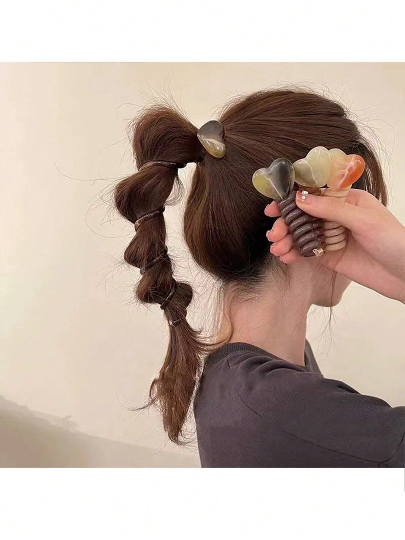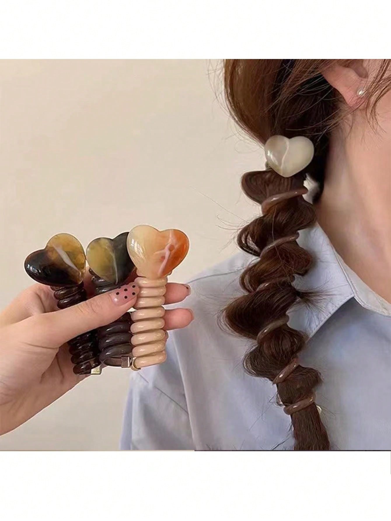 ربطة شعر على شكل قلب من سلك الهاتف قطعة واحدة، مناسبة لاكسسوارات تصفيفات الشعر المضفر