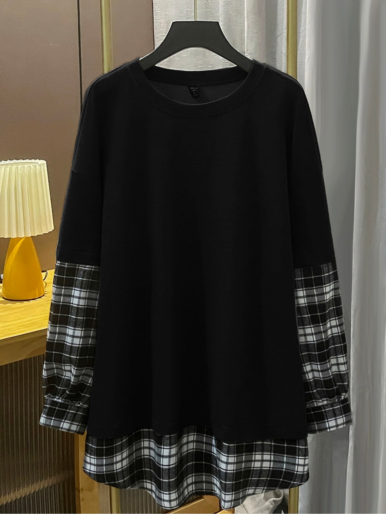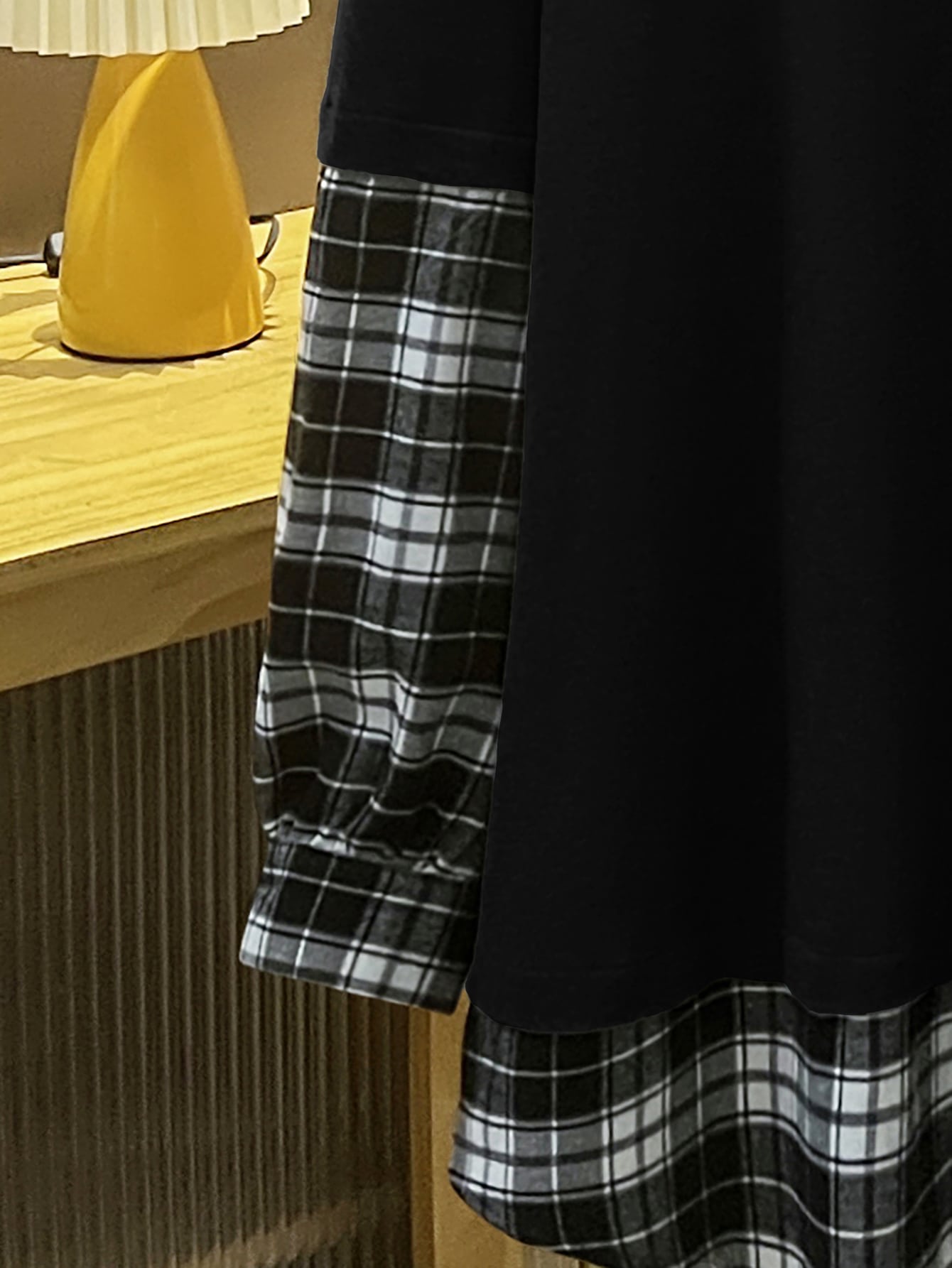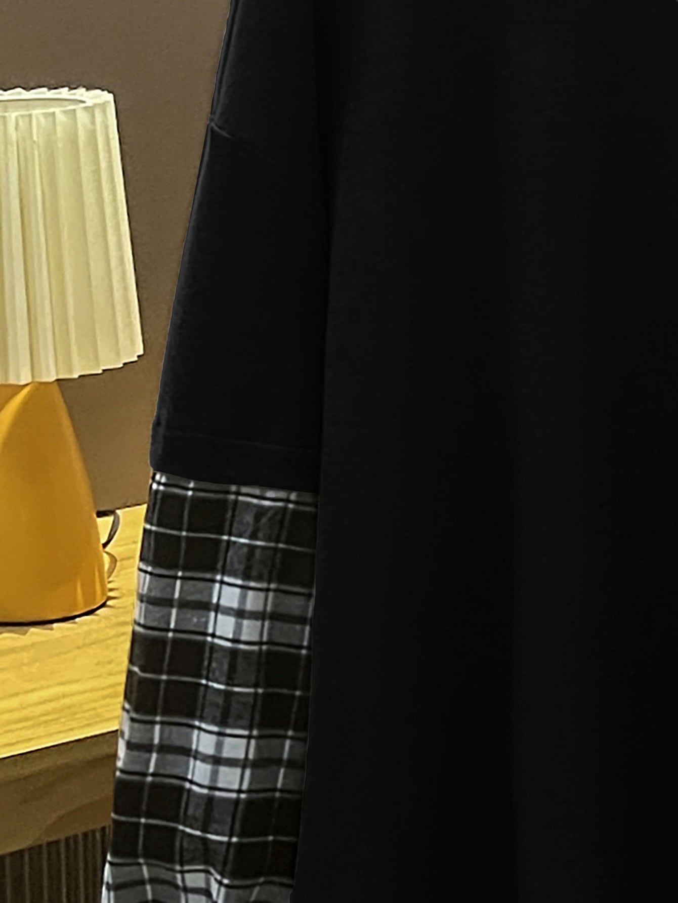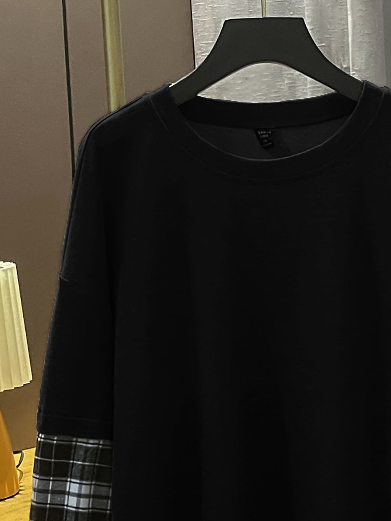 رمضان قميص ثقيل مربعات ملونة منخفض الاكتاف 2 في 1 مقاس كبير