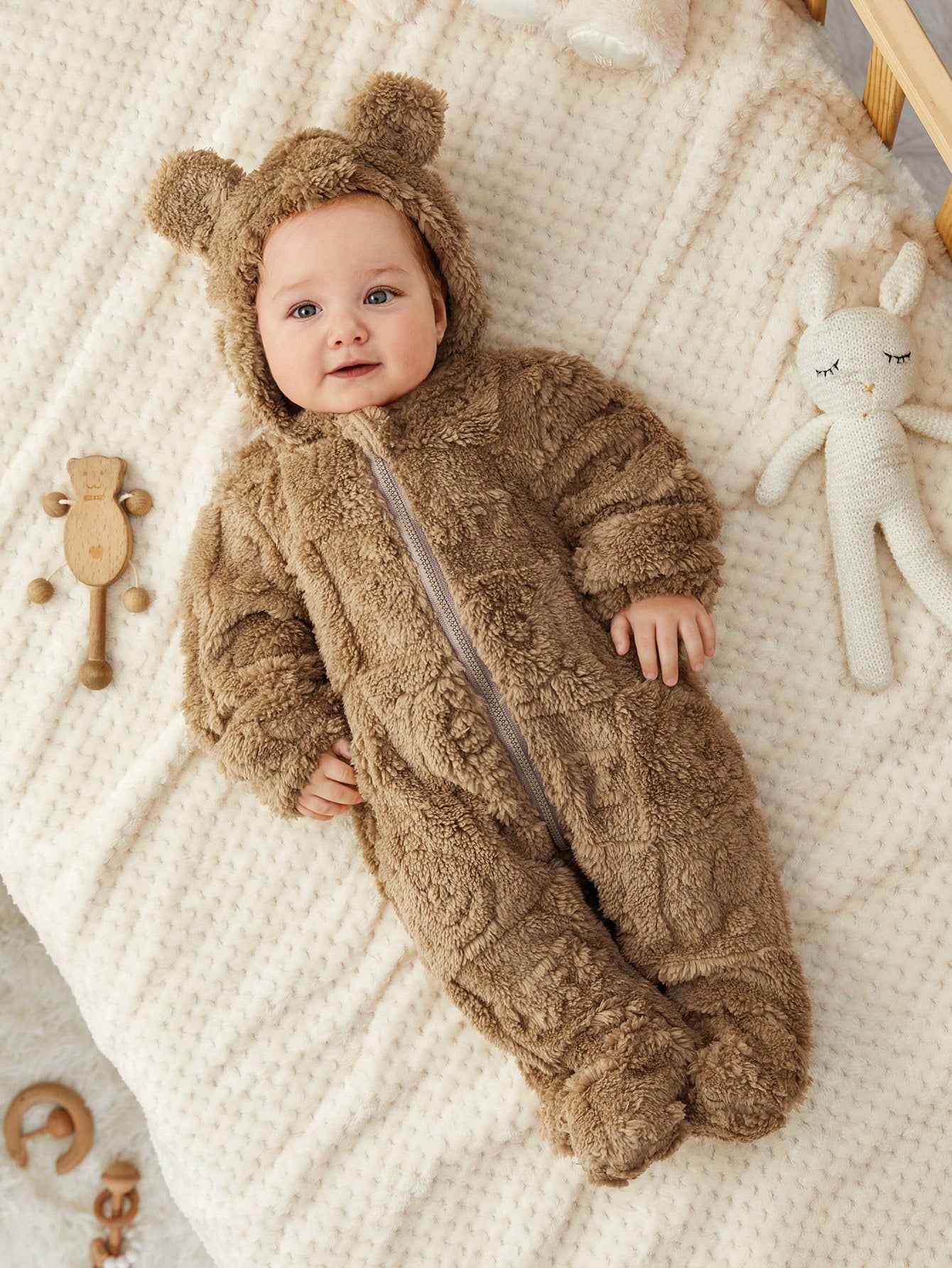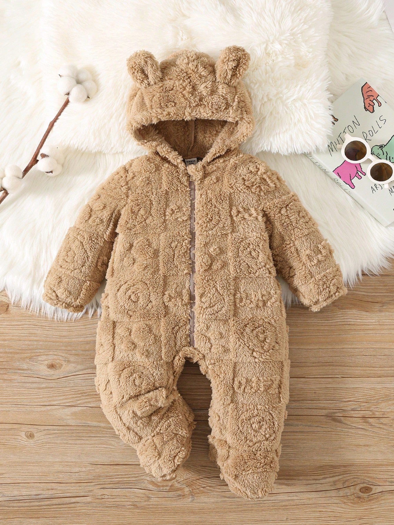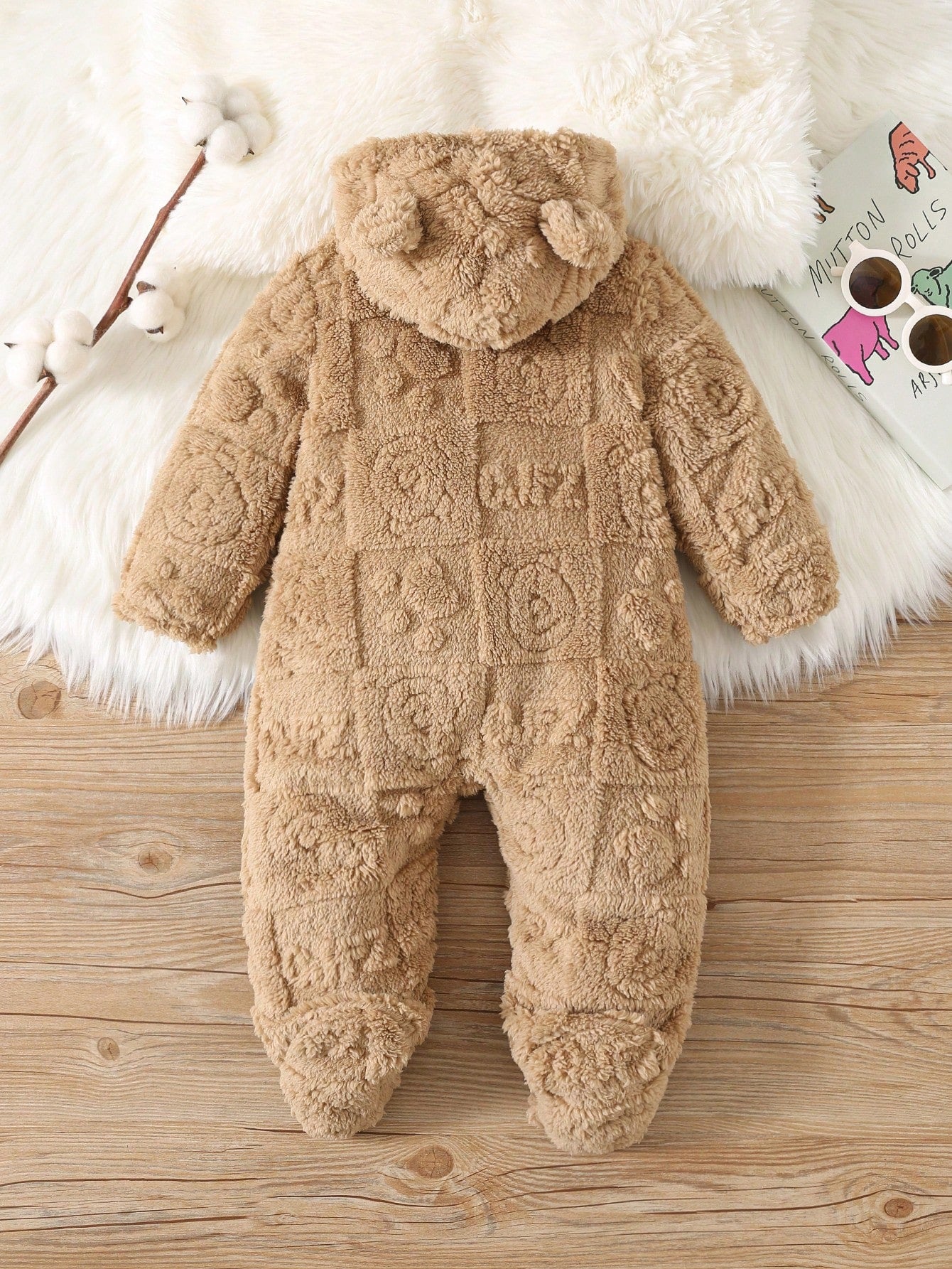 رومبير رضيع ذو رسومات كرتونية لطيفة من الفليس مزودة بغطاء رأس وأقدام، مناسبة للخريف والشتاء، للداخل والخارج، للأولاد والبنات الرضع