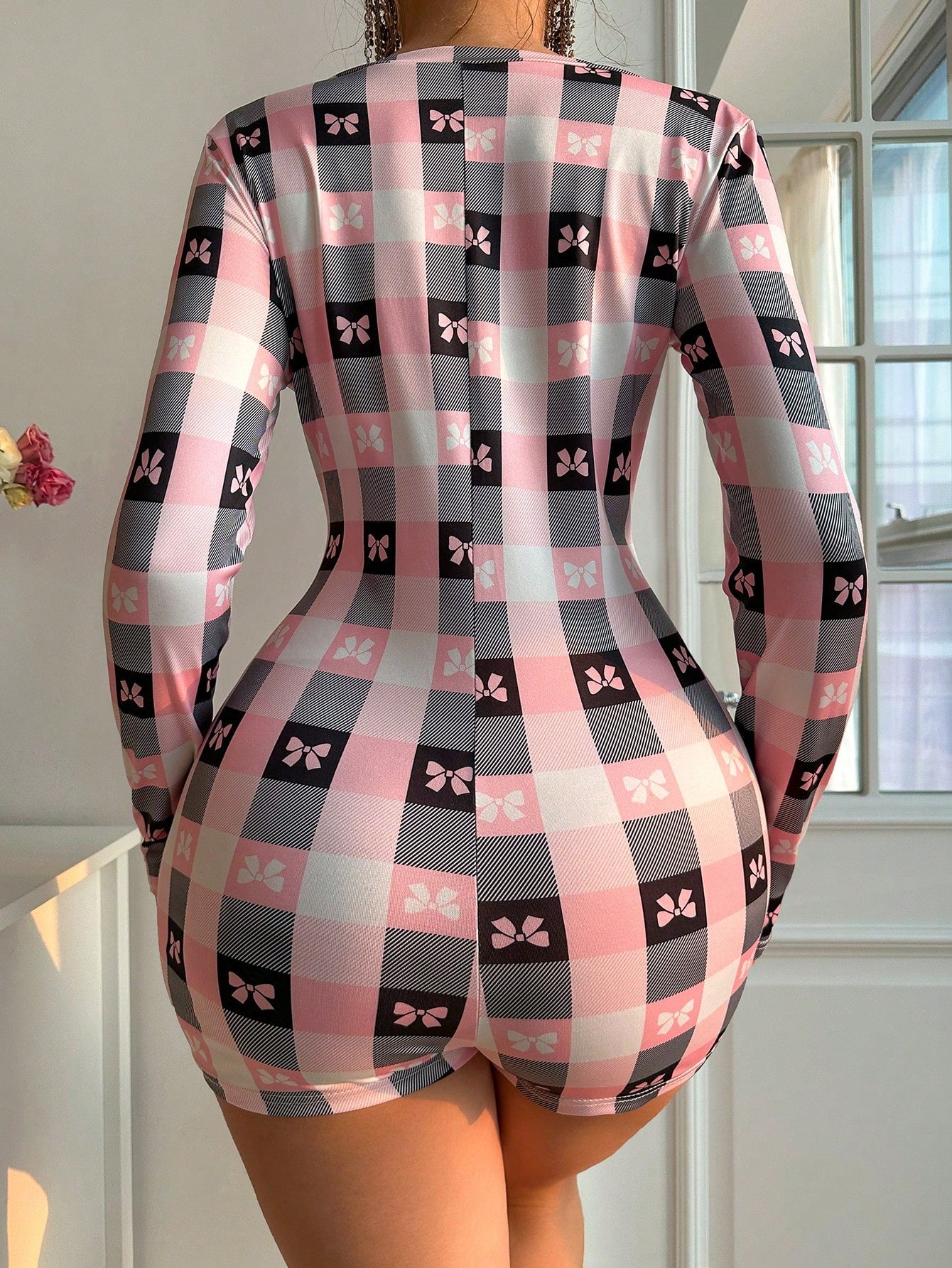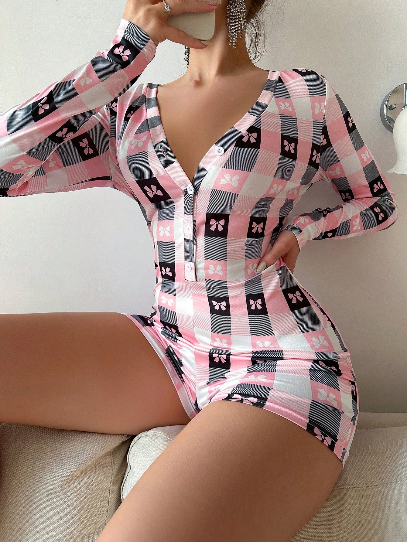 رومبير ملابس نوم نسائي مربعات مع طبعة عقدة