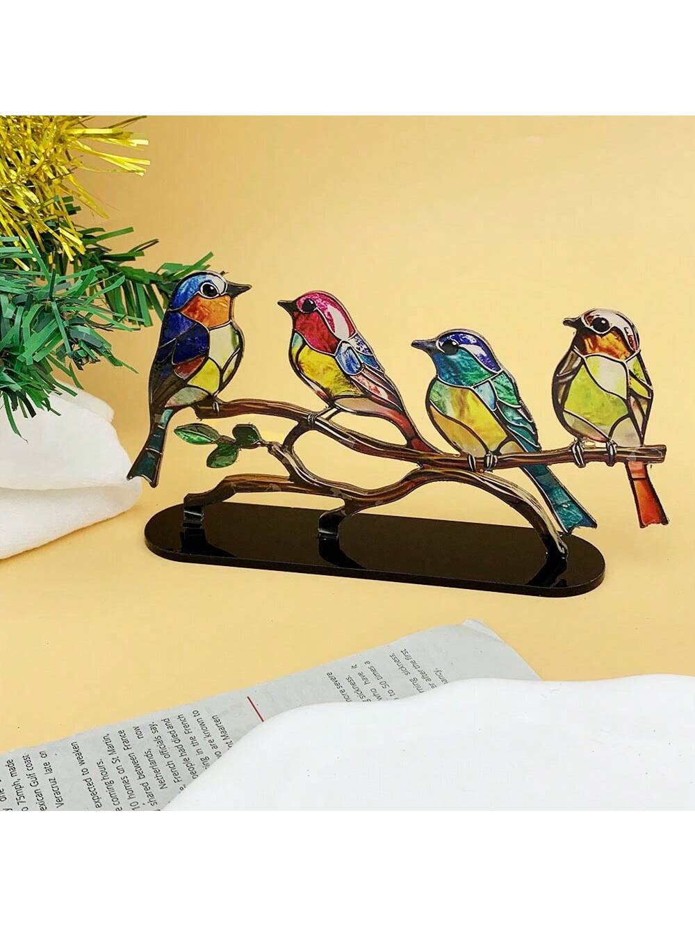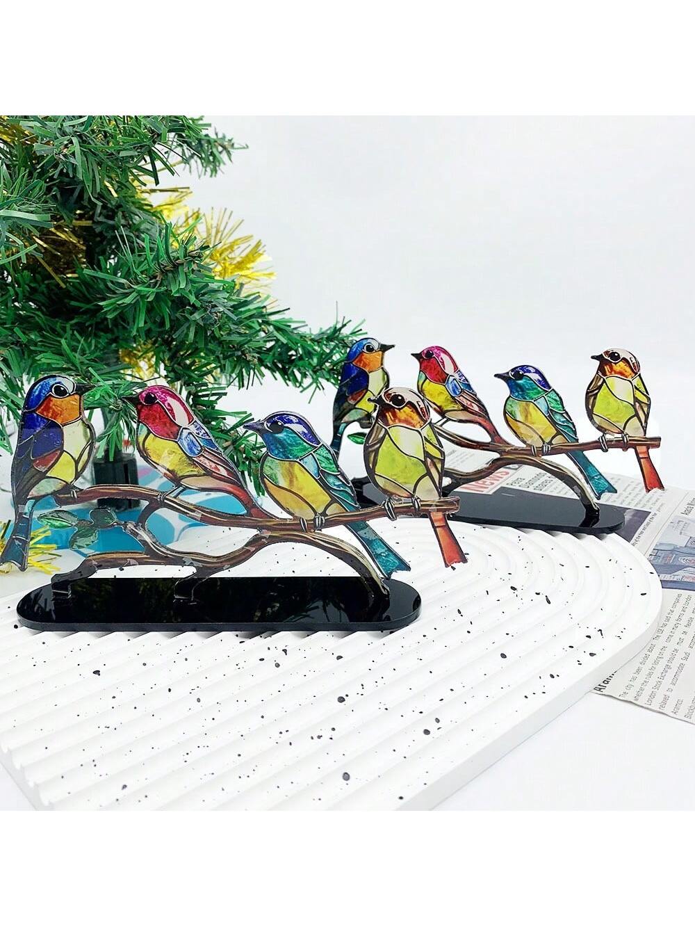 زخرفة سطح مكتب طائر ملونة مع فروع للمنزل