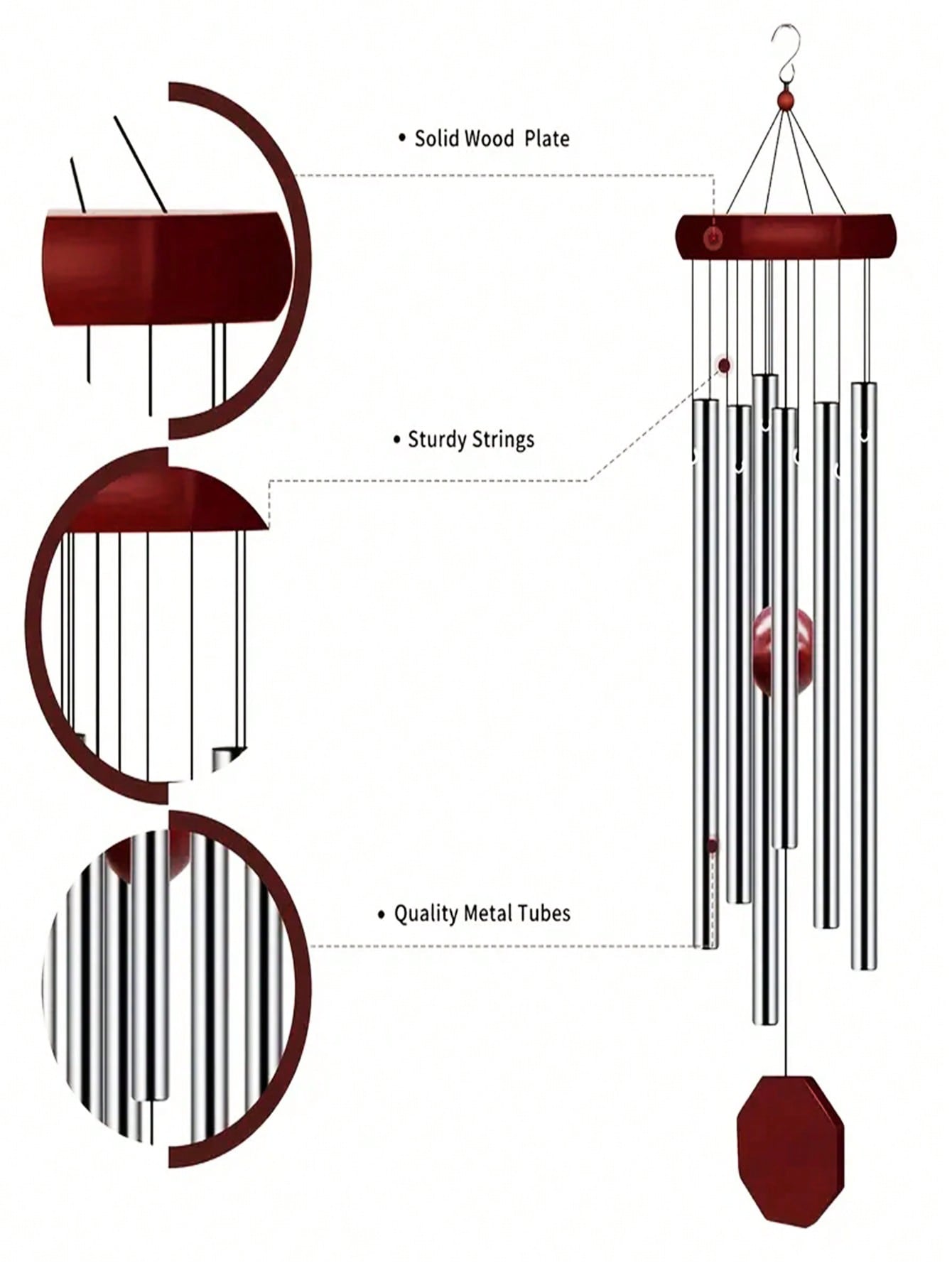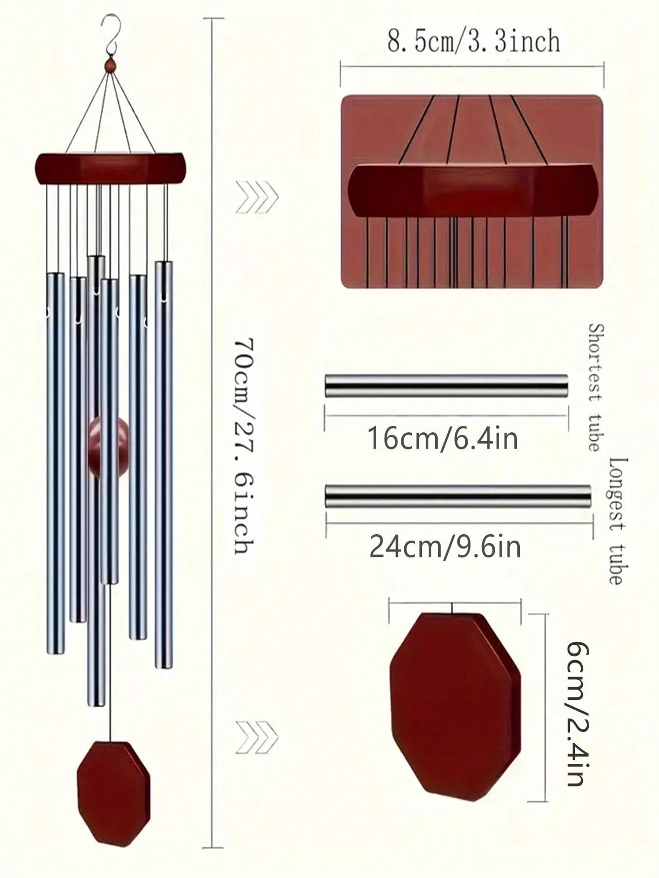 زنبور الرياح الخشبي اليدوي مع 6 أجراس أنبوبية معدنية