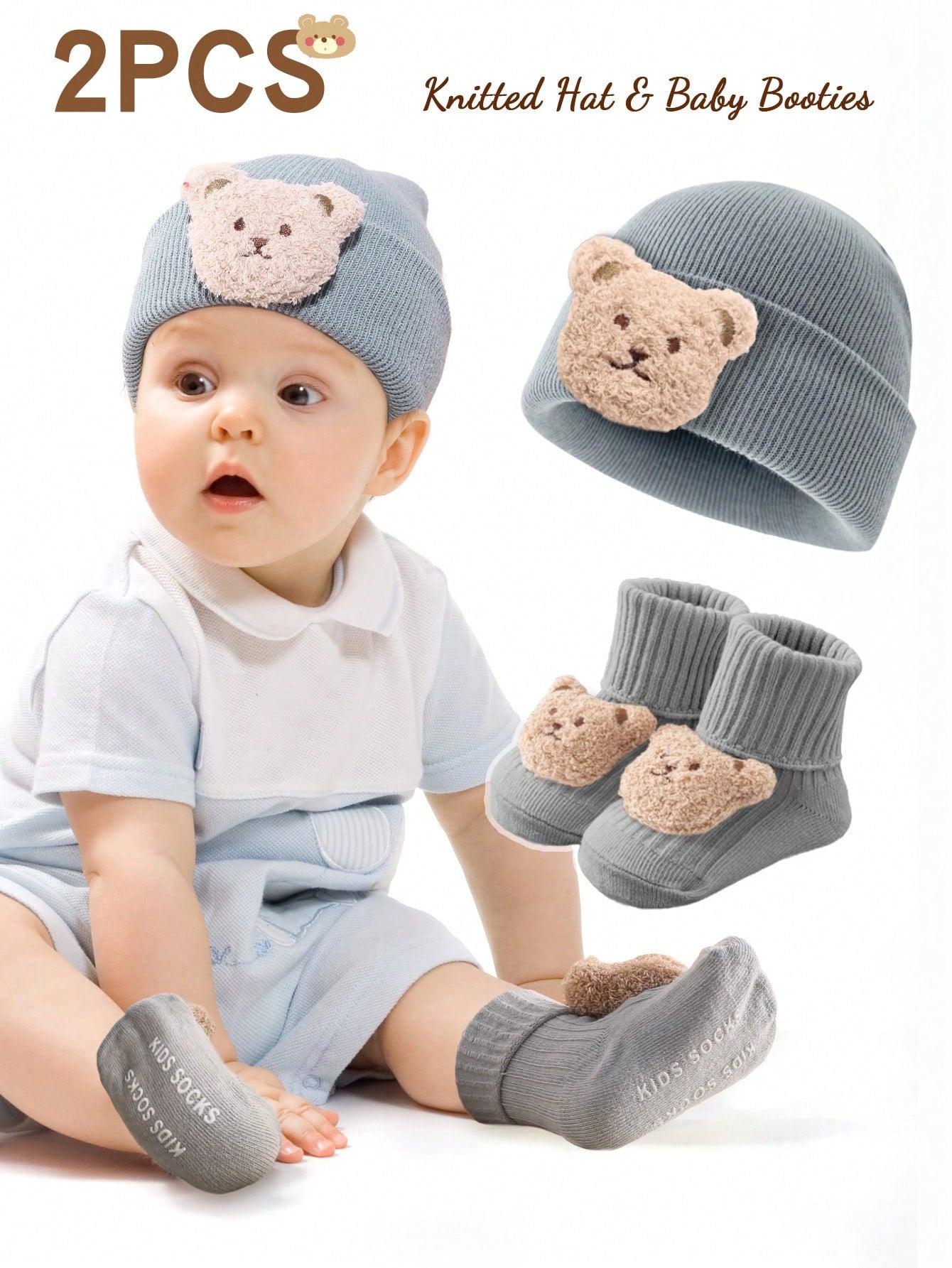 زوجان من قبعات وجوارب البيرة الطفولية المحبوكة