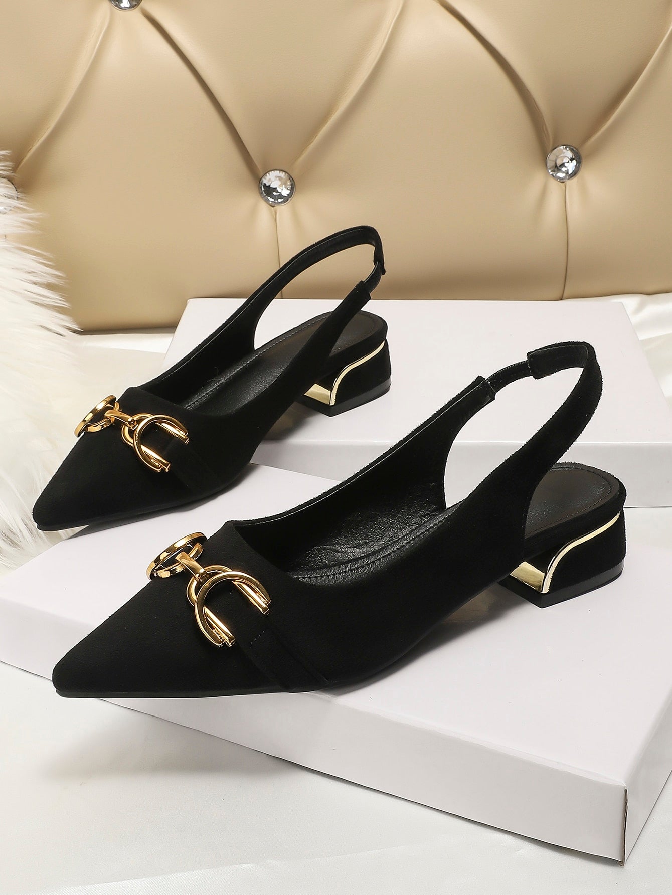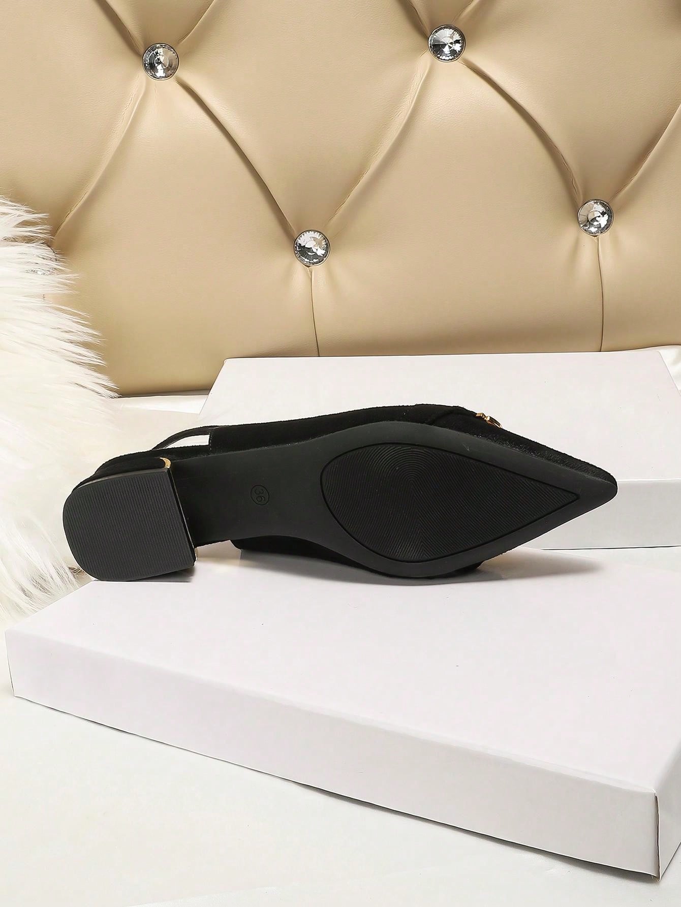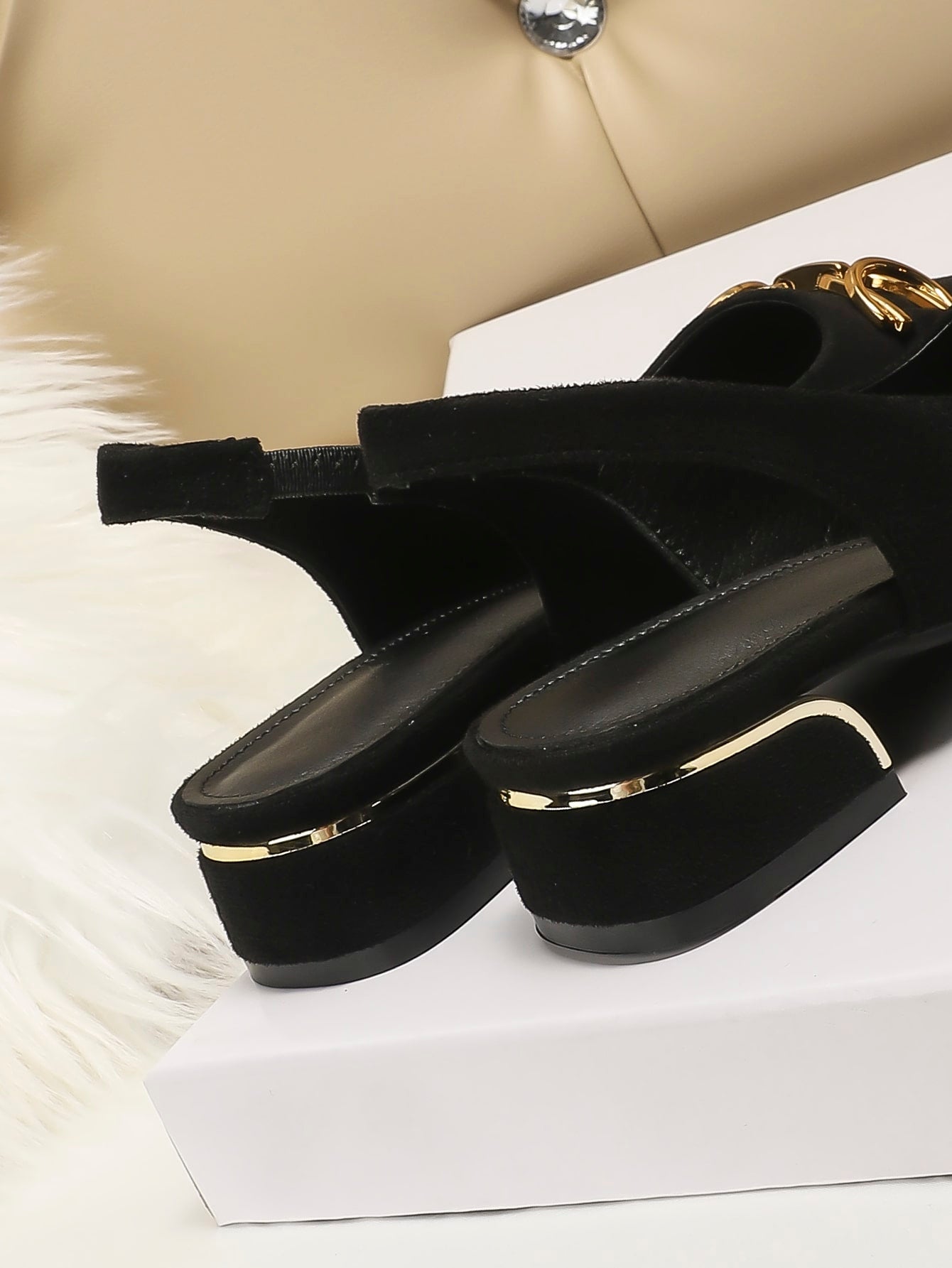 زوج أحذية الكعب السميك النقطية مزين بأزرار للسيدات