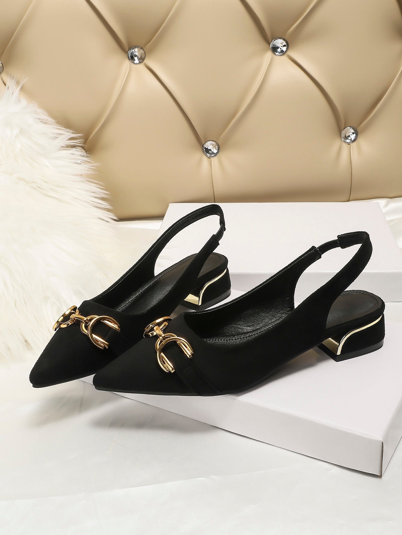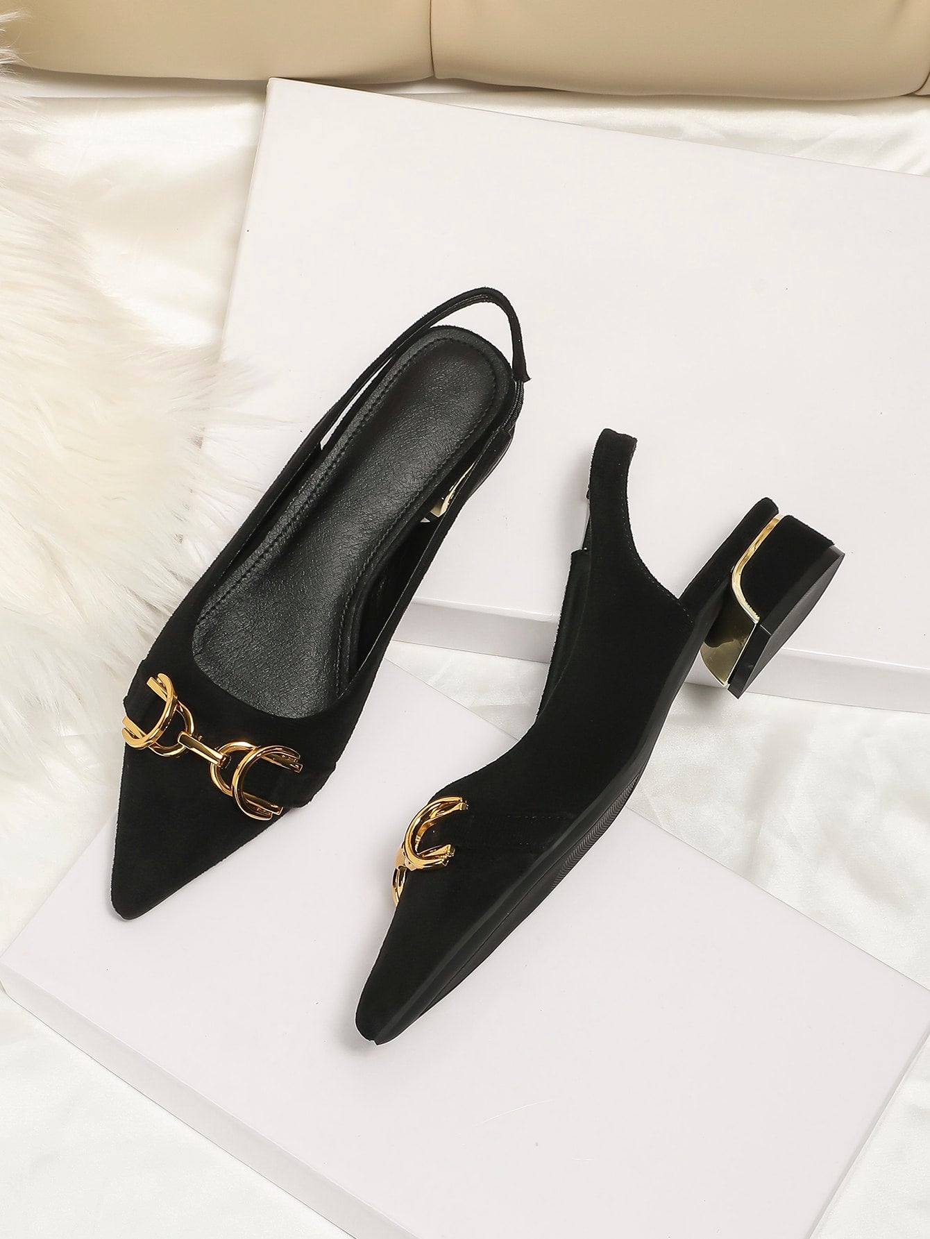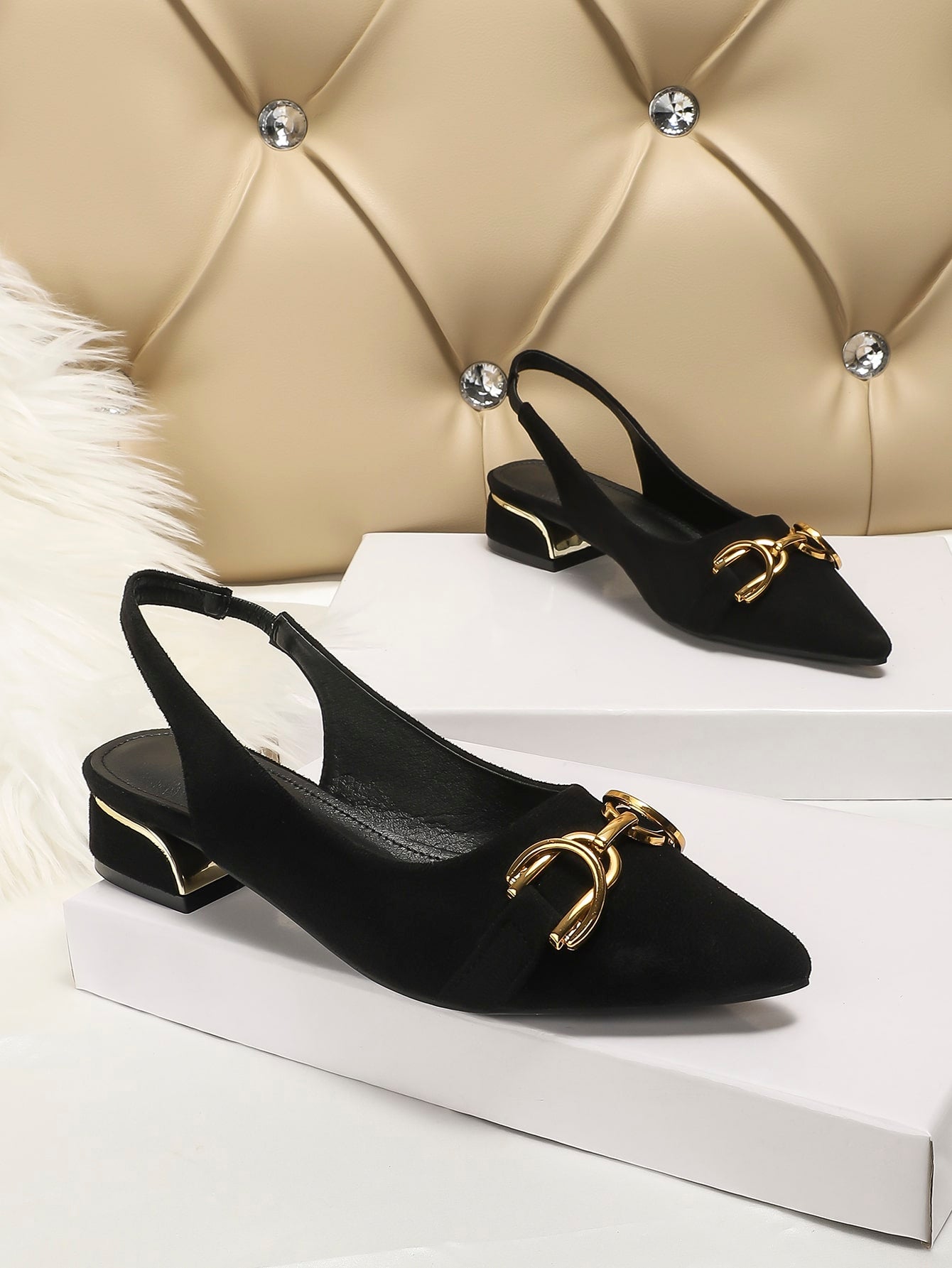 زوج أحذية الكعب السميك النقطية مزين بأزرار للسيدات