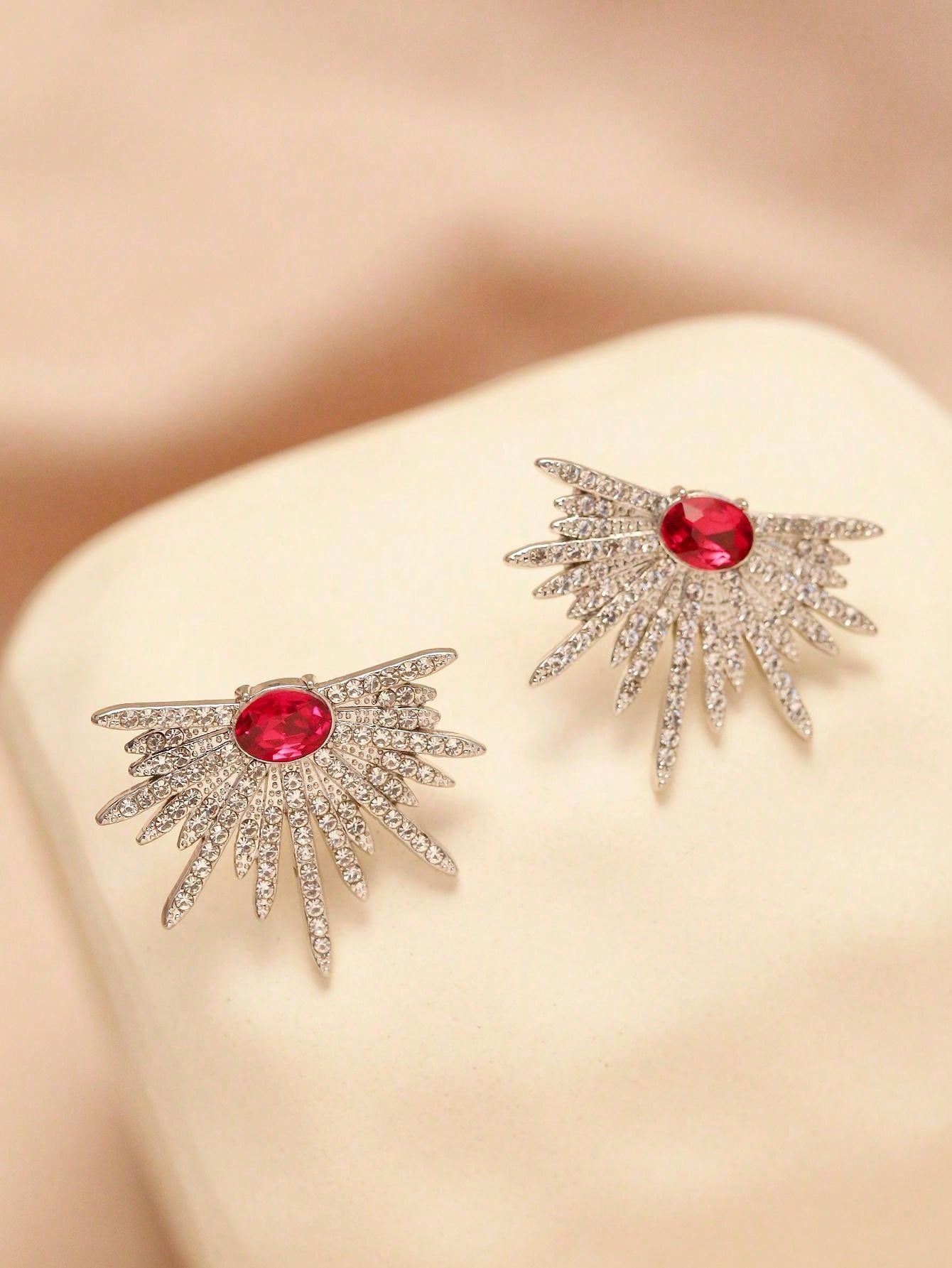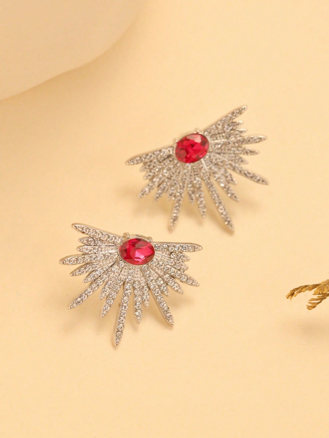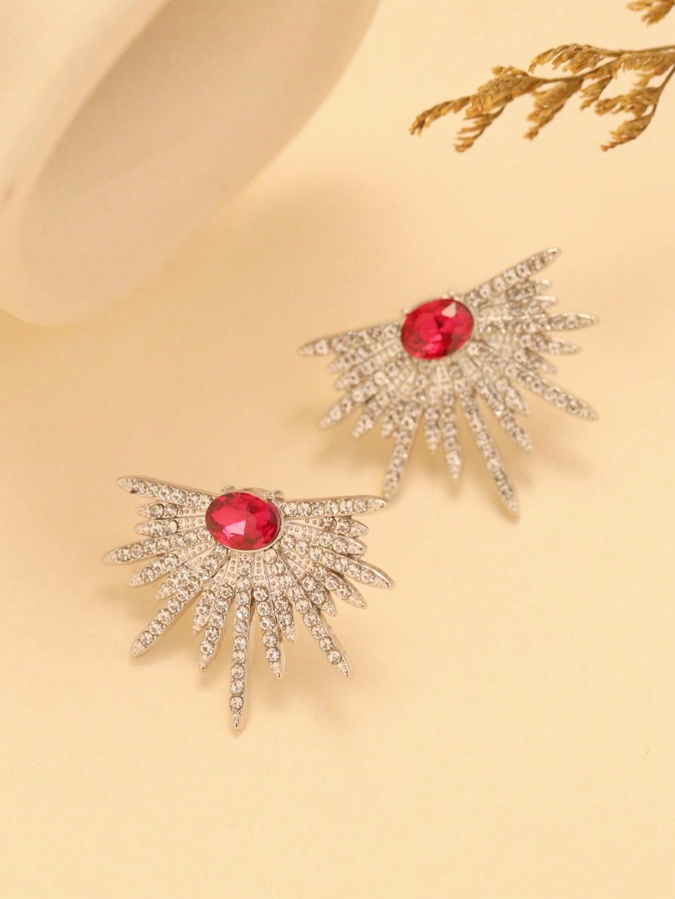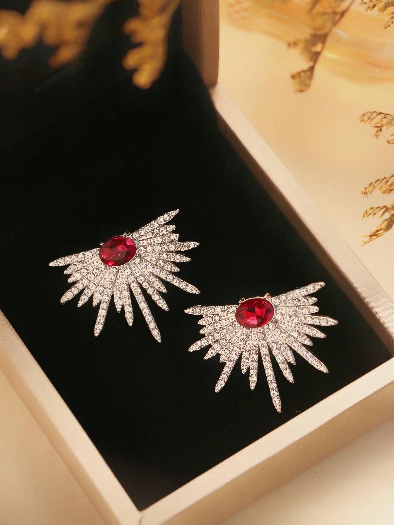زوج أقراط مرصعة بالراين على شكل أجنحة لامعة للنساء