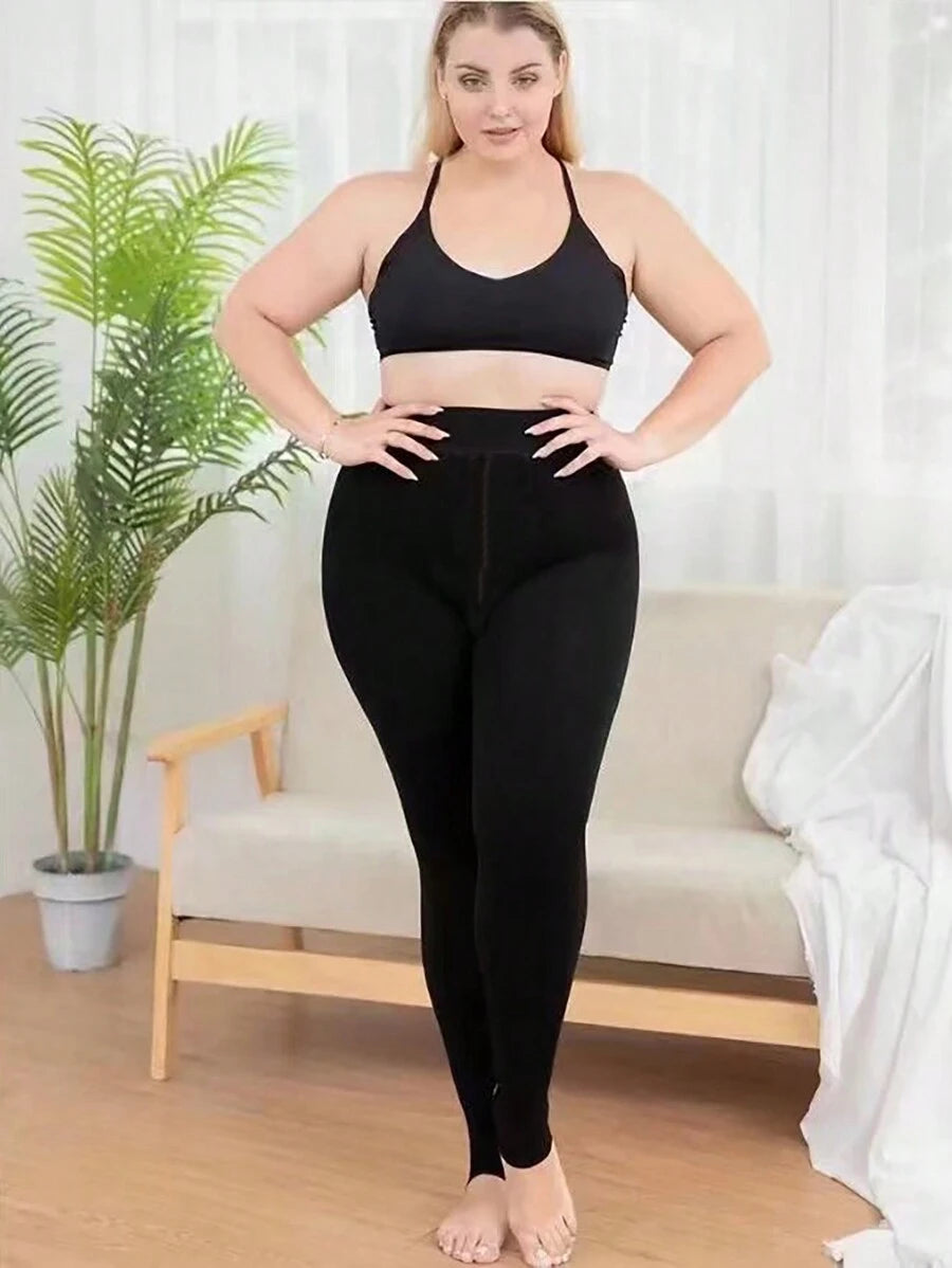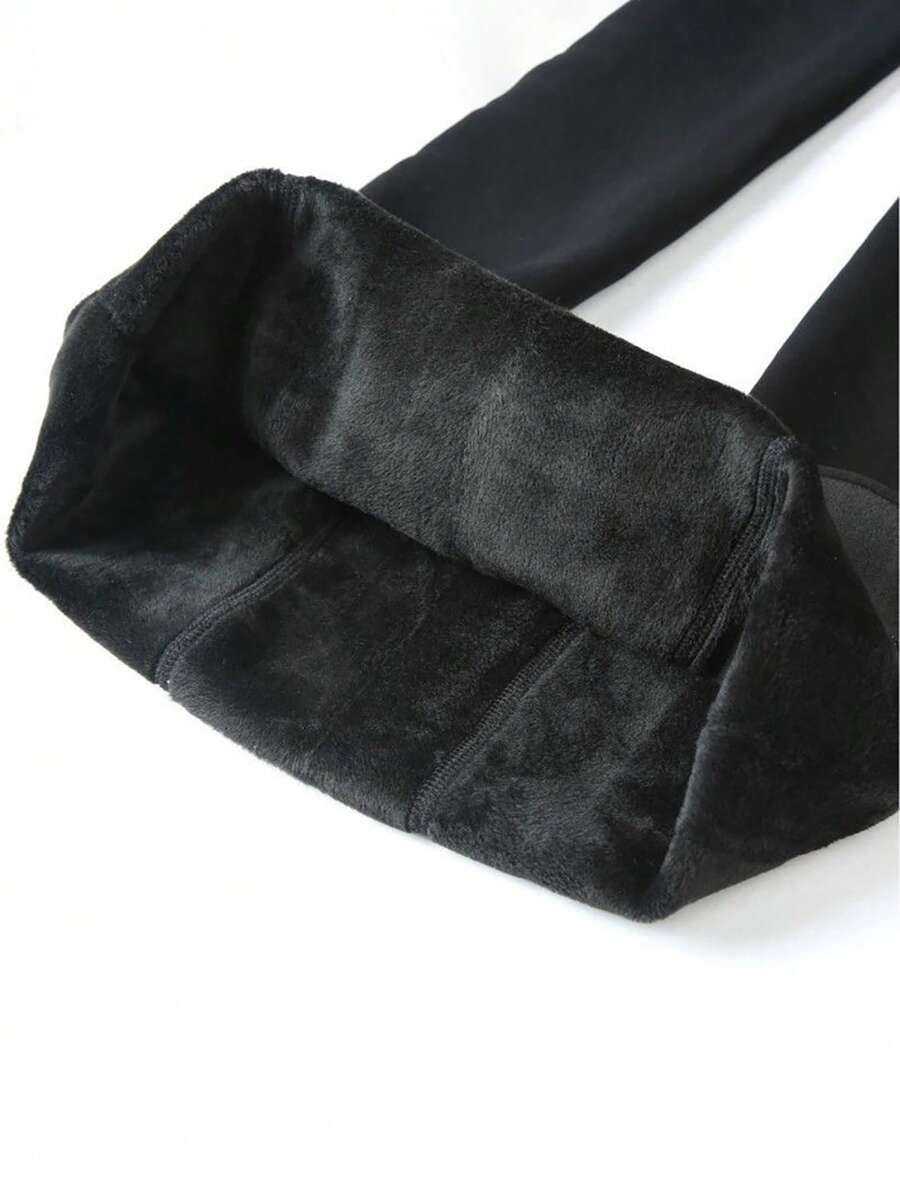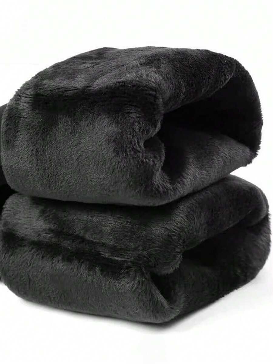 زوج جوارب محبوك تحتي بحجم كبير مبطن حراري بالسواد لسيدات