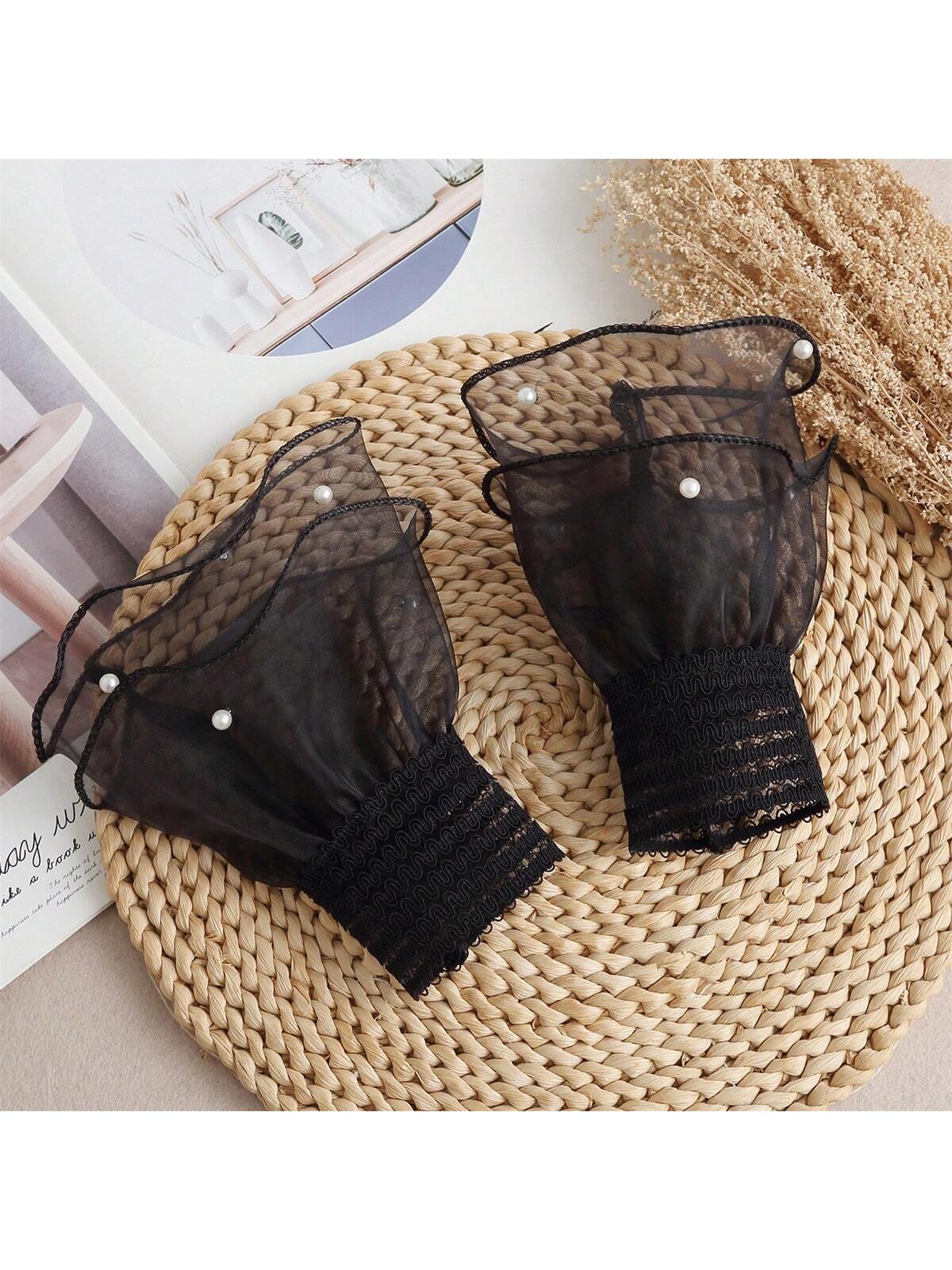 زوج من الأساور النسائية السوداء المرصعة بخرز الزجاج شكل جرس، ديكور أنيق وراقي مناسب لتزيين الملابس، للزفاف